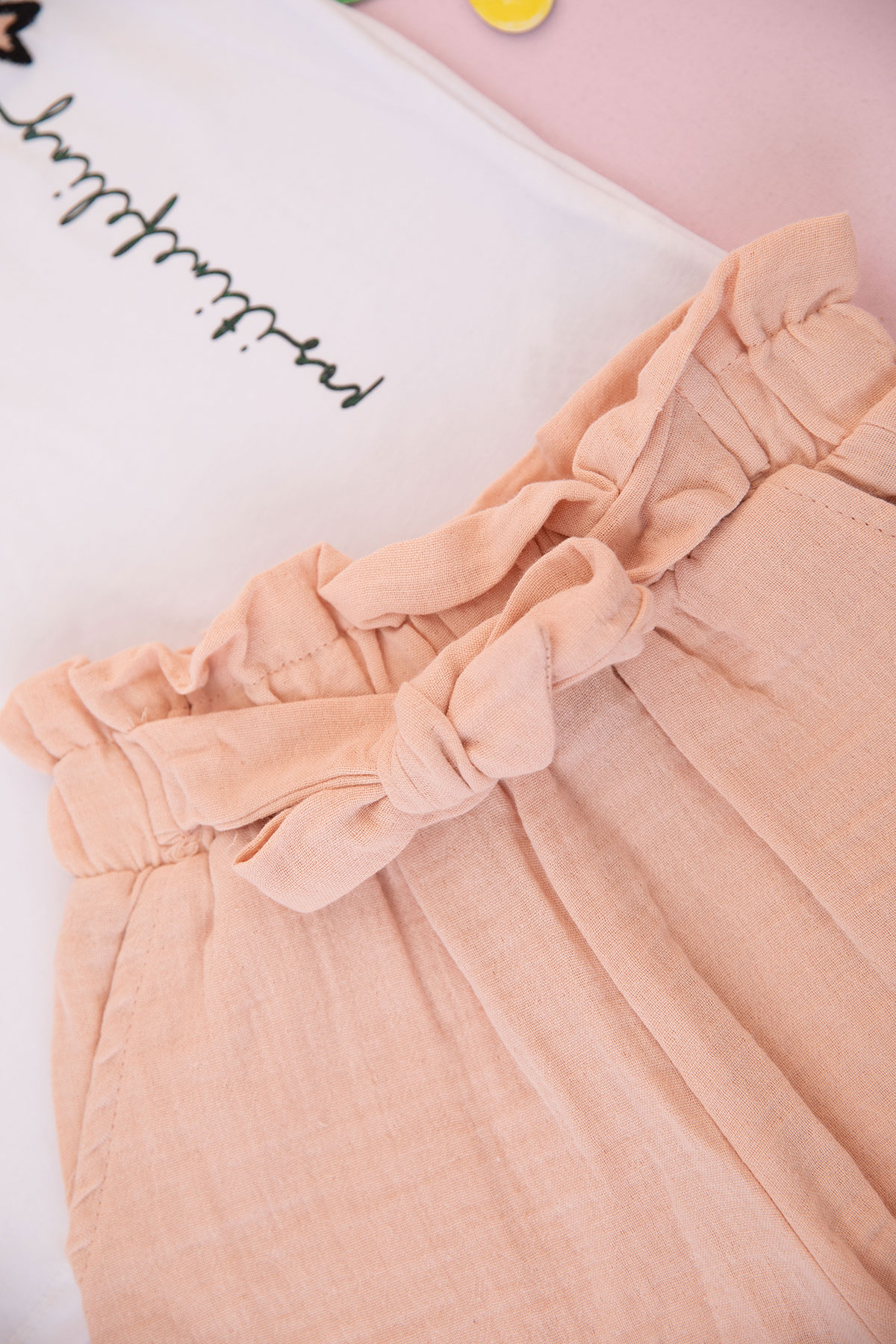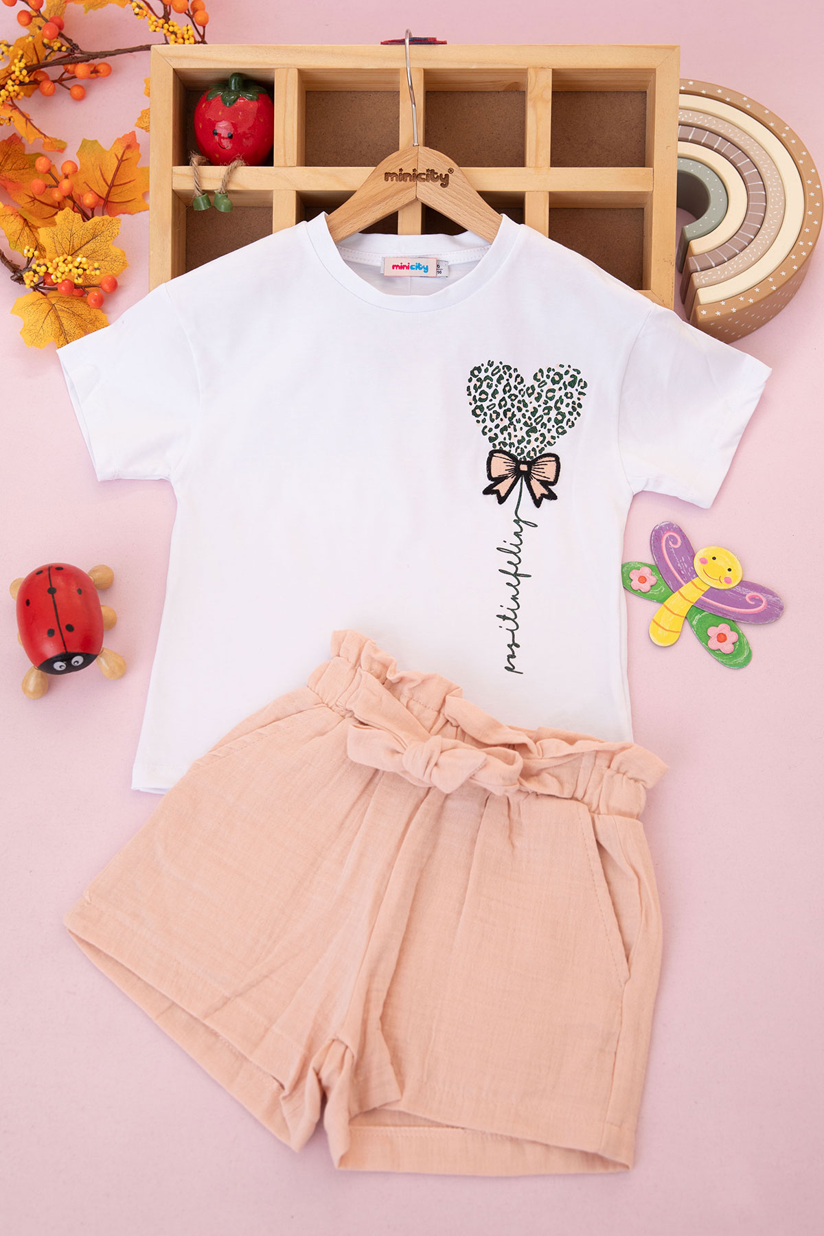 Kız Çocuk Kalp Ve Fiyonk Nakışlı Şortlu Takım - 6254263 (6-9 Yaş)