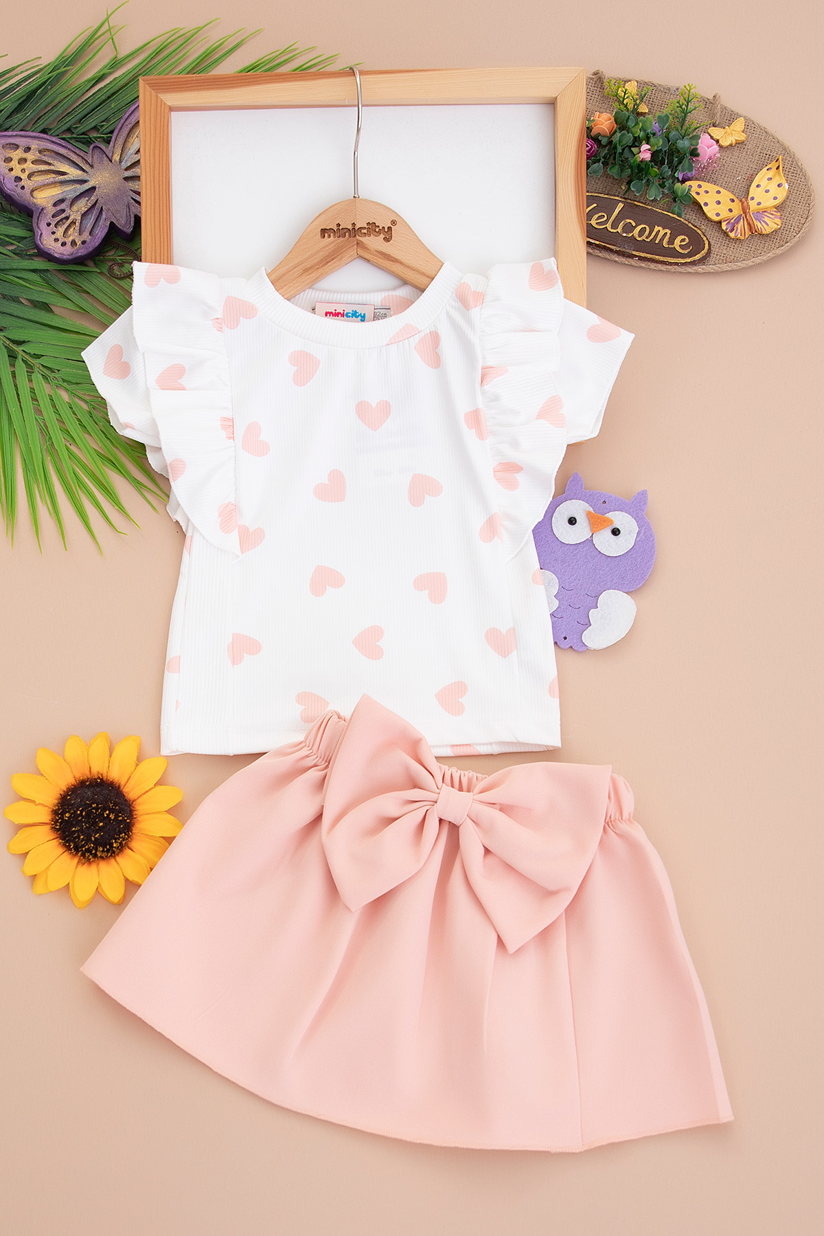 Kız Çocuk Kalpli Etekli Takım - 735 (2-5 Yaş)