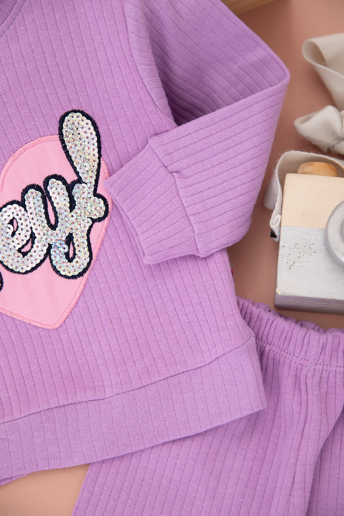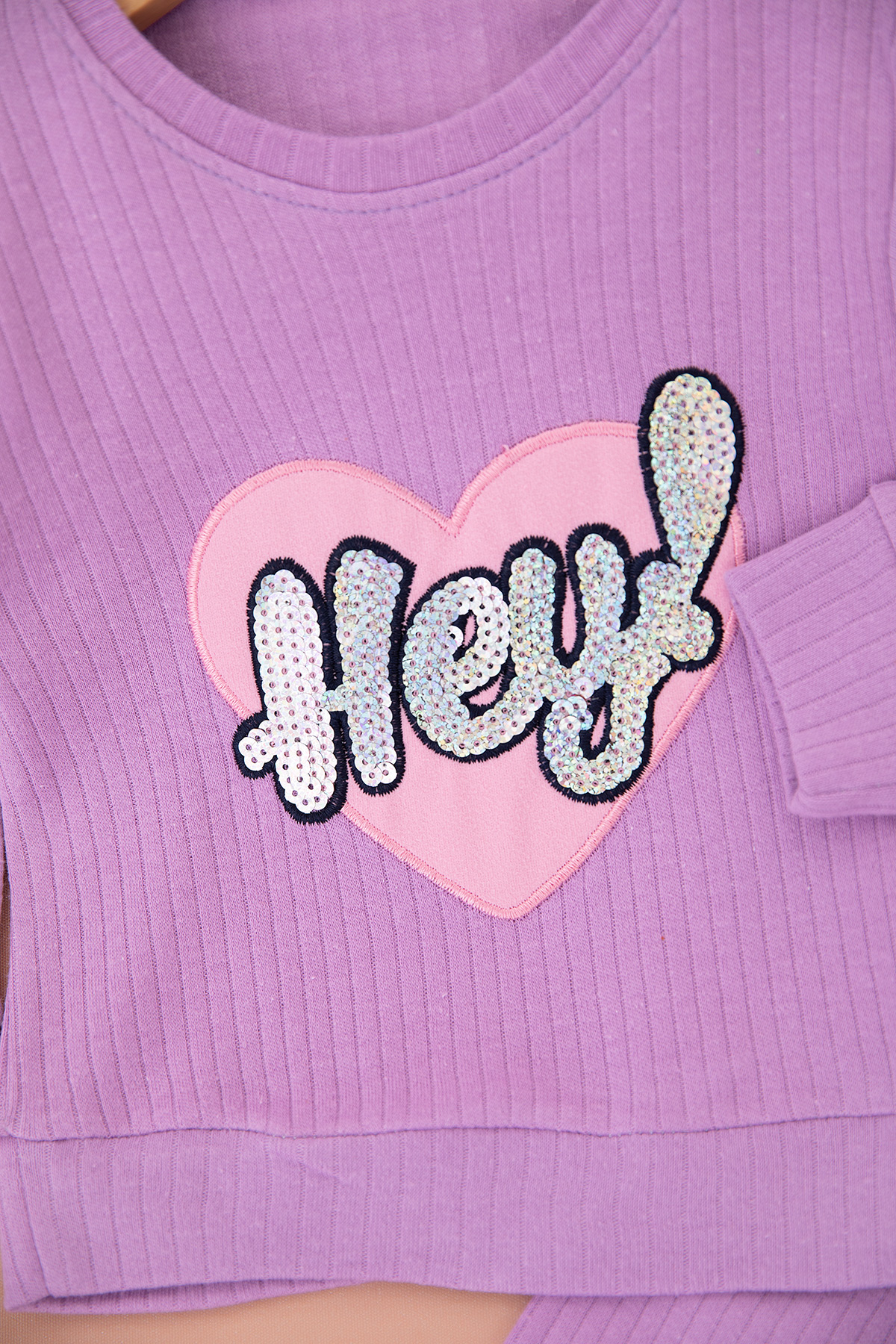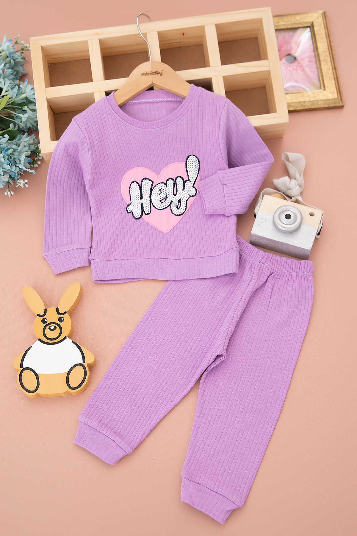 Kız Çocuk Kalpli Hey Nakışlı Fitilli Takım (1-4 Yaş)