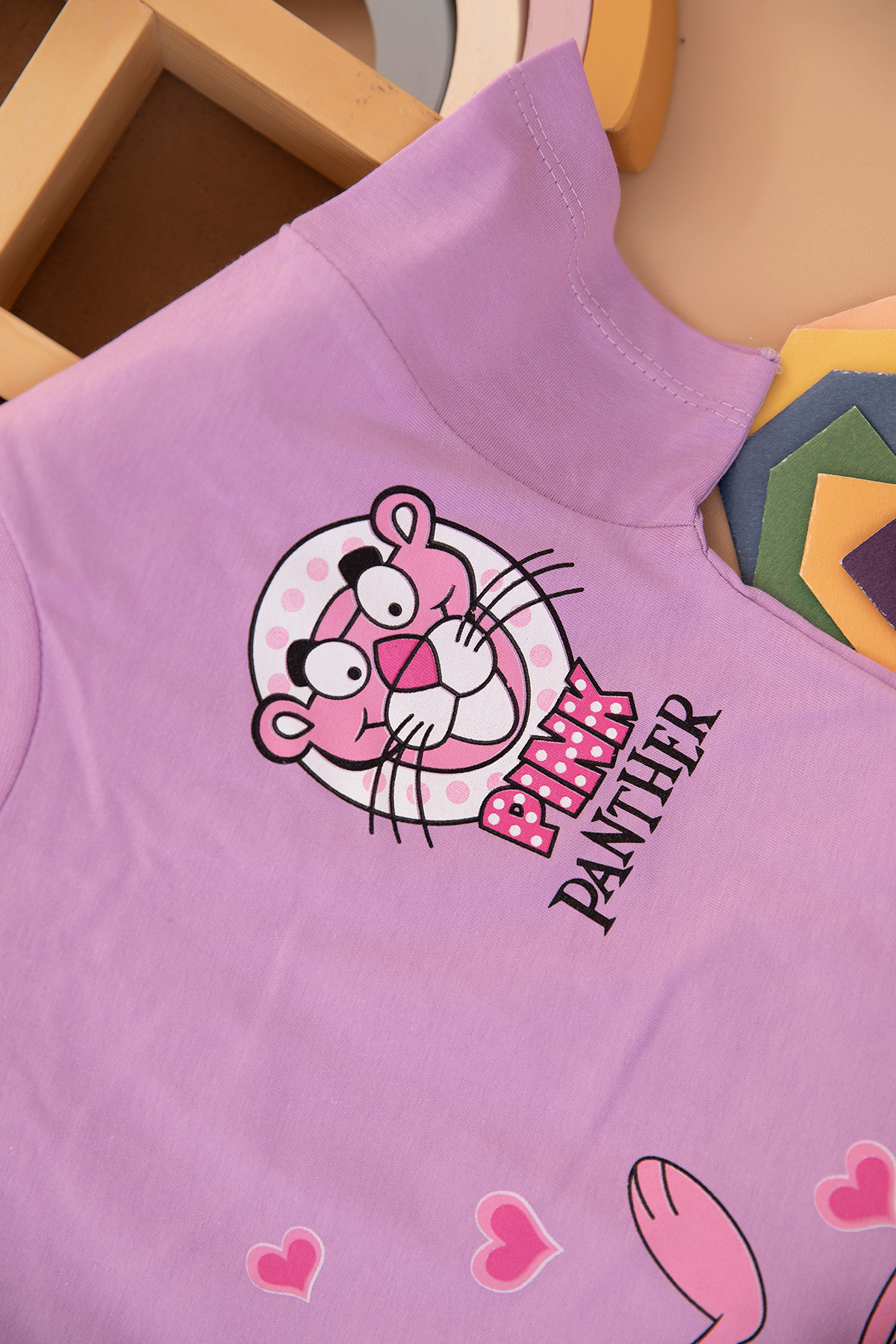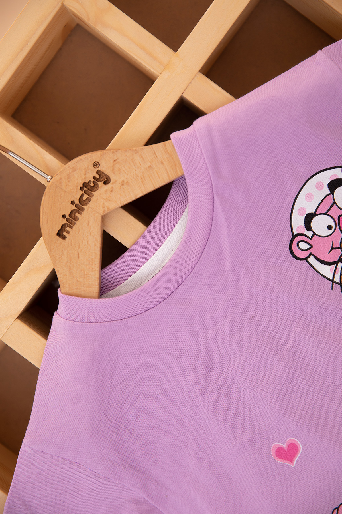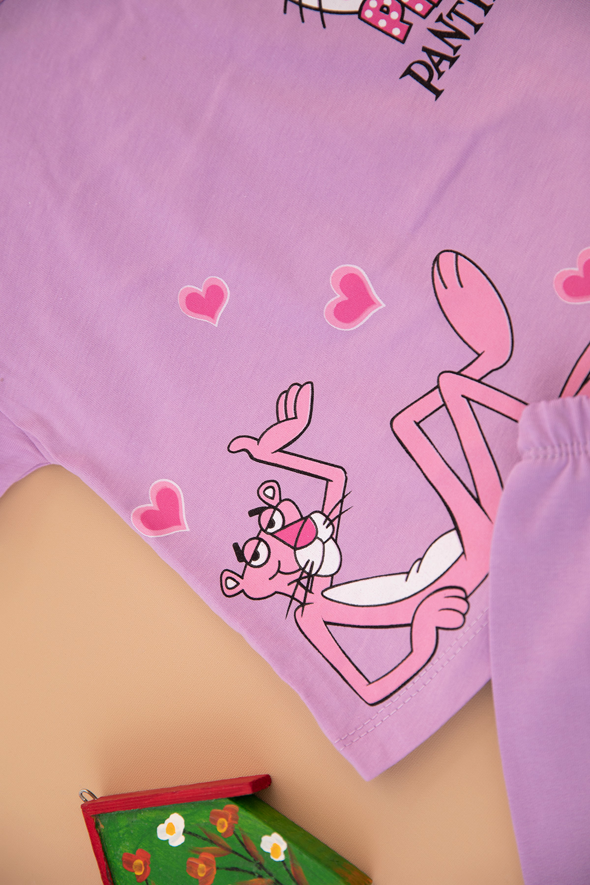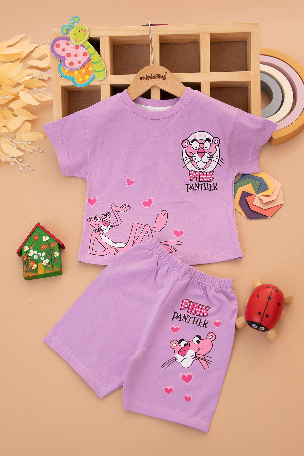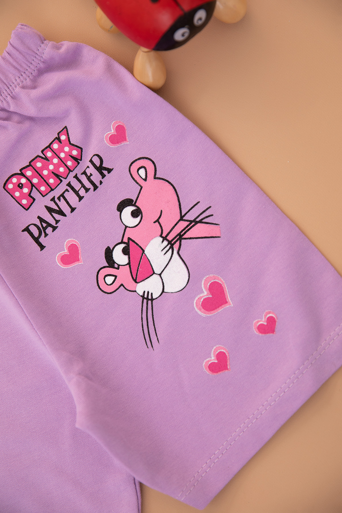 Kız Çocuk Kalpli Pembe Panter Şortlu Takım - 4861 (1-4 Yaş)