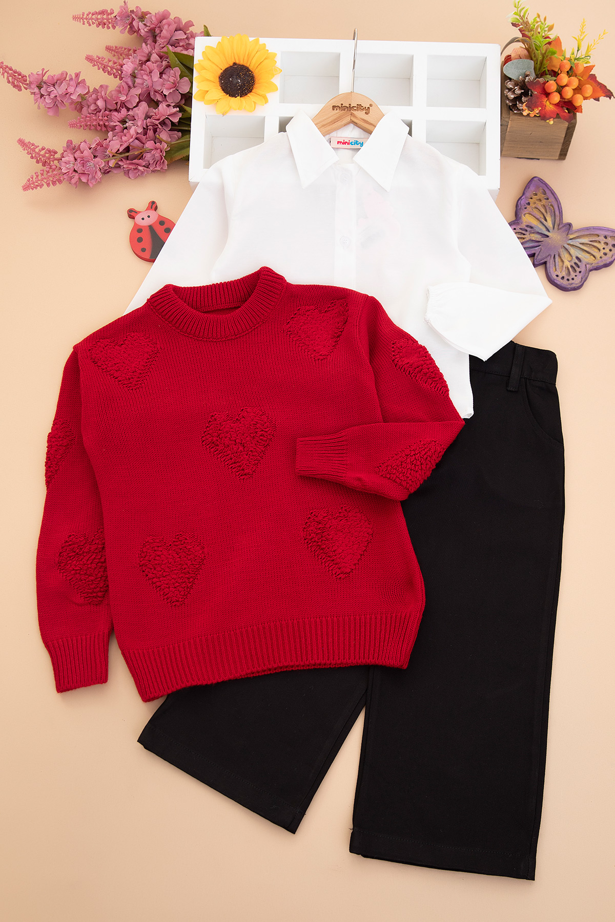 Kız Çocuk Kalpli Triko Takım - 324 (9-12 Yaş)
