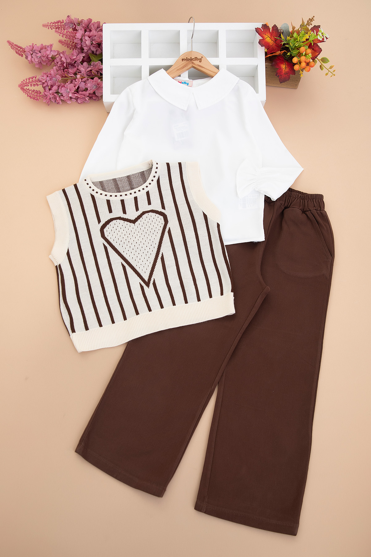 Kız Çocuk Kalpli Triko Üçlü Takım - 7414 (6-10 Yaş)