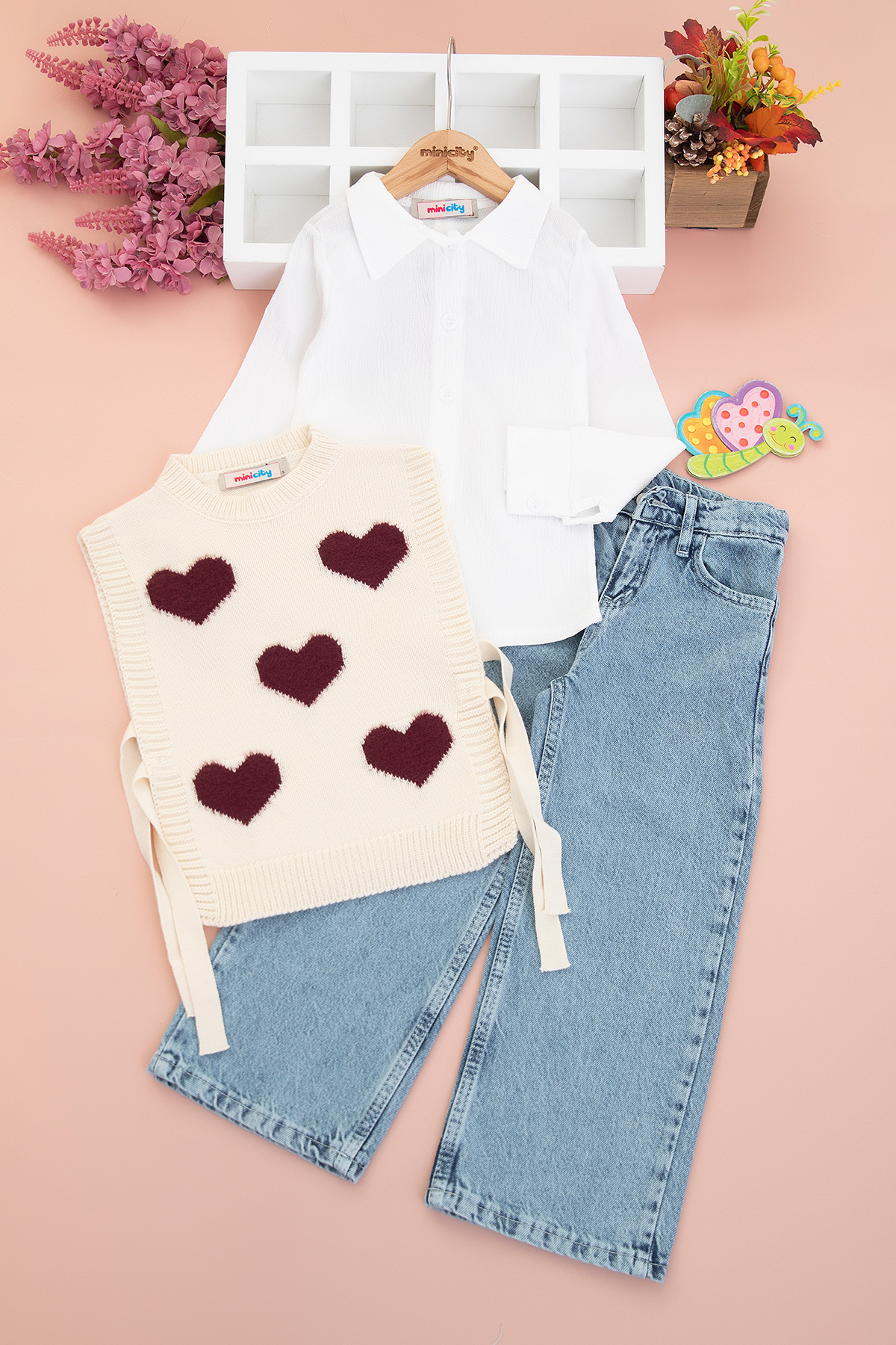 Kız Çocuk Kalpli Trikolu Takım - 1005 (5-12 Yaş)
