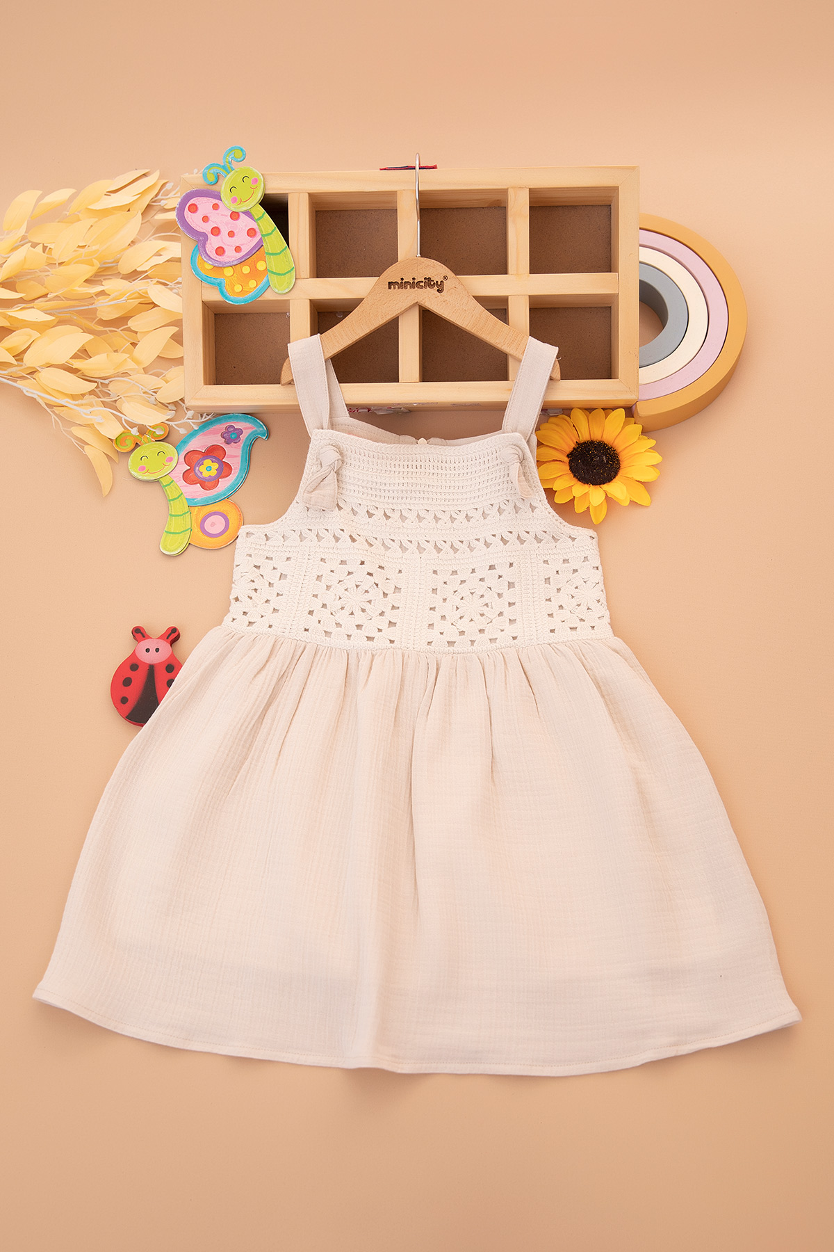 Kız Çocuk Kanaviçe Süzene Askılı Elbise - 1675 (4-7 Yaş)