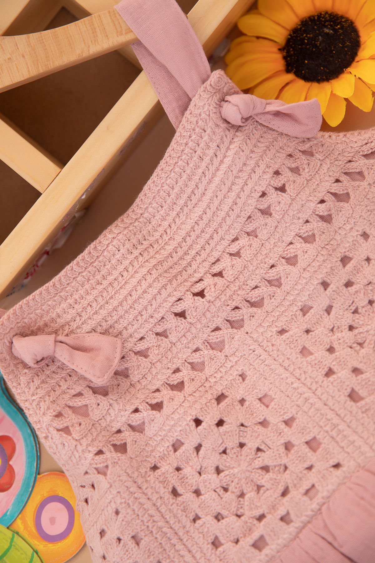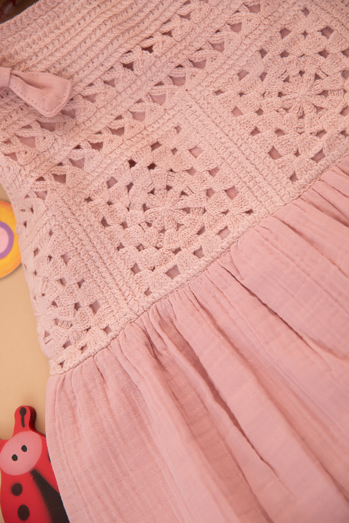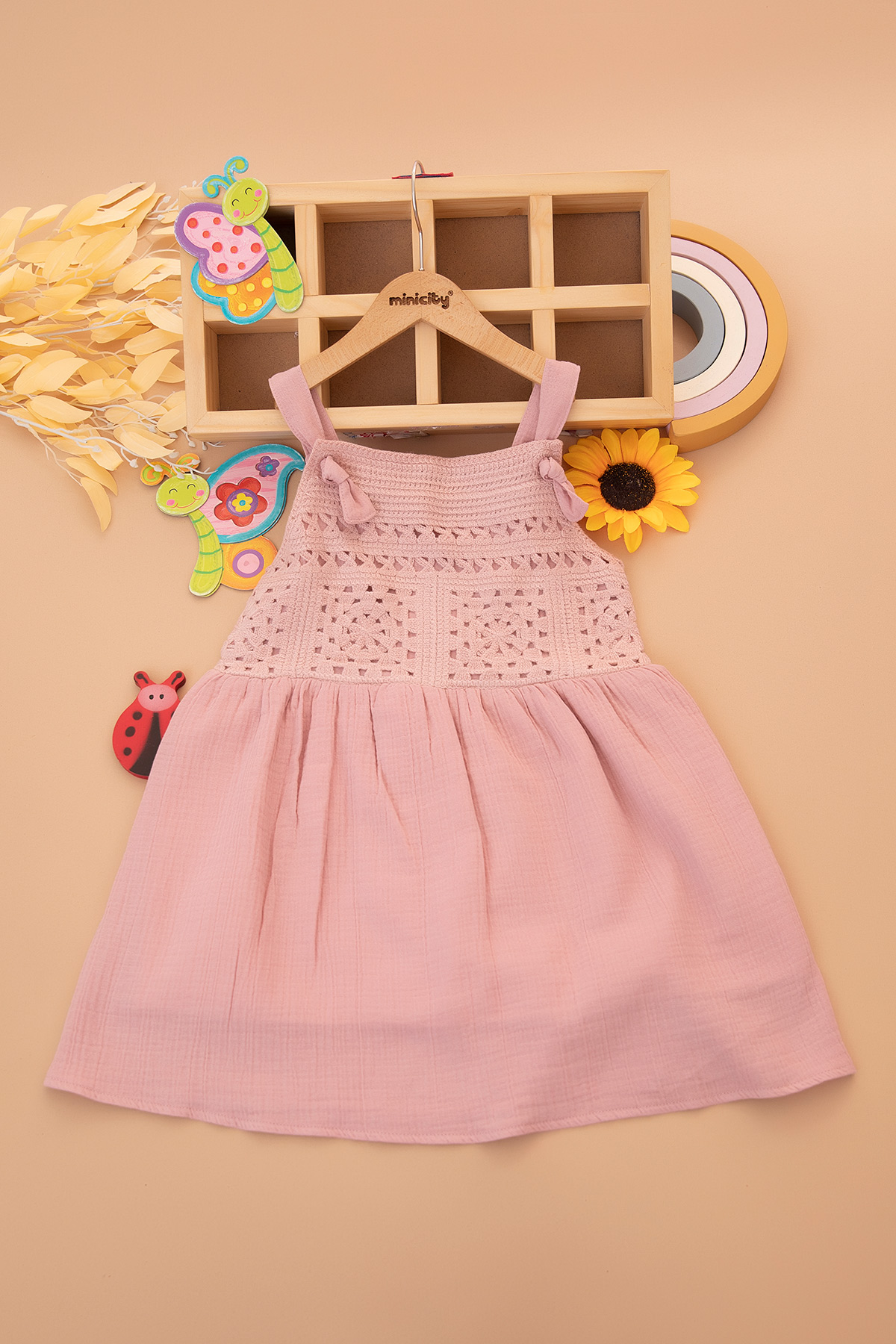 Kız Çocuk Kanaviçe Süzene Askılı Elbise - 1675 (4-7 Yaş)