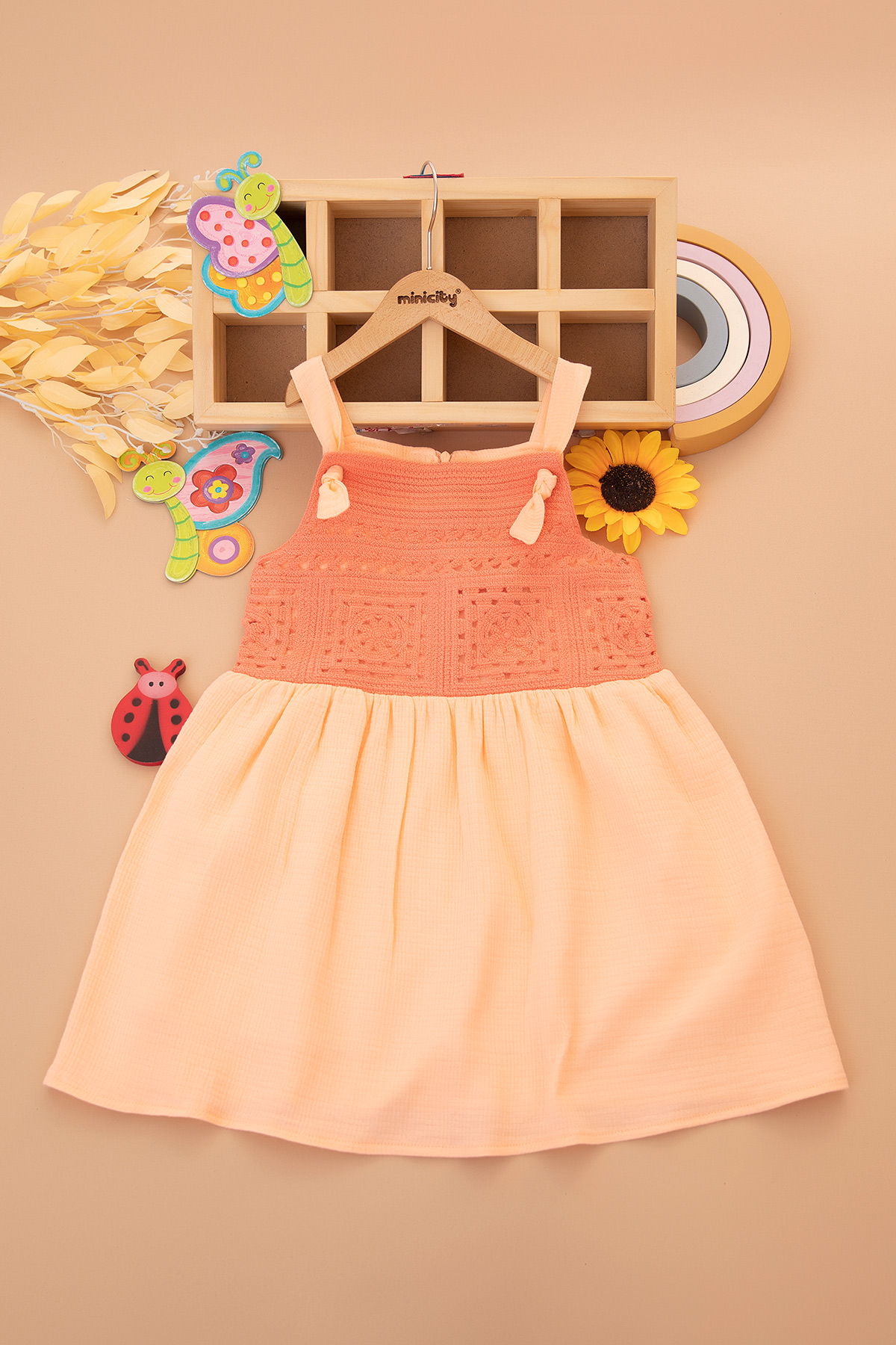 Kız Çocuk Kanaviçe Süzene Askılı Elbise - 1675 (4-7 Yaş)