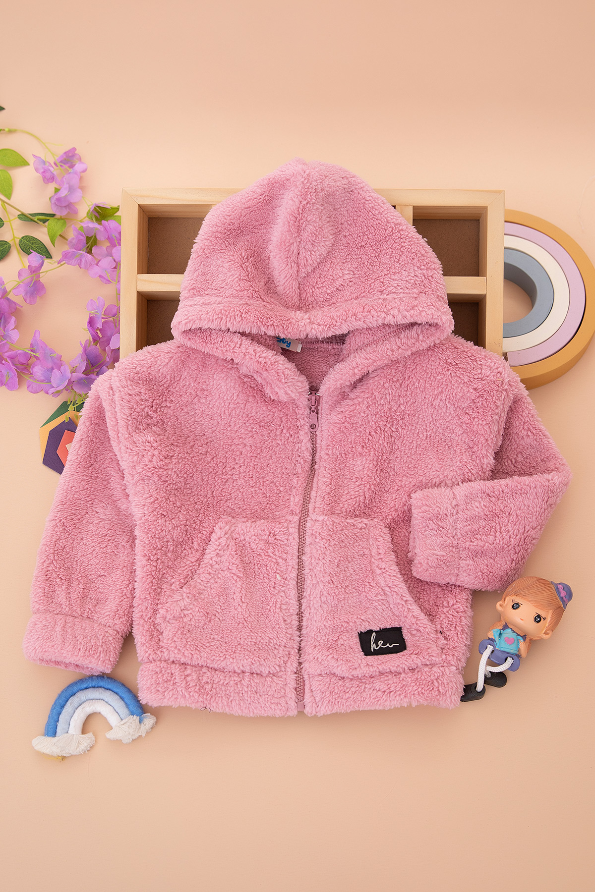 Kız Çocuk Kanguru Cepli Fermuarlı Peluş Mont - 8040 (3-12 Yaş)