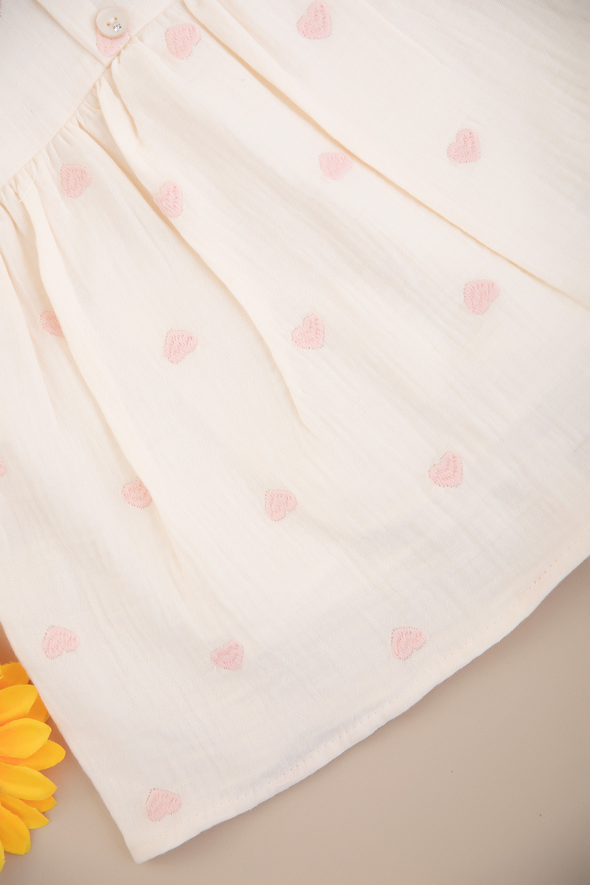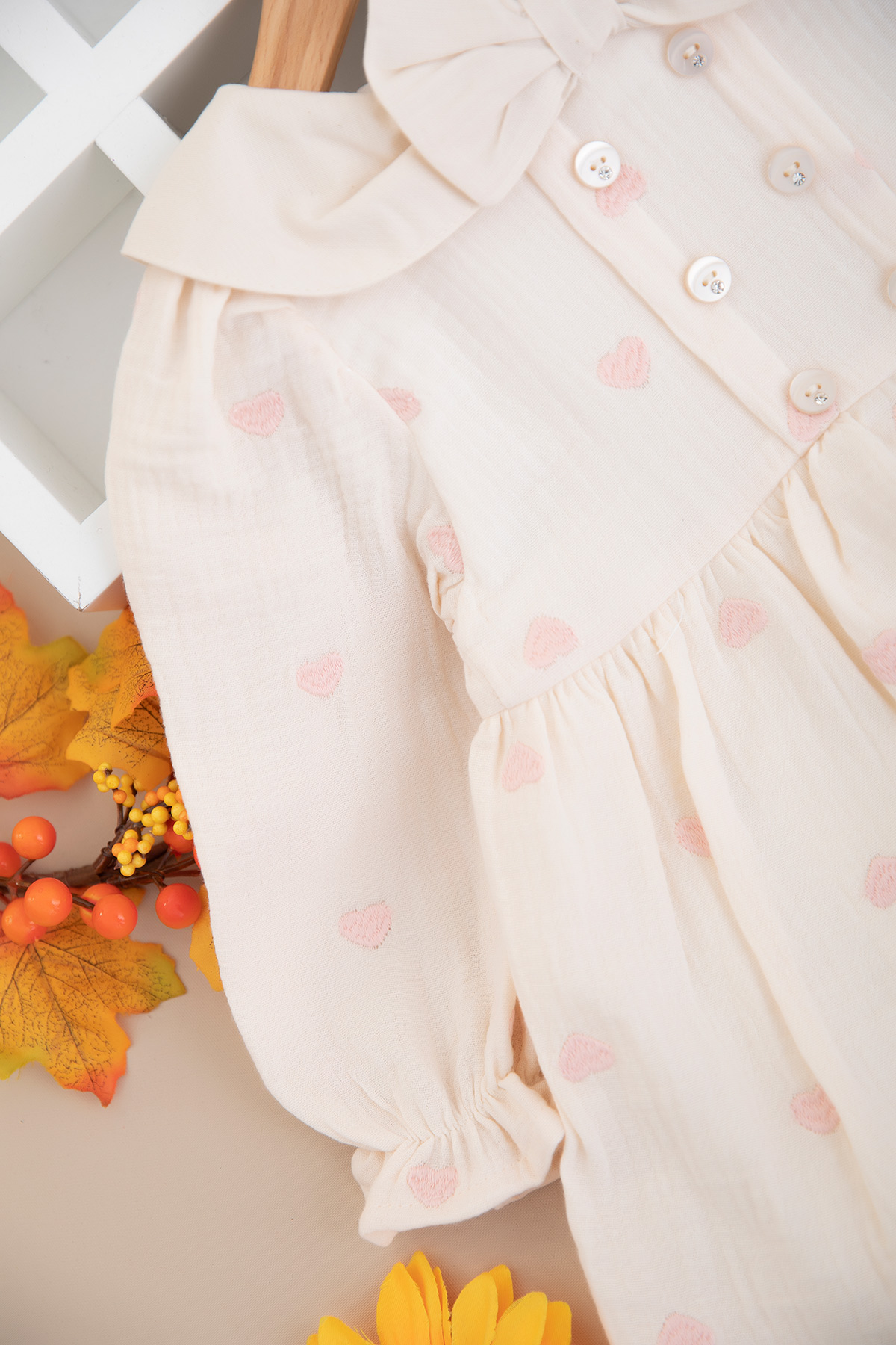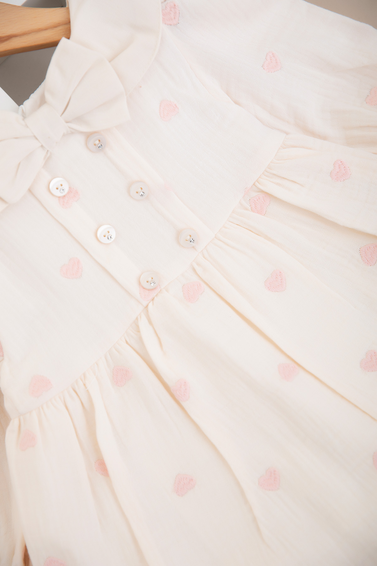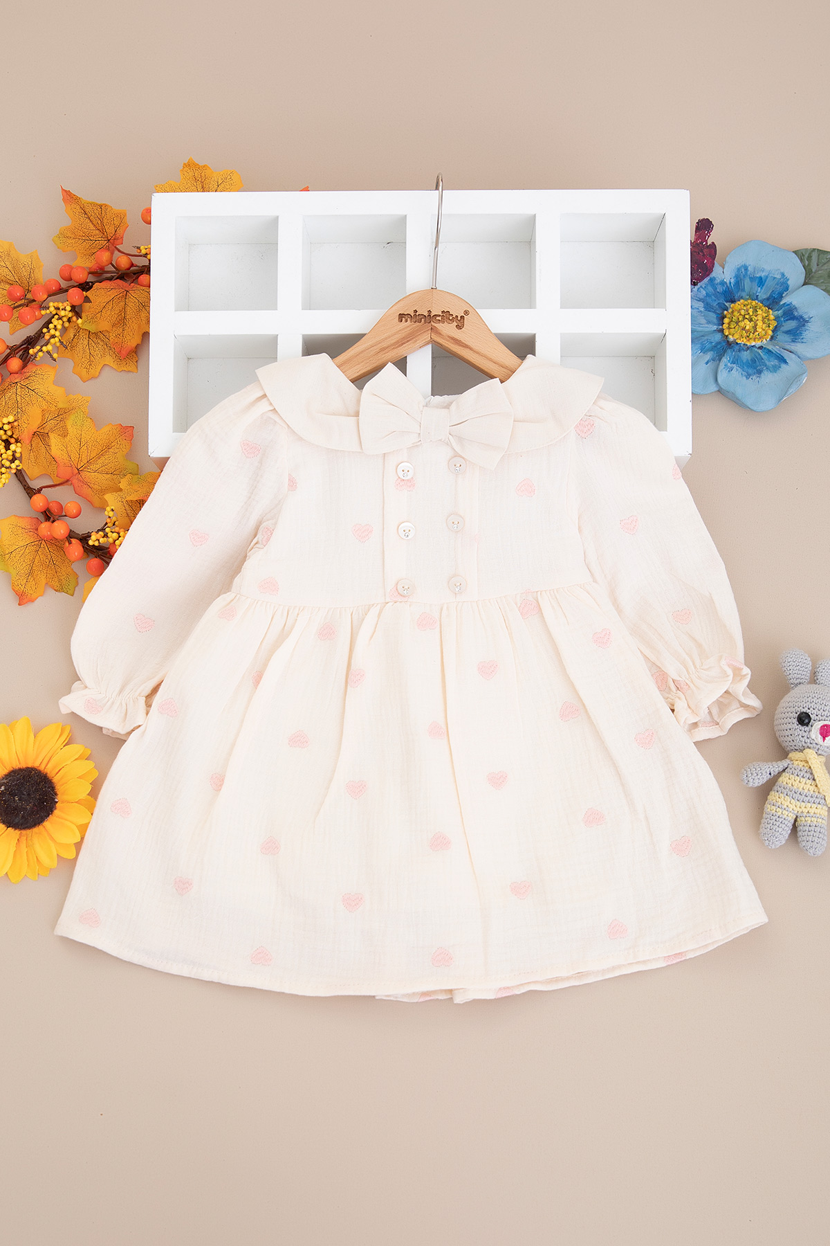 Kız Çocuk Kalpli Müslin Elbise - 4129 (2-5 Yaş)