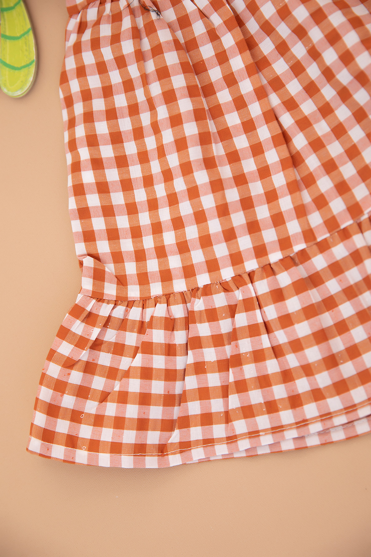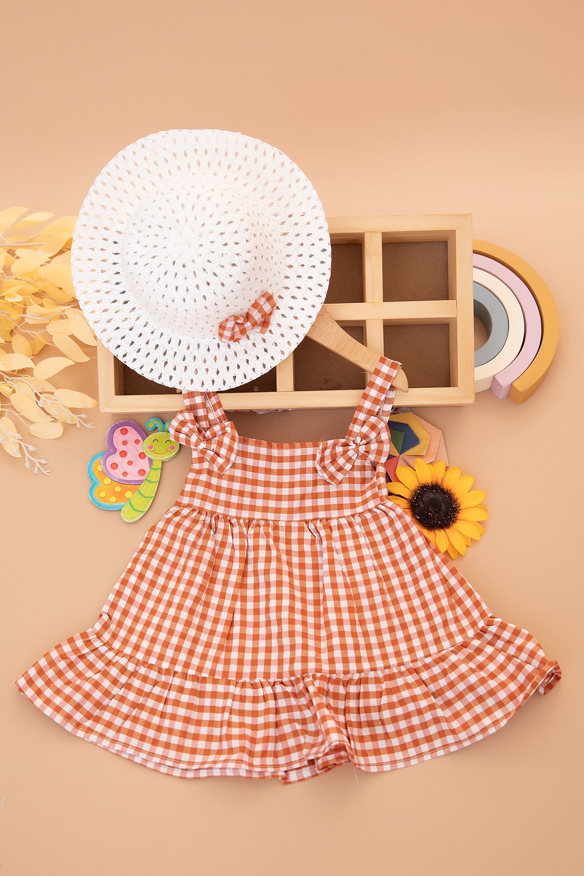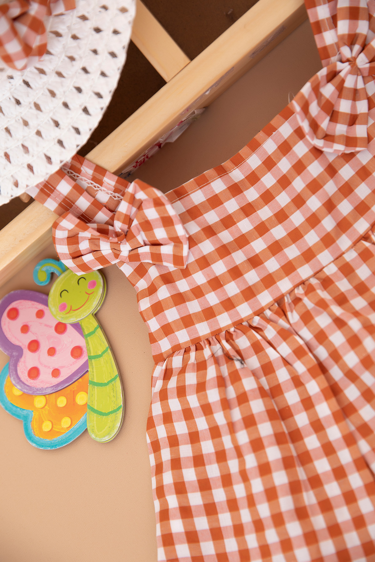 Kız Çocuk Kareli Şapkalı Askılı Elbise (2-6 Yaş)