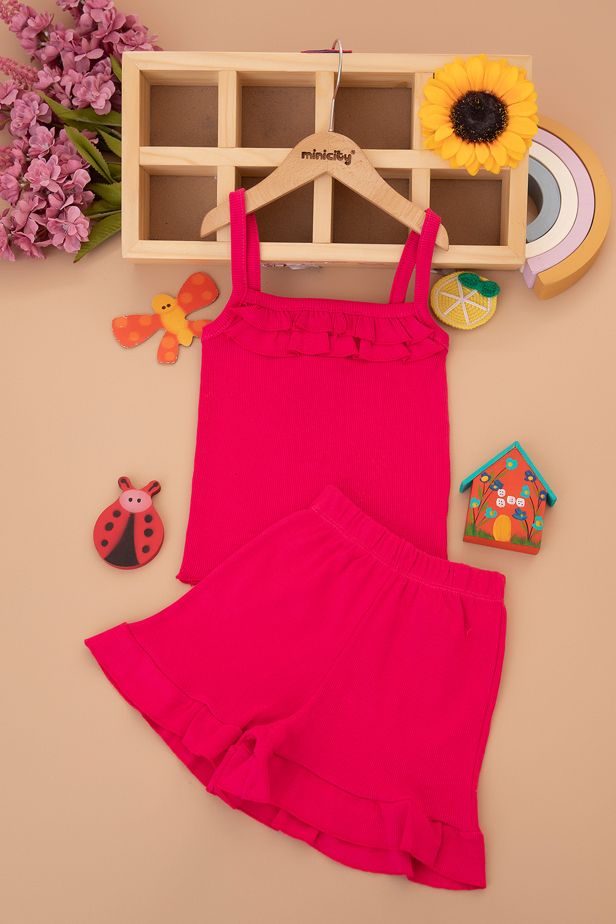 Kız Çocuk Kaşkorse Fırfırlı Şortlu Takım - 12630 (4-8 Yaş)