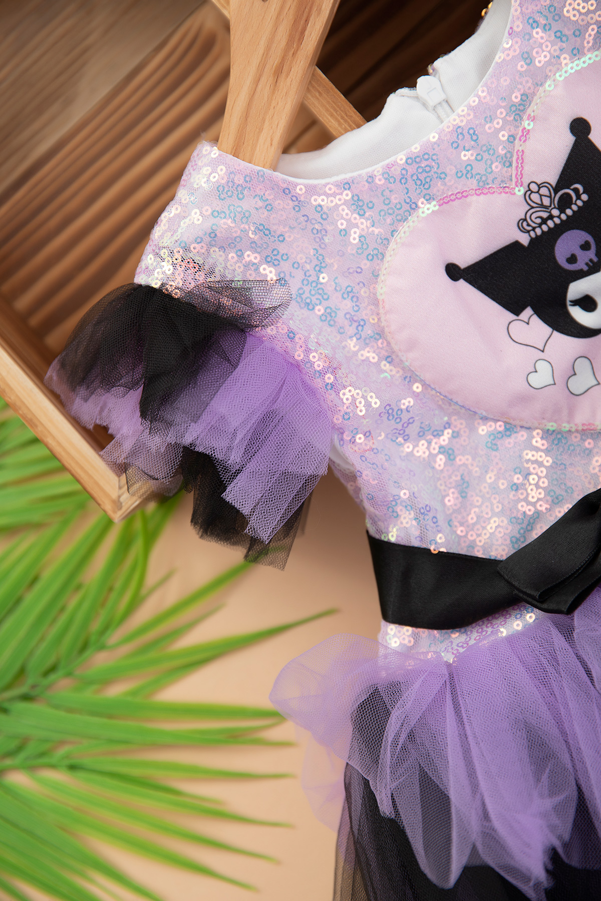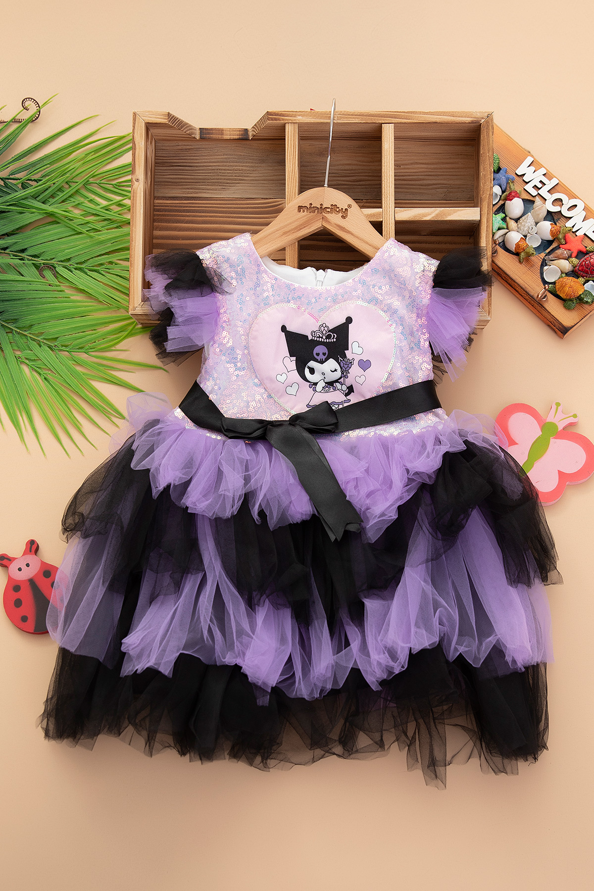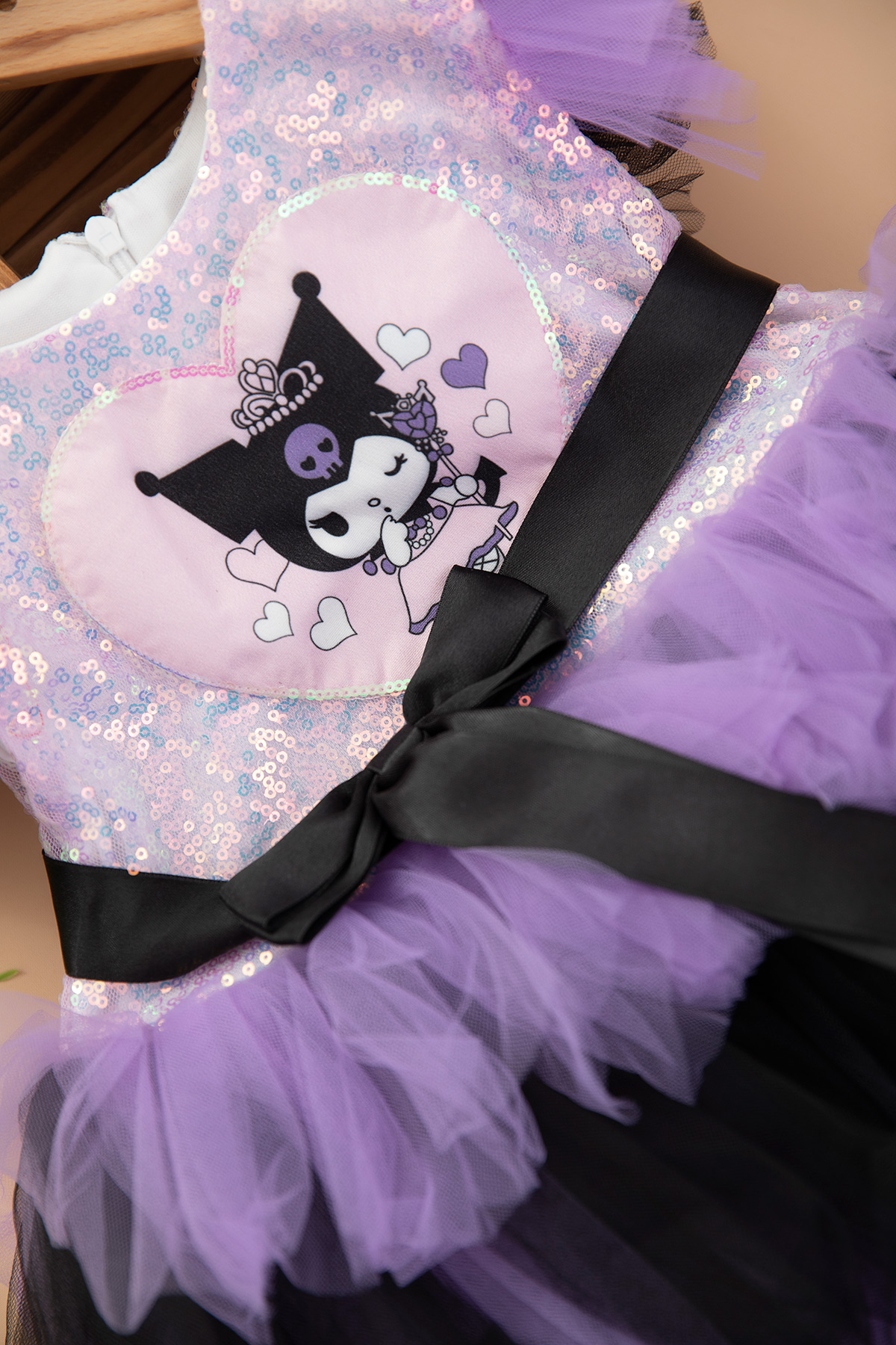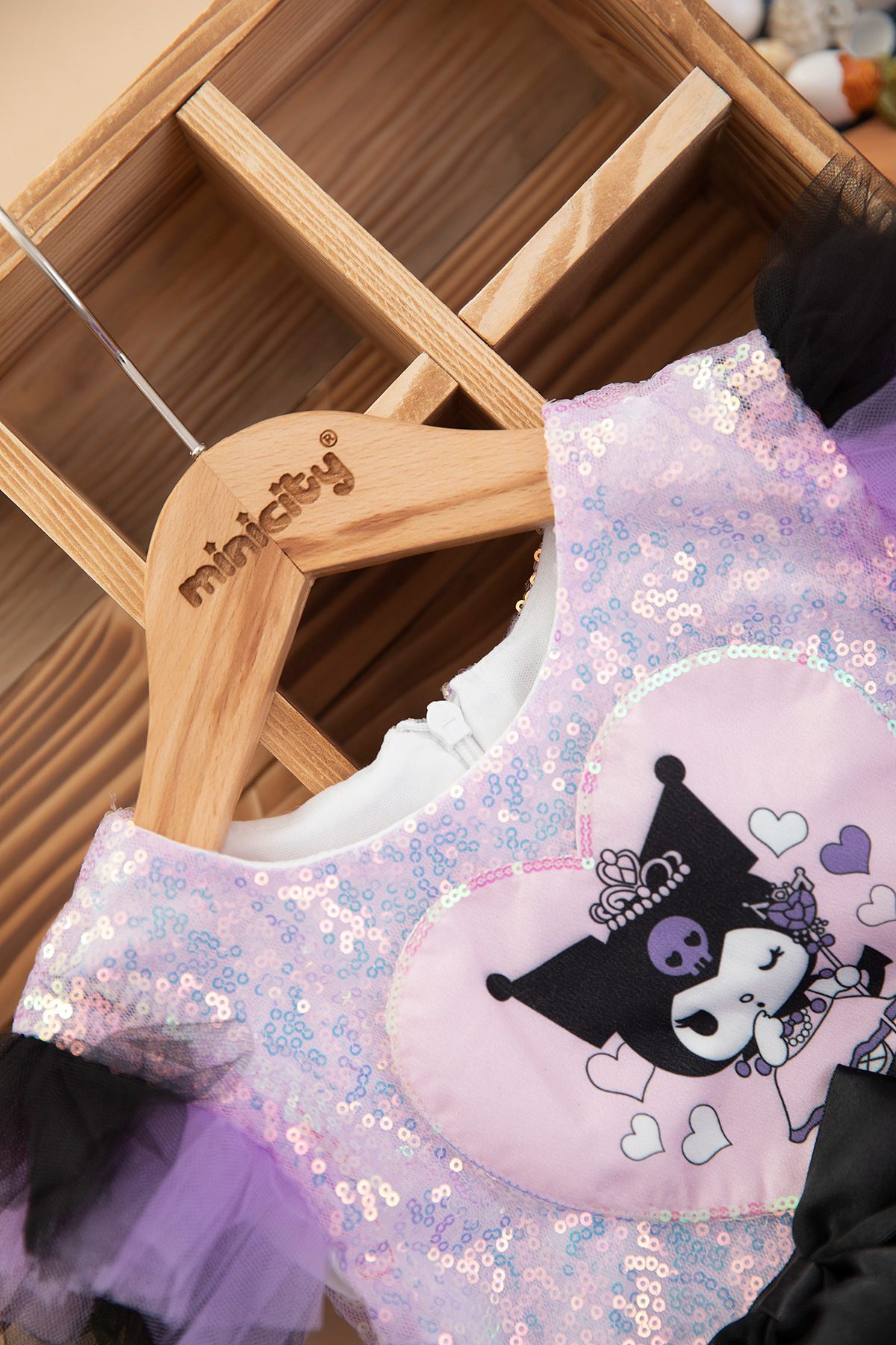 Kız Çocuk Kat Kat Kuromi Baskılı Elbise - 1036 (3-6 Yaş)