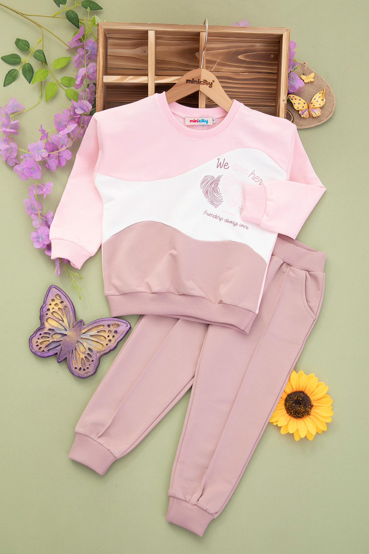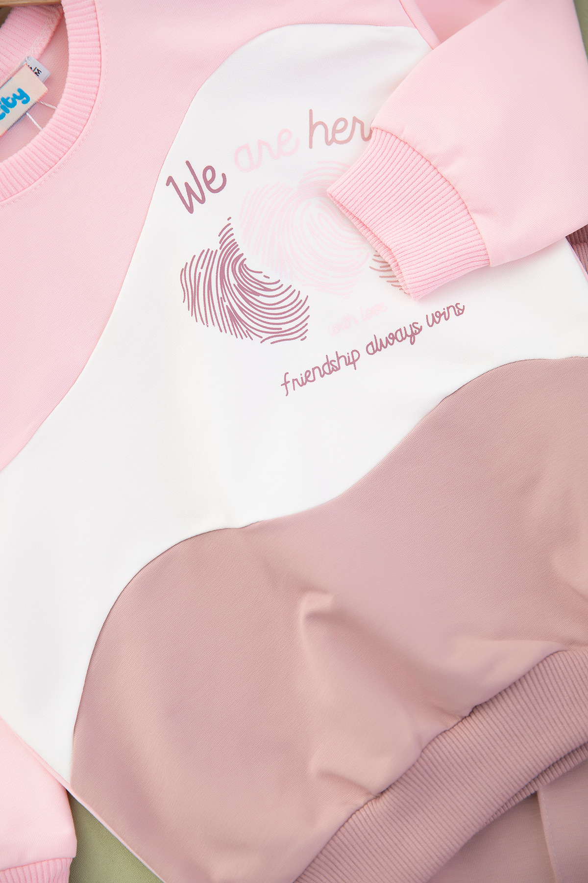 Kız Çocuk Kat Kat Renkli Kalp Baskılı Takım - 112 (3-7 Yaş)