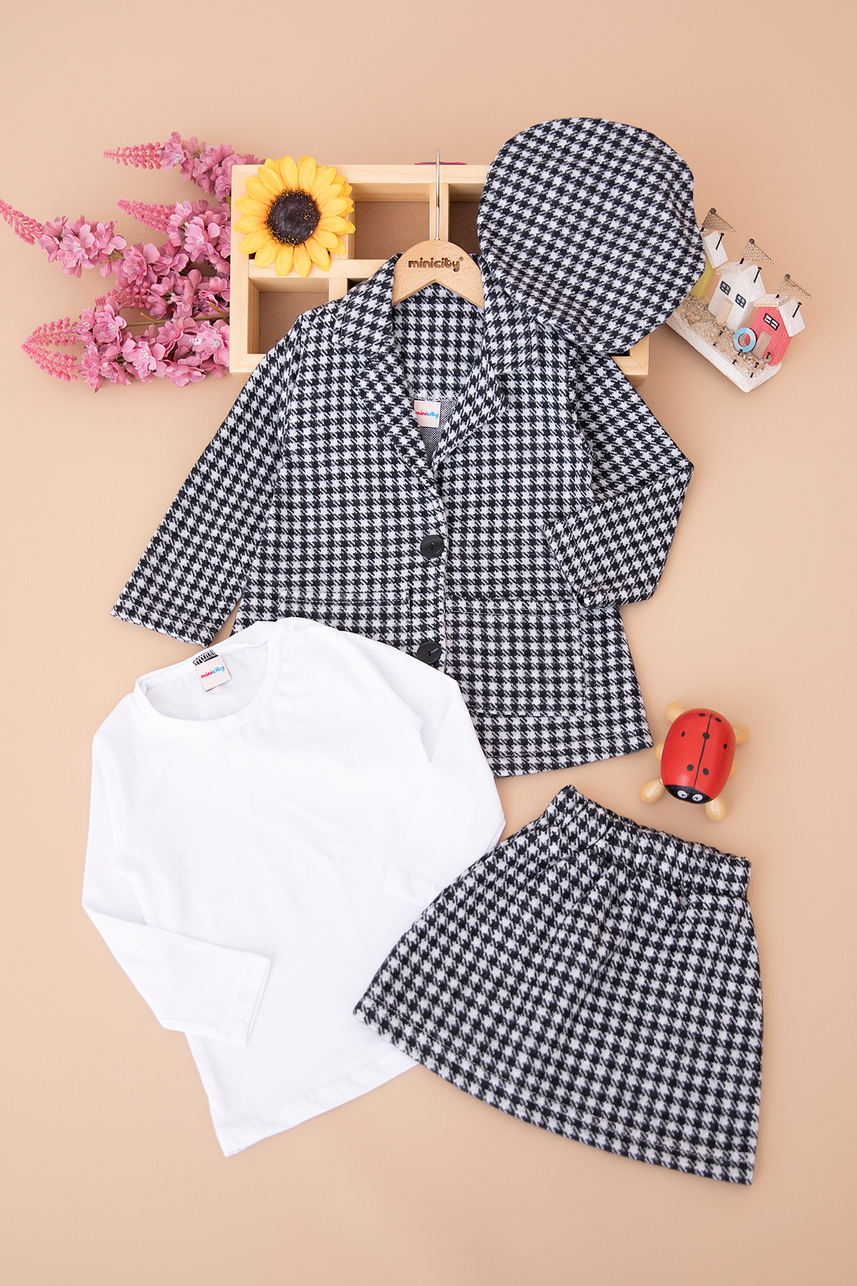 Kız Çocuk Kazayağı Ceket Badi Etek Takım - 20018 (3-10 Yaş)