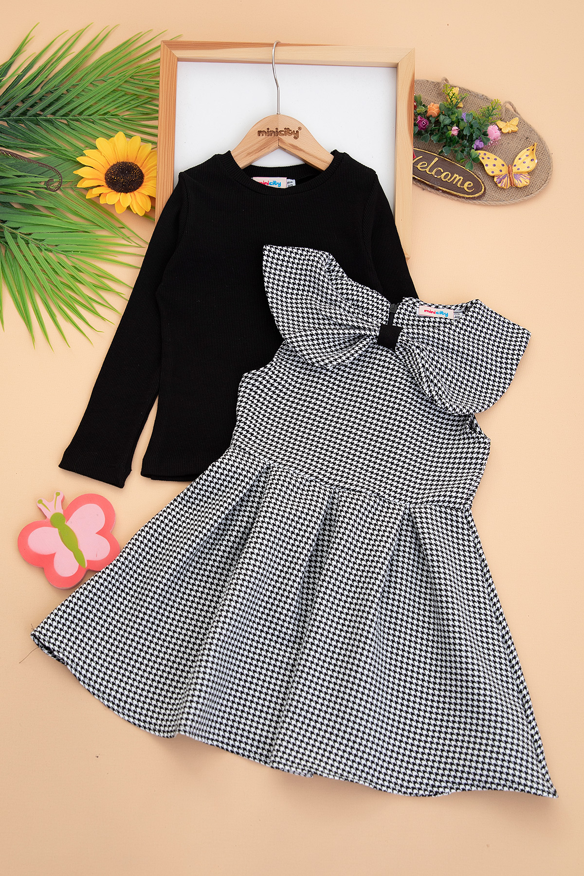 Kız Çocuk Kazayağı Yakalı Elbise - (2-8 Yaş)