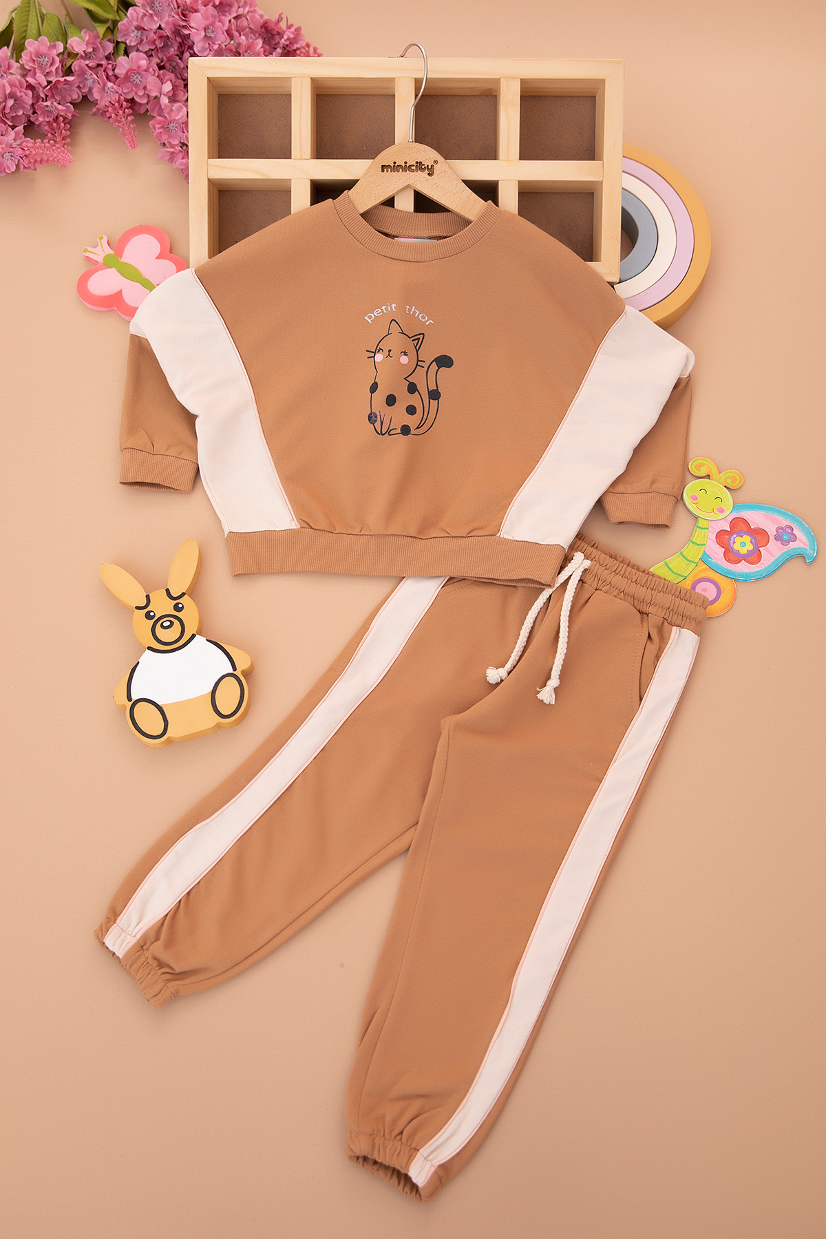 Kız Çocuk Kedi Baskılı Takım - 9021 (3-6 Yaş)