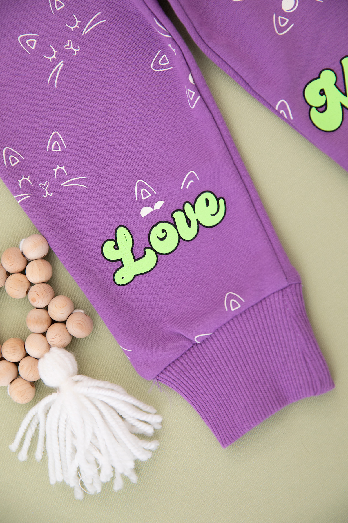 Kız Çocuk Kedi Baskılı Tek Alt - 5066 (1-4 Yaş)