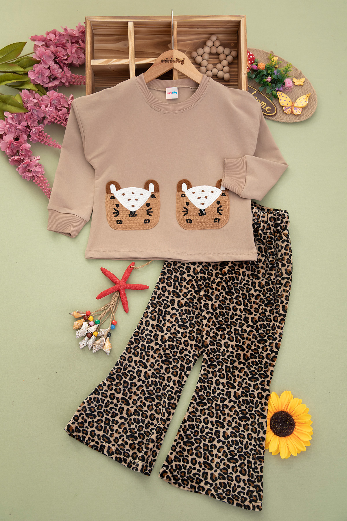 Kız Çocuk Kedi Cepli Leopar Takım - 11536 (4-8 Yaş)