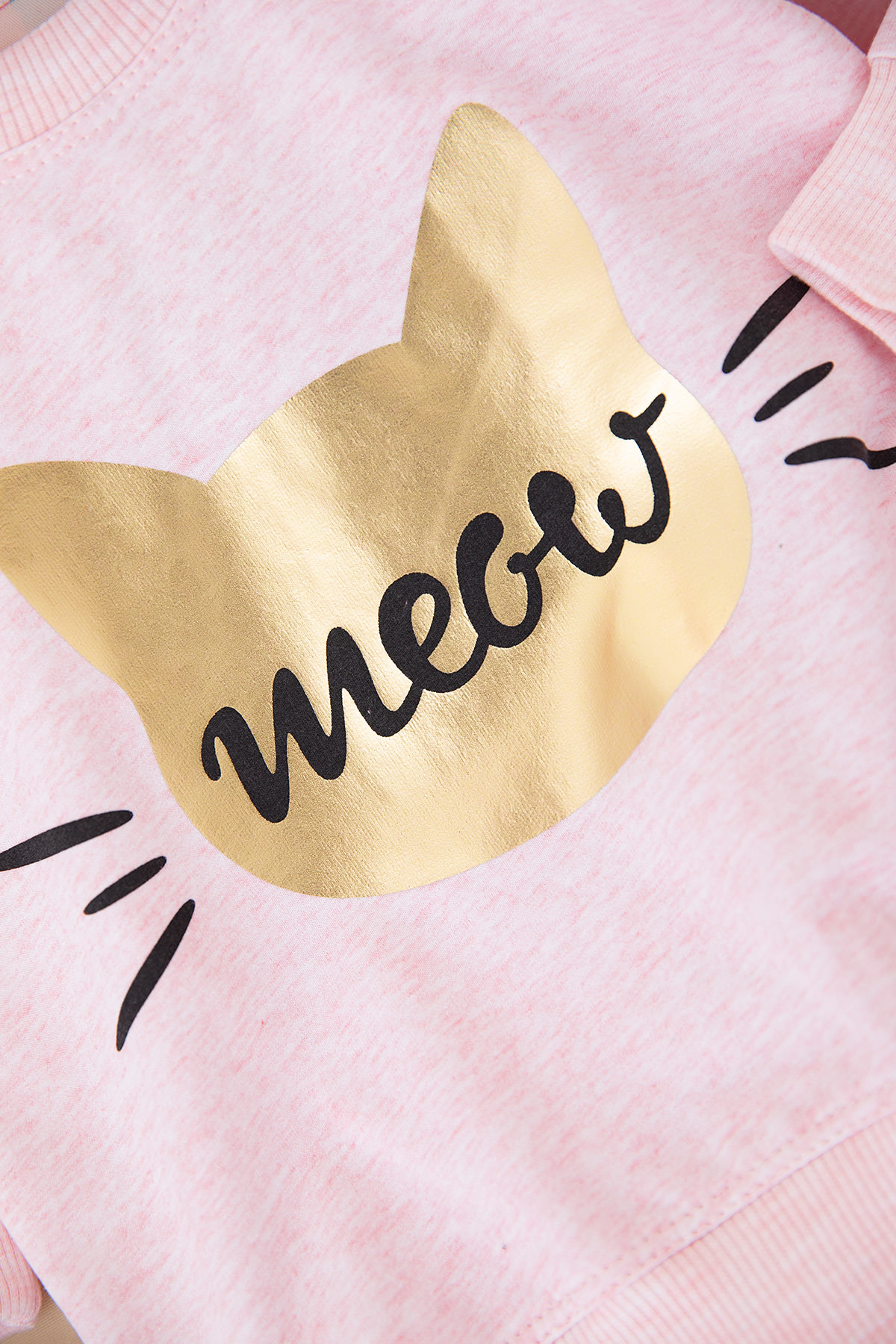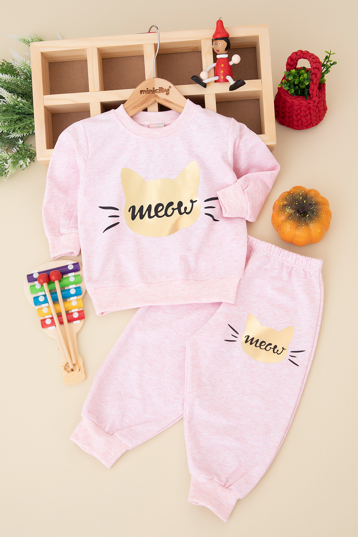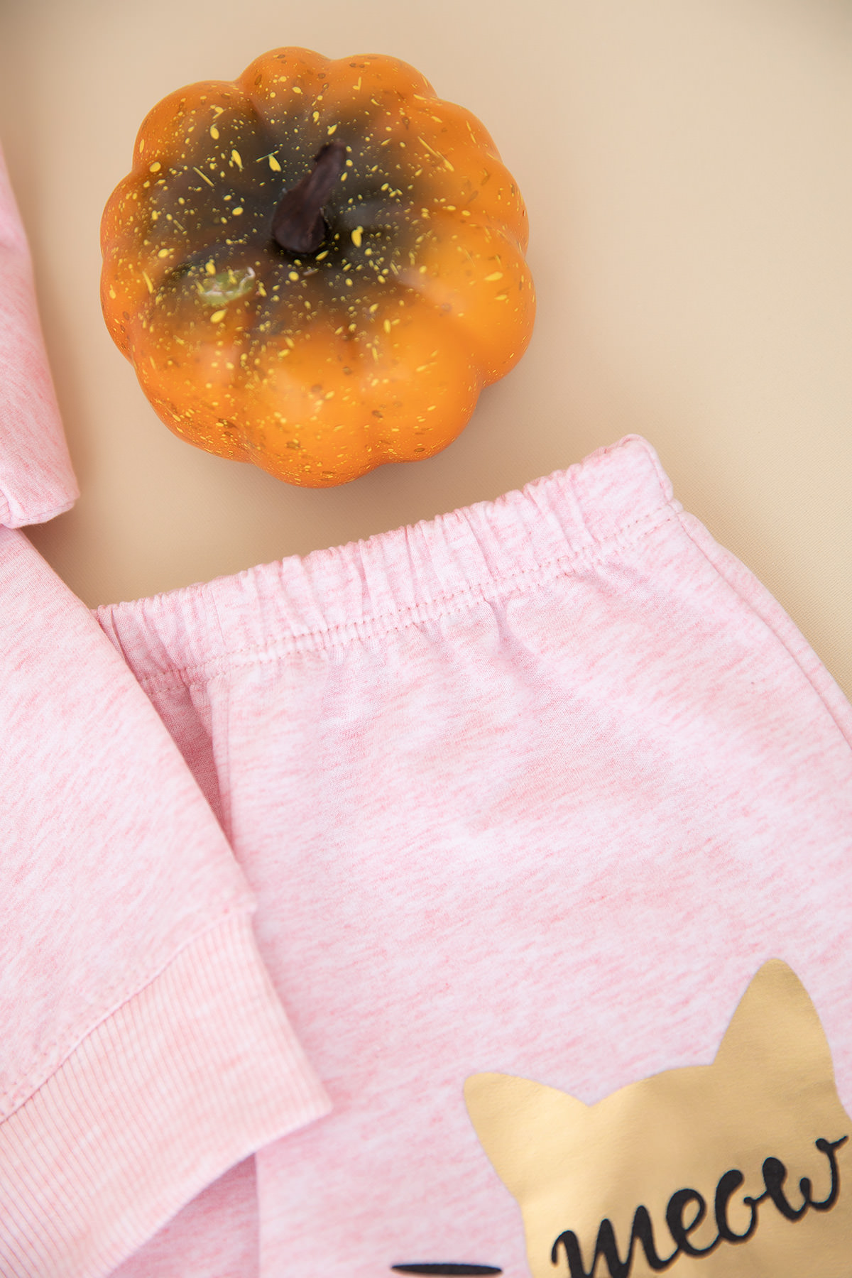 Kız Çocuk Kedi Kafa Baskılı Takım - 0424 (1-3 Yaş)