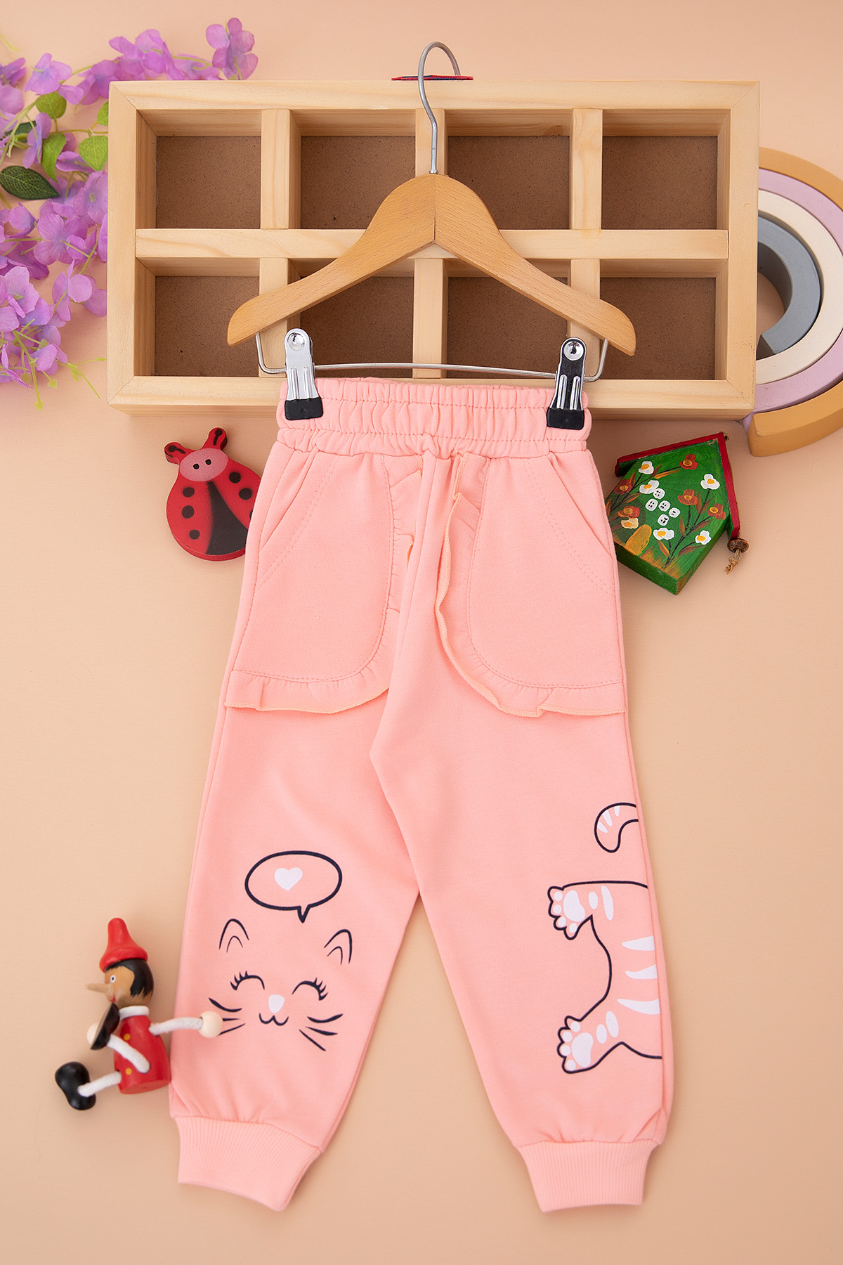 Kız Çocuk Kedi Kalp Baskılı Tek Alt - 626 (1-4 Yaş)