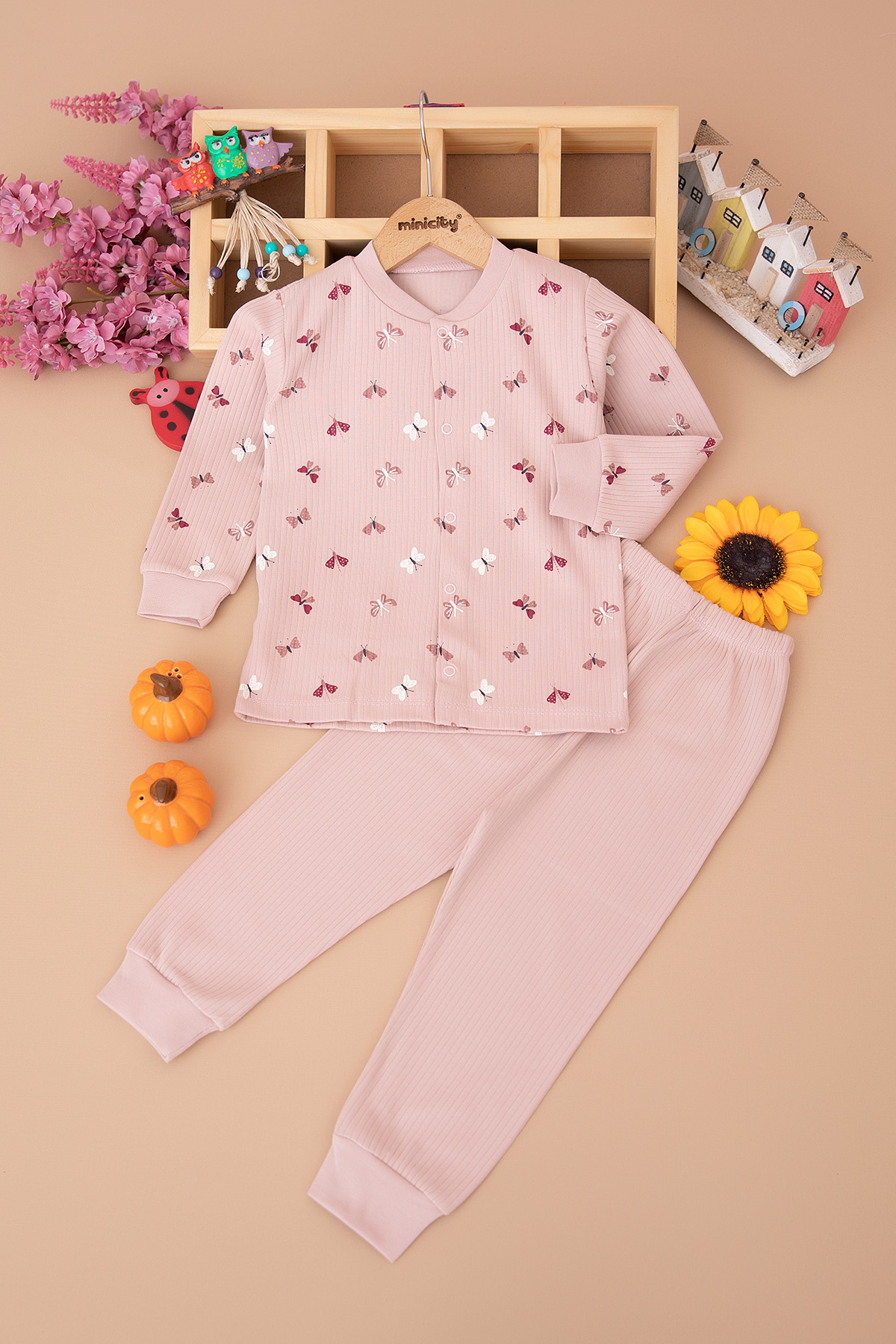 Kız Çocuk Kelebek Baskılı Pijama Takımı - 3011 (2-5 Yaş)