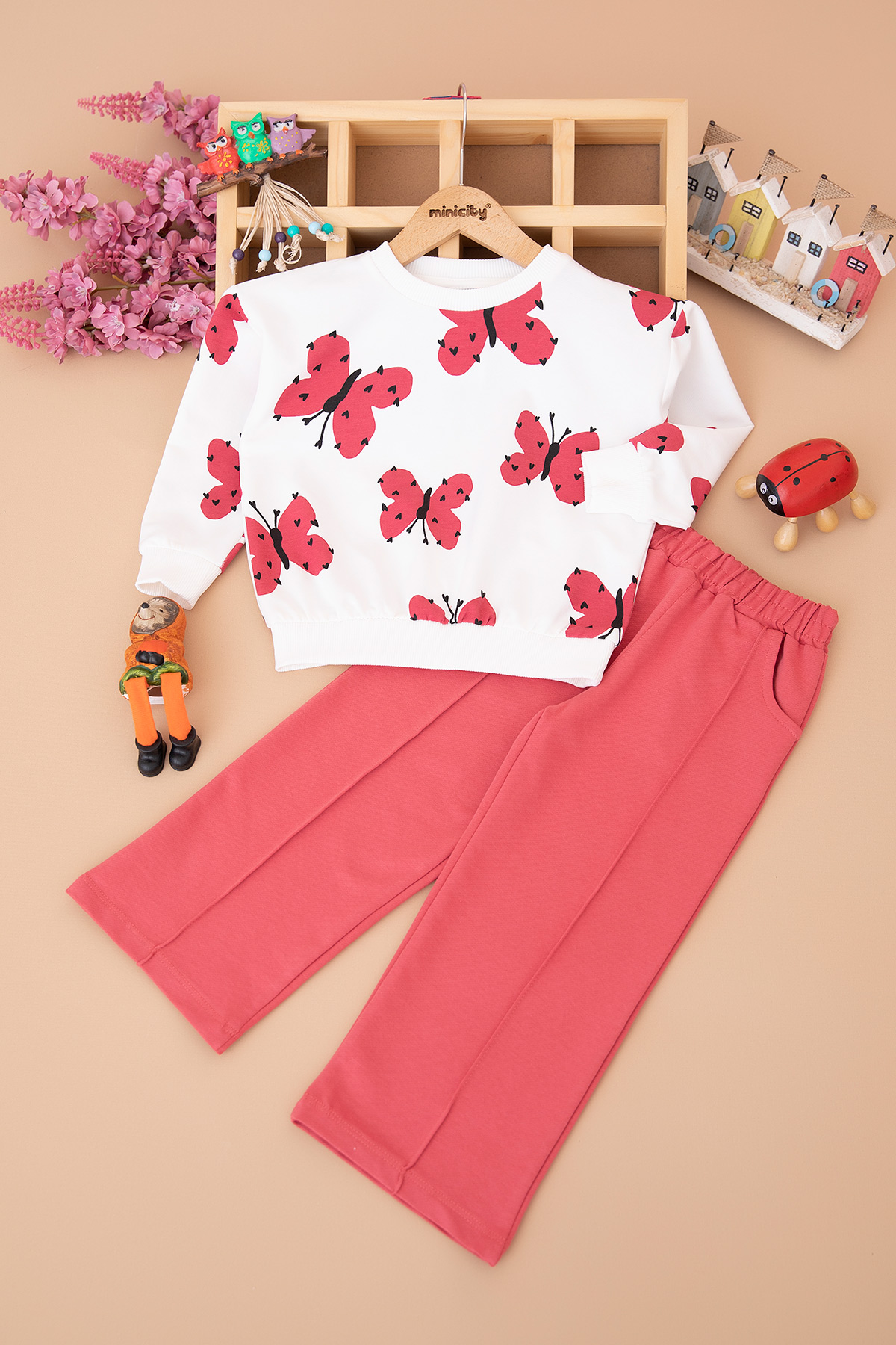 Kız Çocuk Kelebek Baskılı Takım - 25687 (3-6 Yaş)