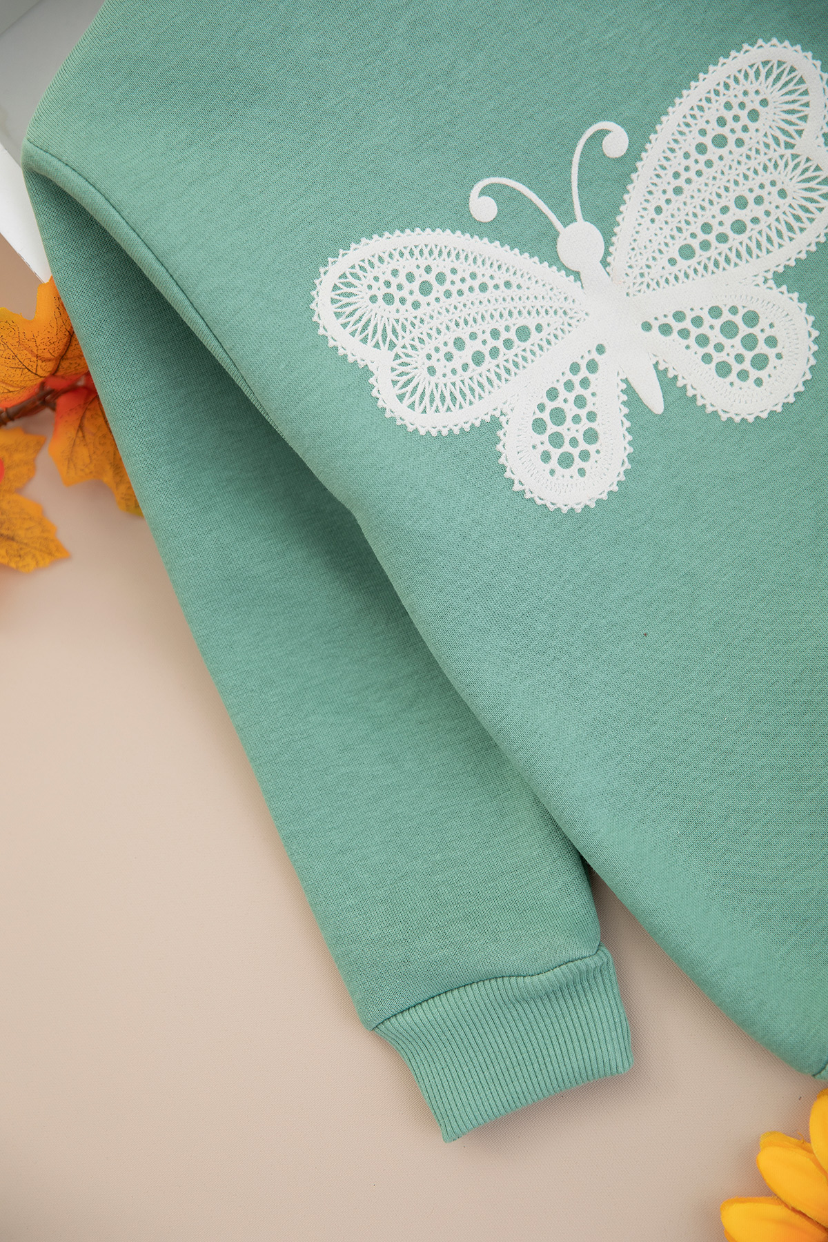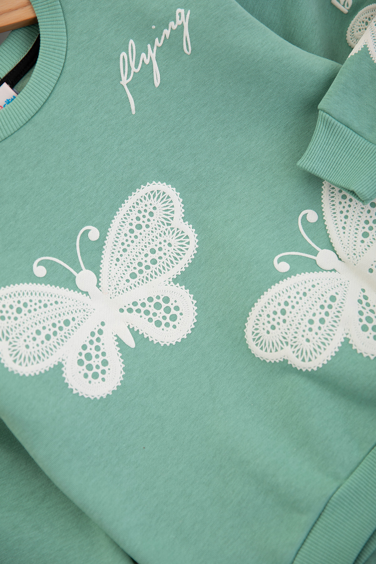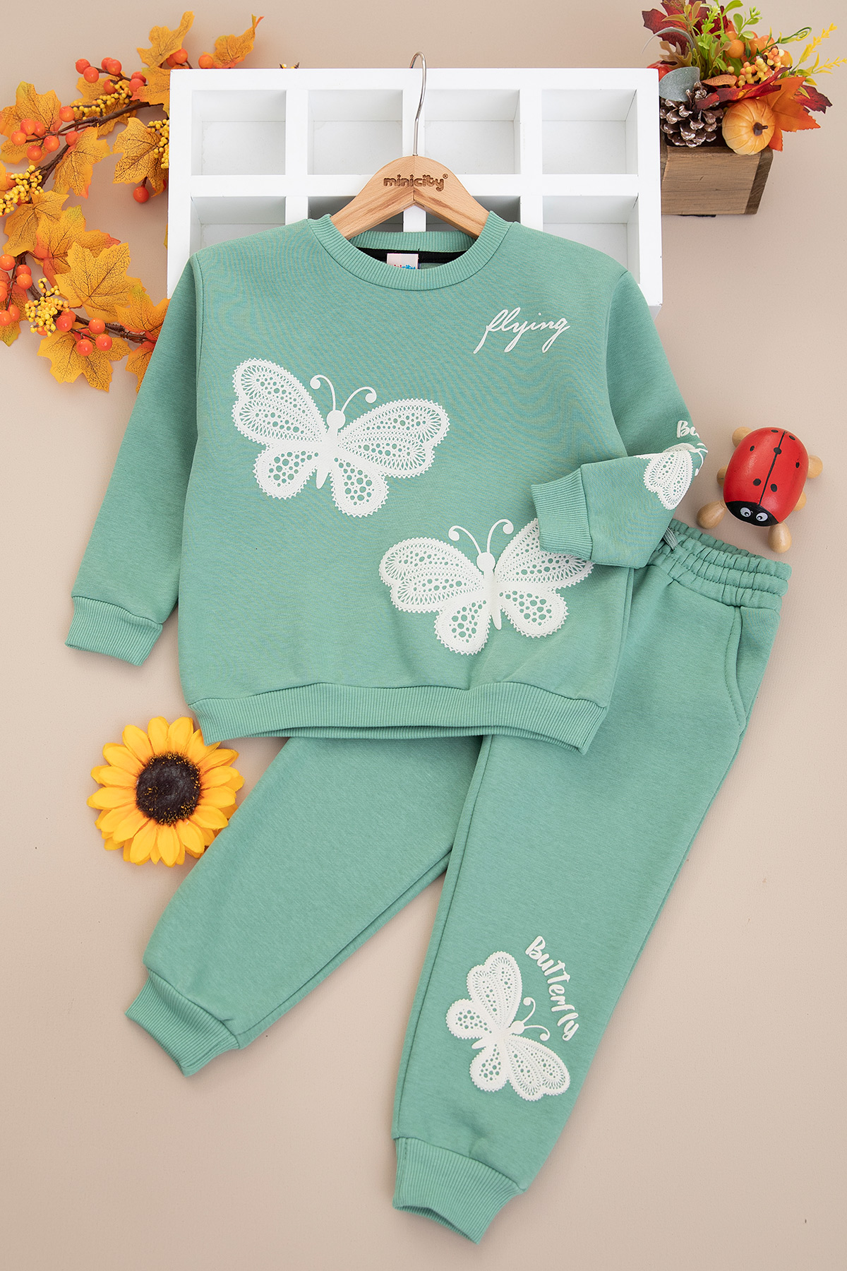 Kız Çocuk Kelebek Baskılı Üçip Takım - 25891 (3-6 Yaş)