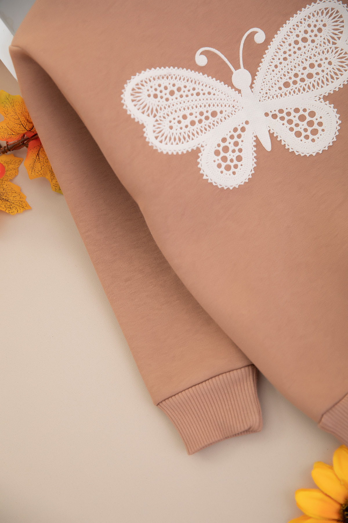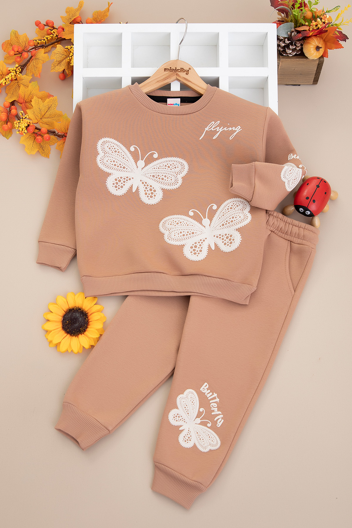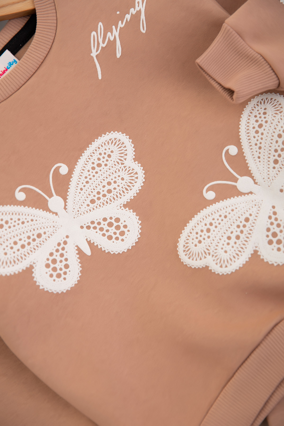 Kız Çocuk Kelebek Baskılı Üçip Takım - 25891 (3-6 Yaş)