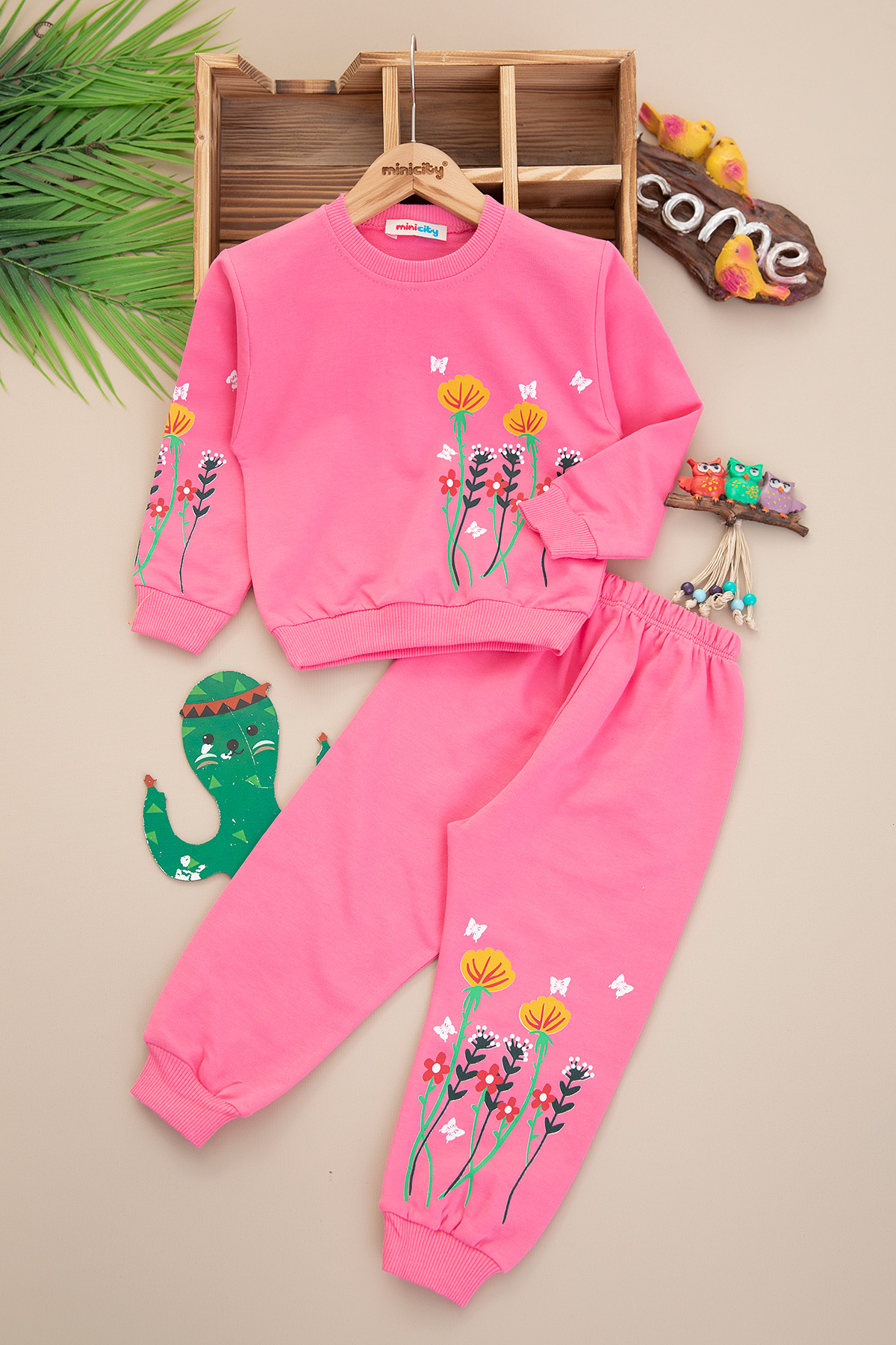 Kız Çocuk Kelebek Çiçek Baskılı Mevsimlik Takım (2-5 Yaş)
