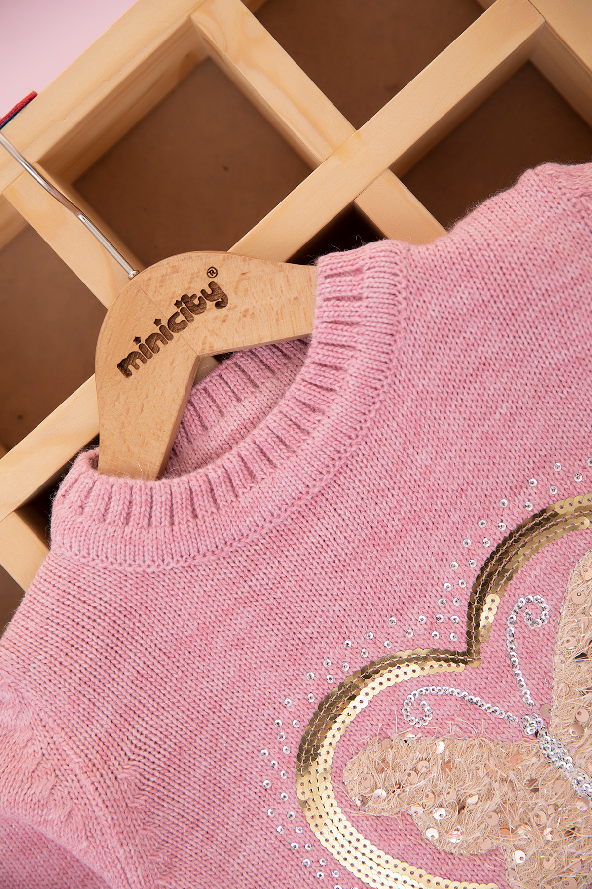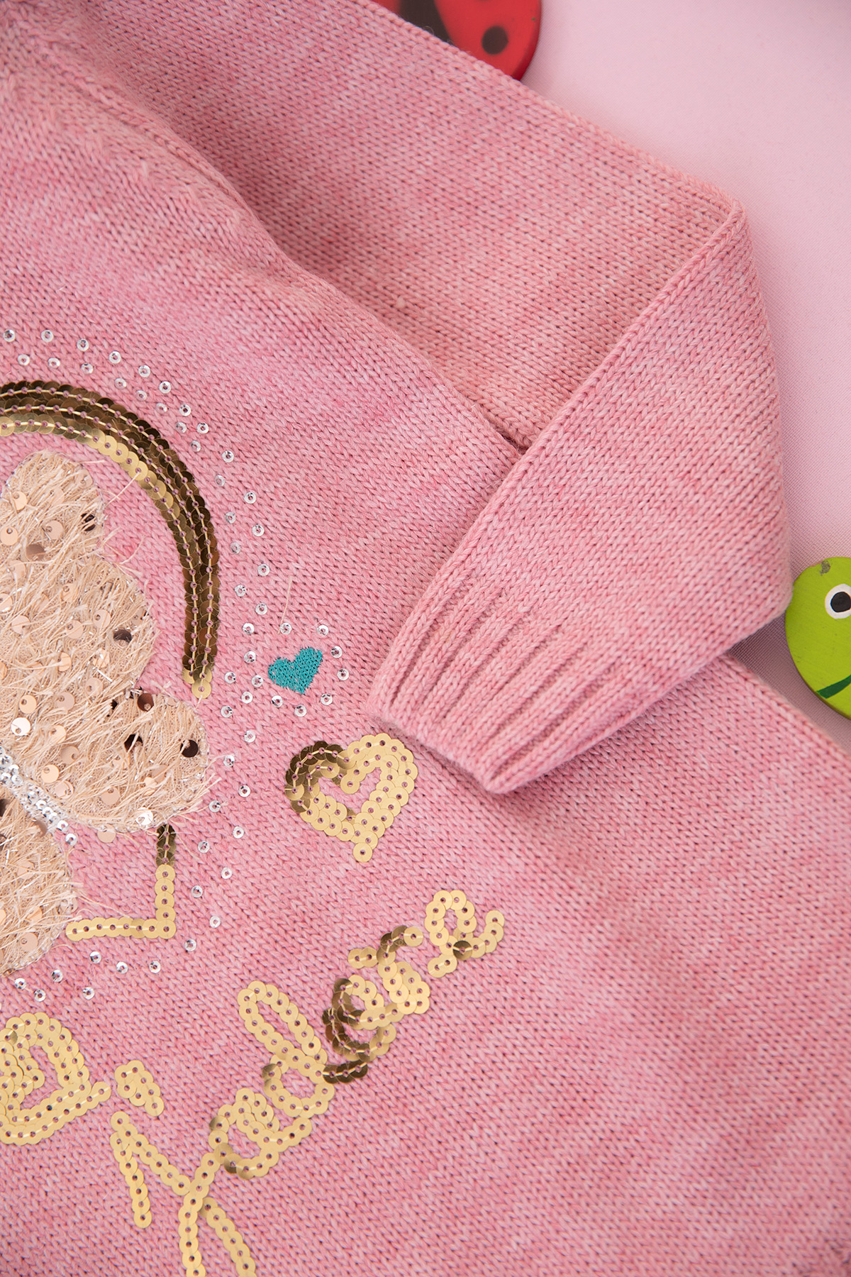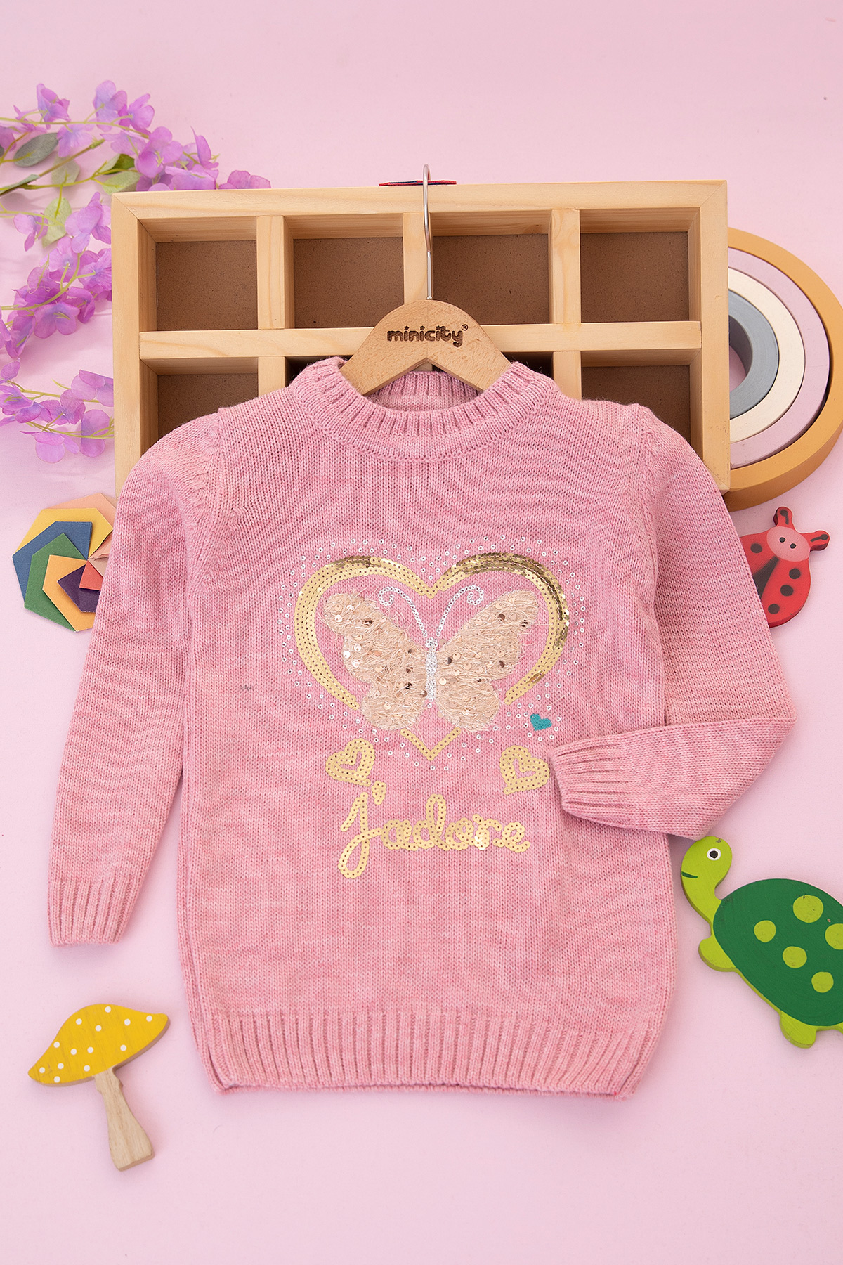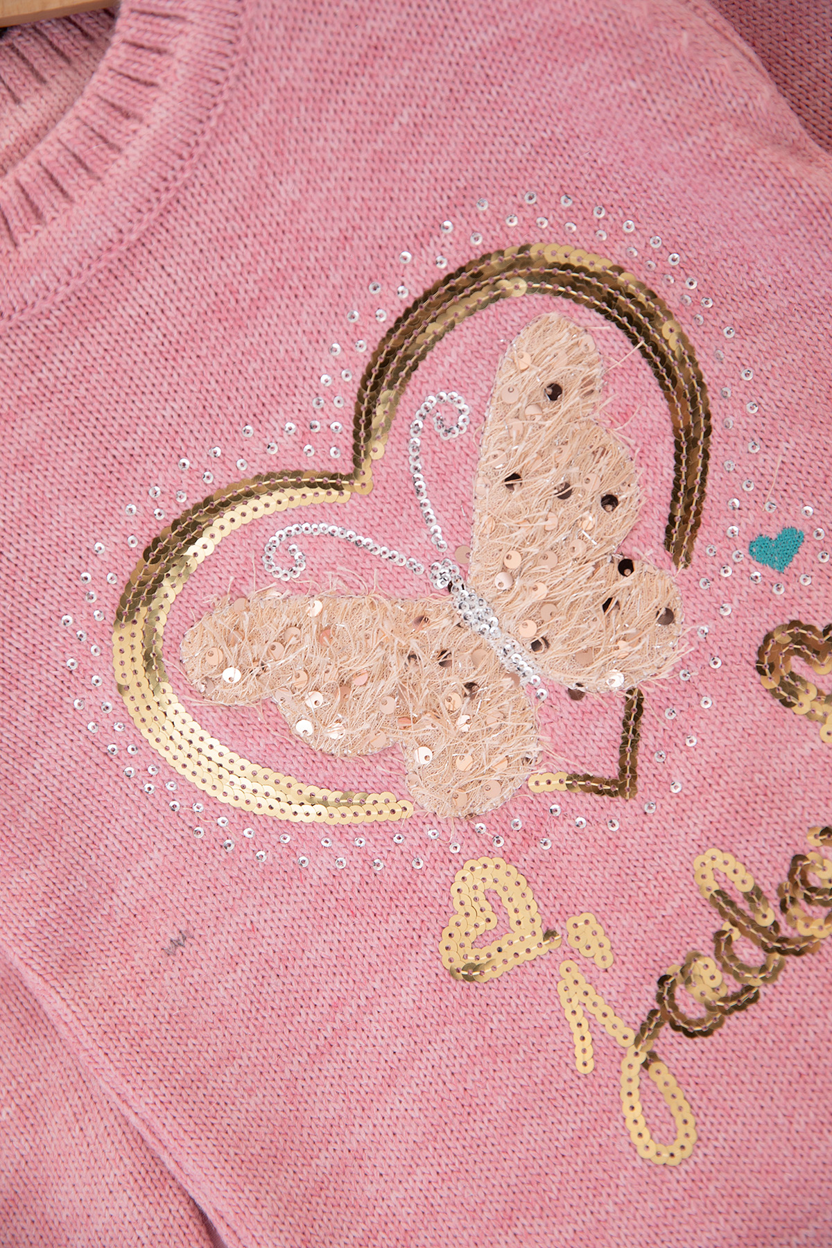 Kız Çocuk Kelebek Kalp Nakışlı Kazak - 605 (4-9 Yaş)