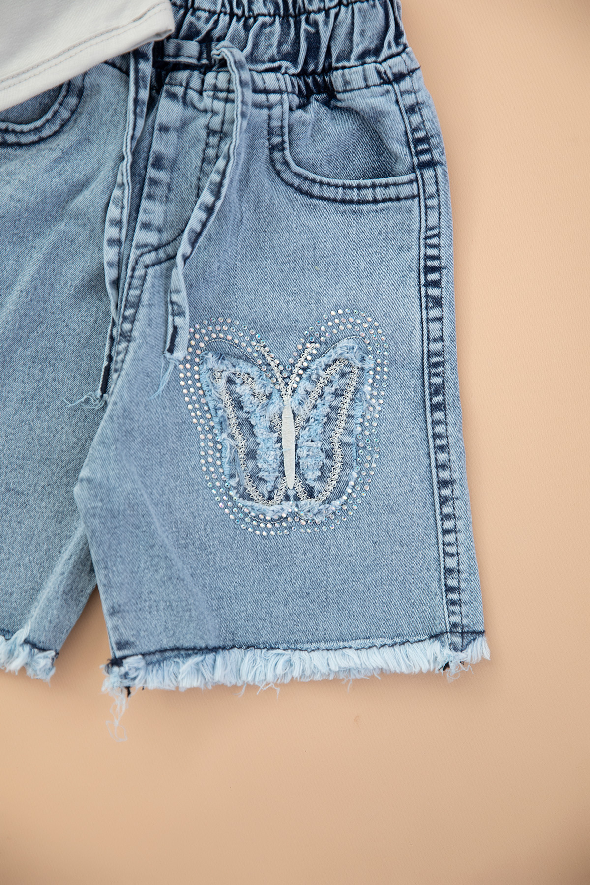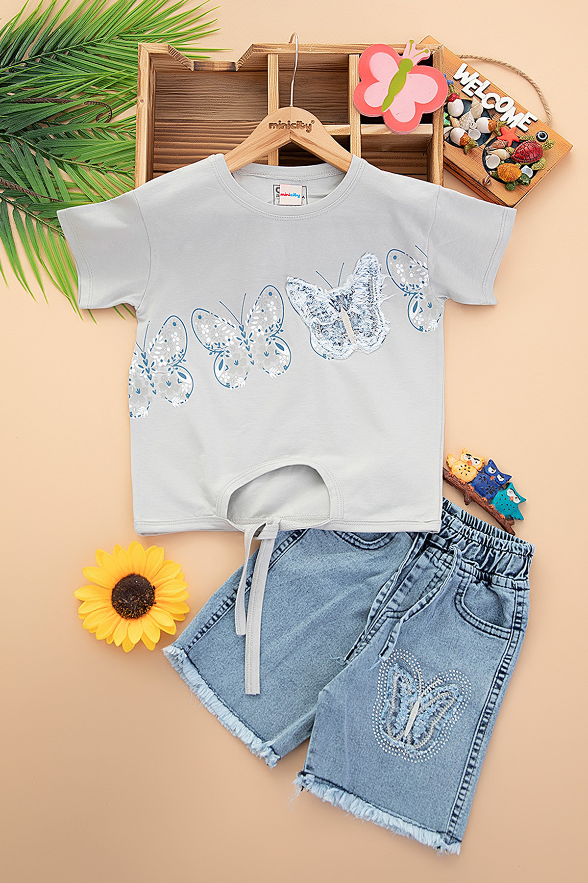Kız Çocuk Kelebek Kot Şort Etek Takım - 30860 (5-12 Yaş)
