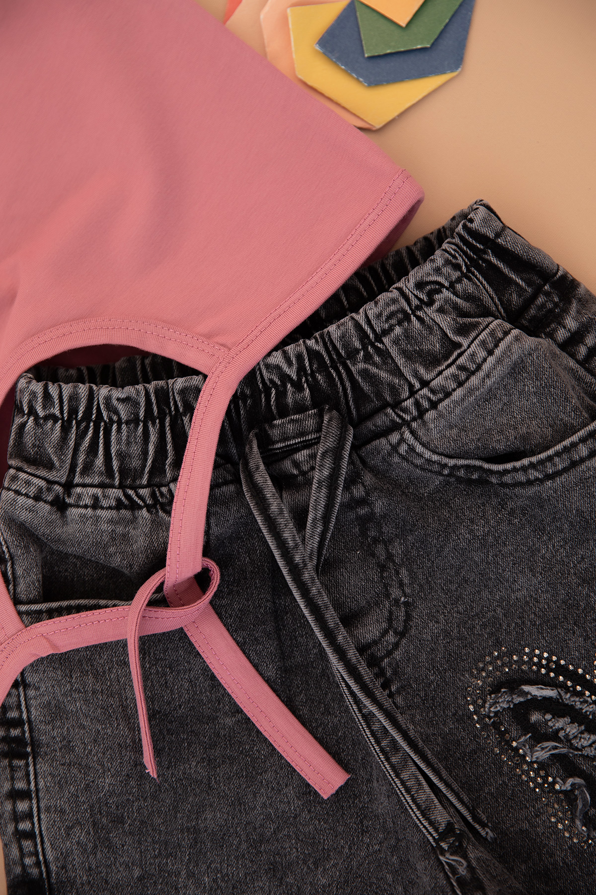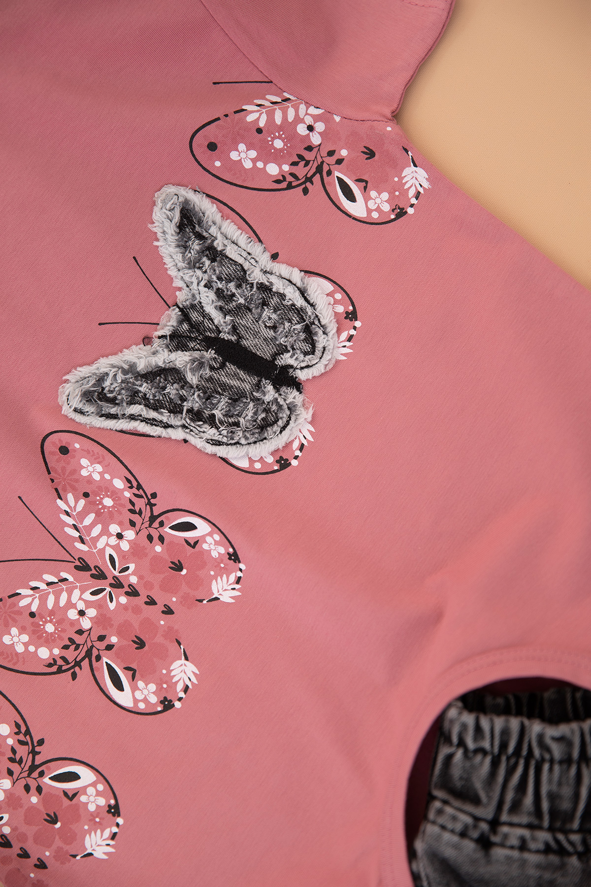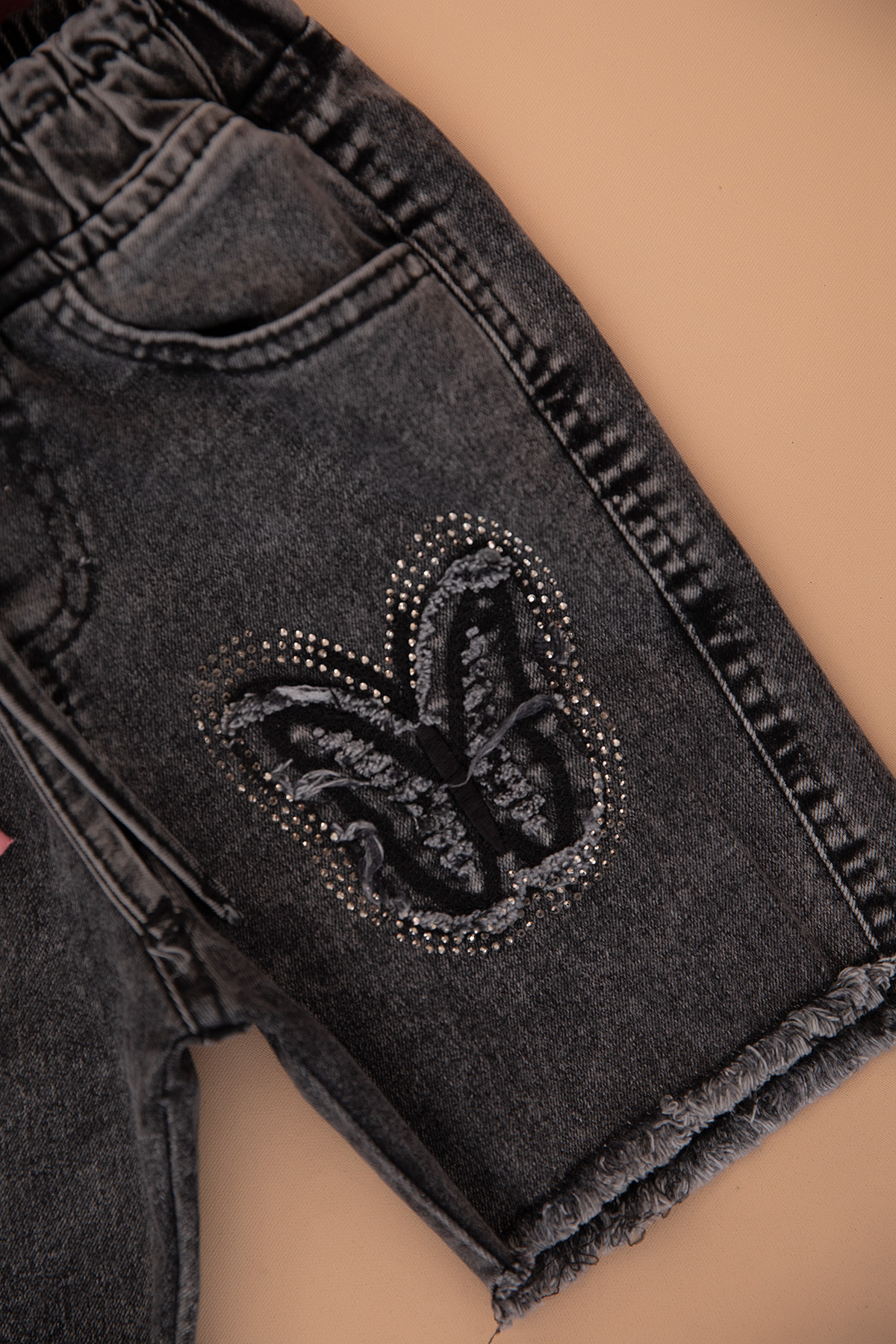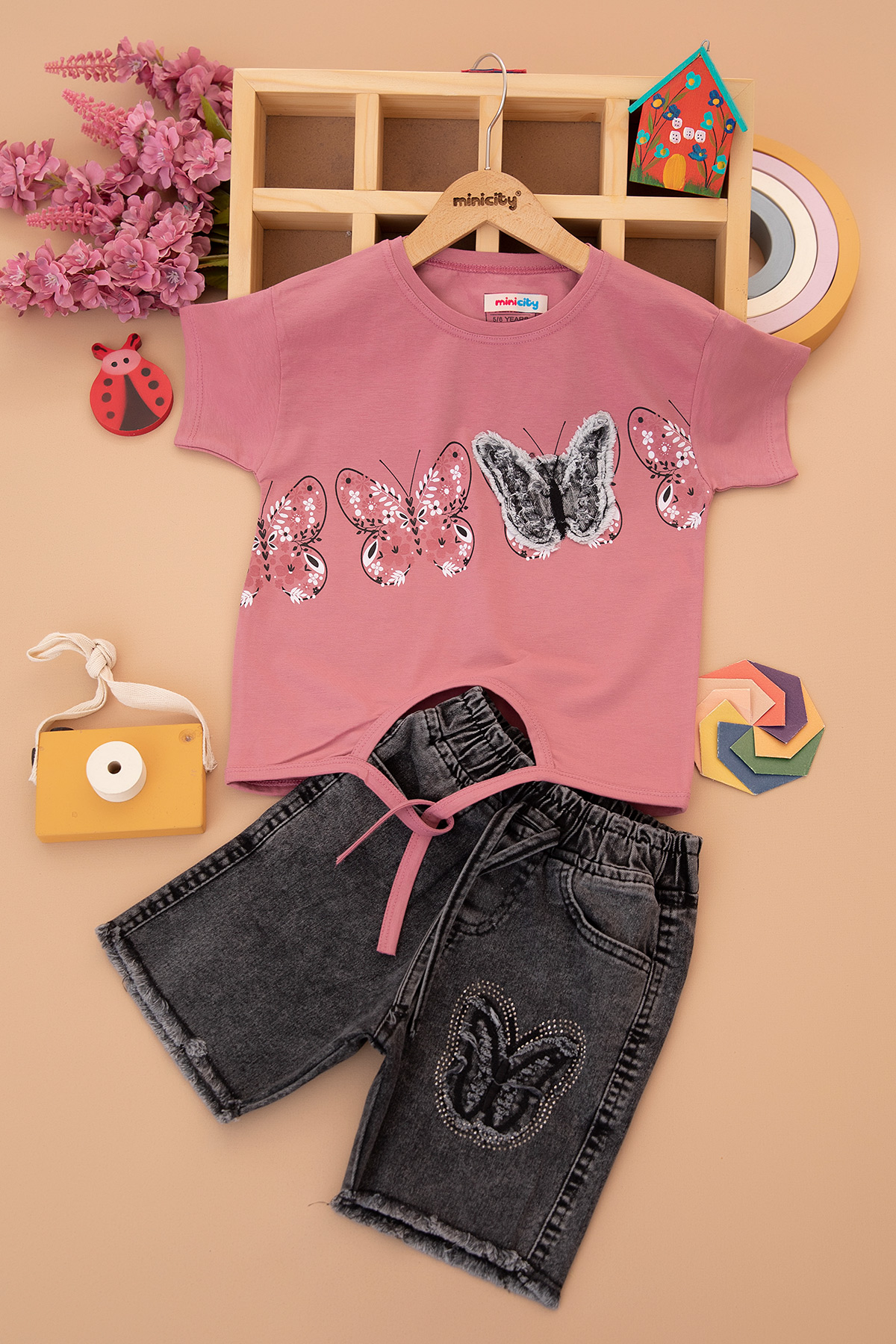 Kız Çocuk Kelebek Kot Şort Etek Takım - 30860 (5-12 Yaş)