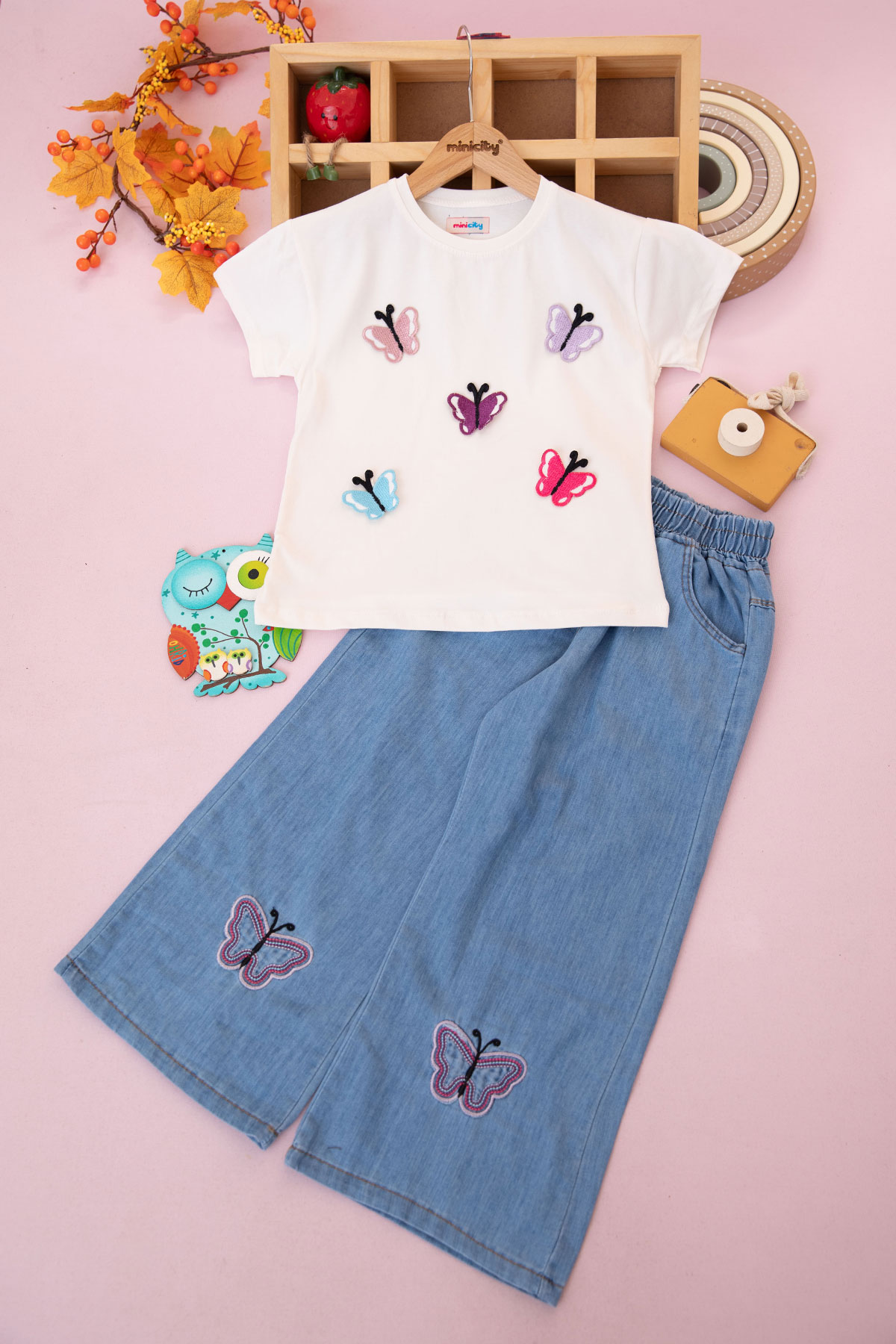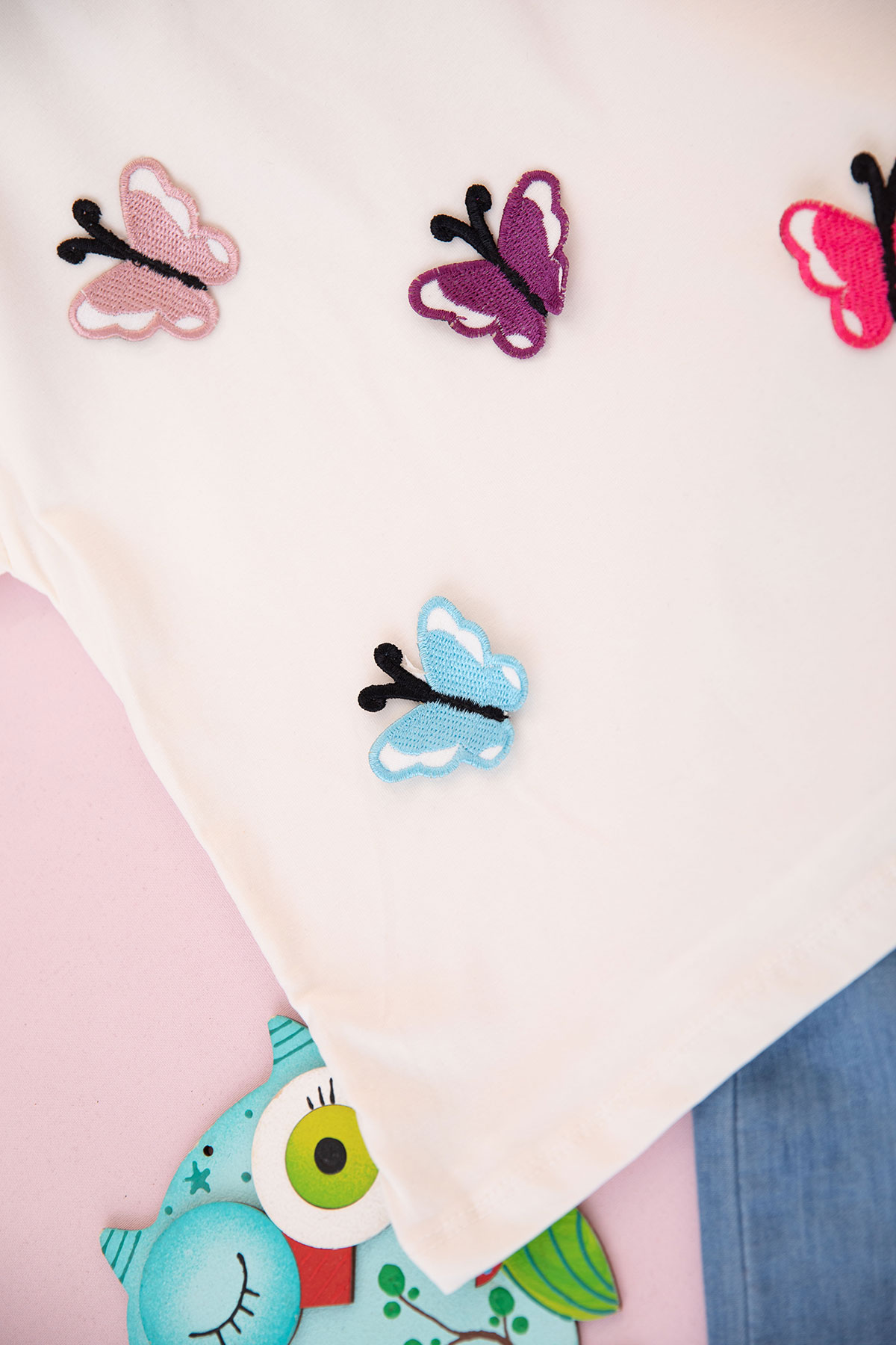 Kız Çocuk Kelebek Nakışıl Takım - 1707 (6-10 Yaş)