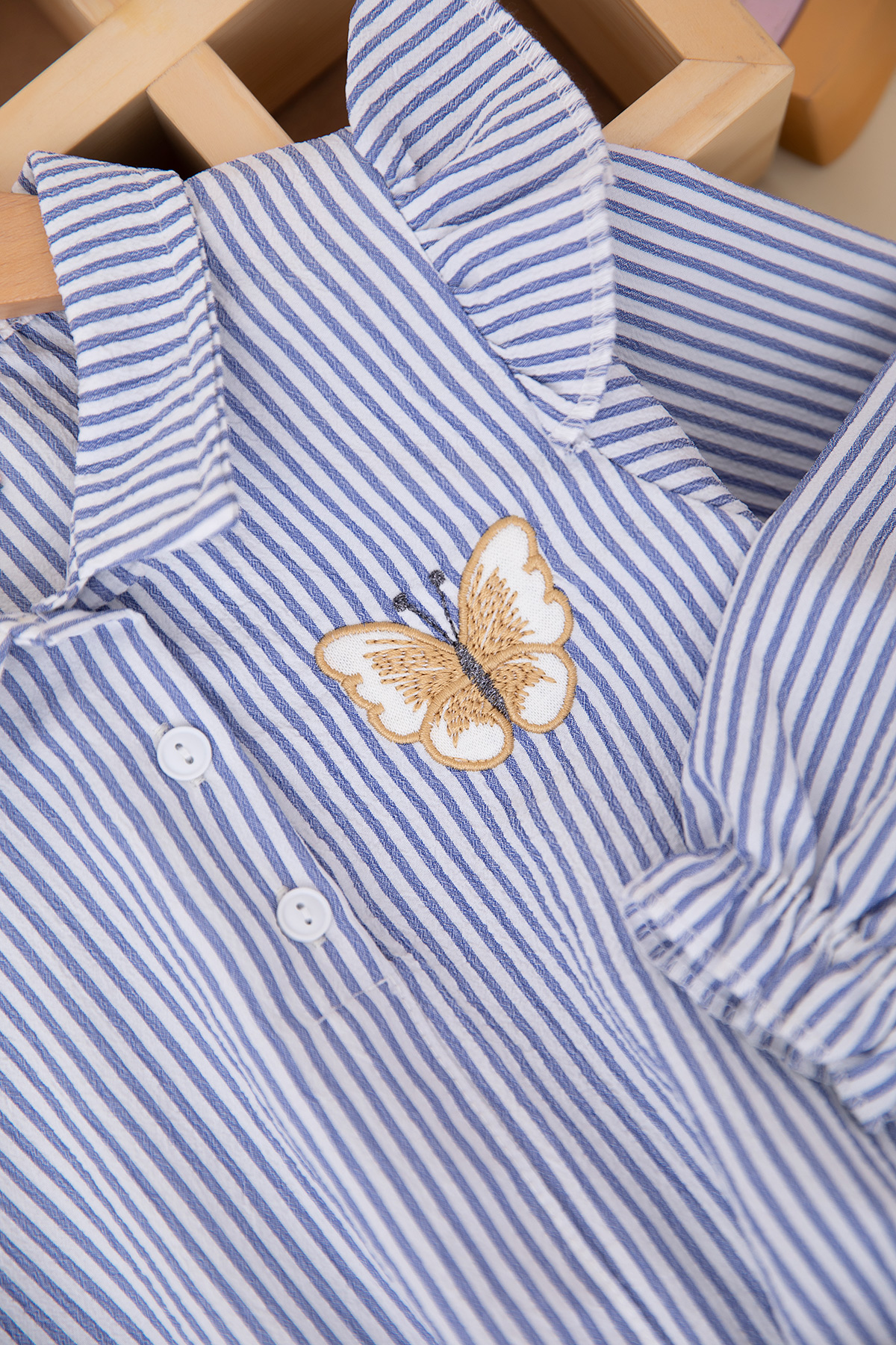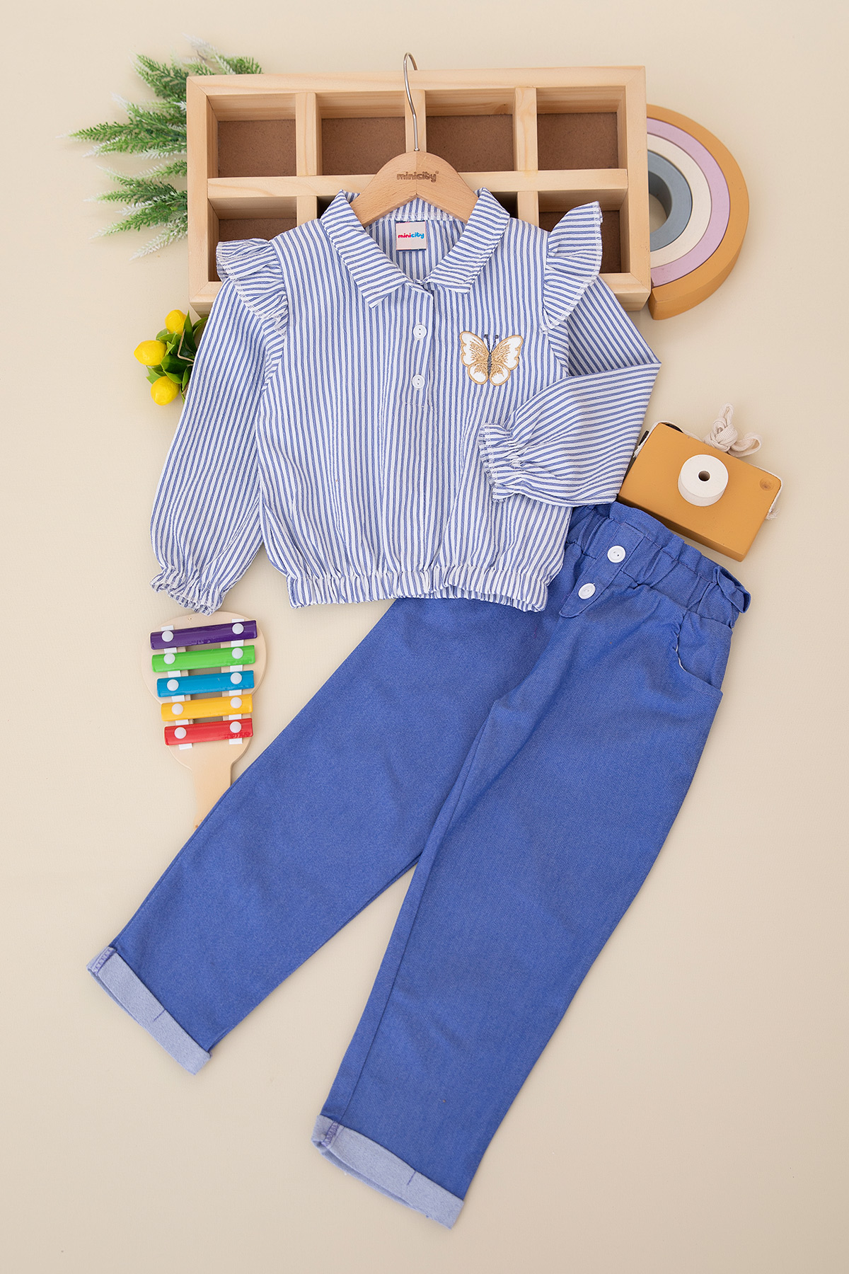 Kız Çocuk Kelebek Nakışlı Çizgili Dokuma Takım - 24029 (3-6 Yaş)