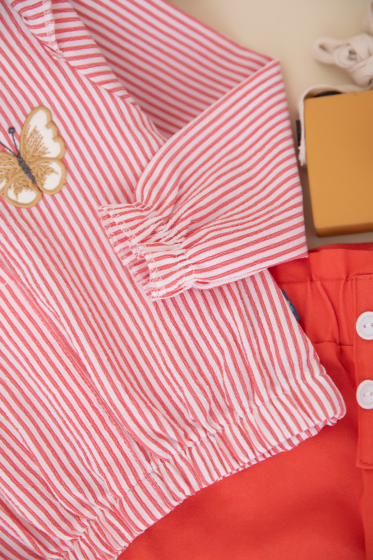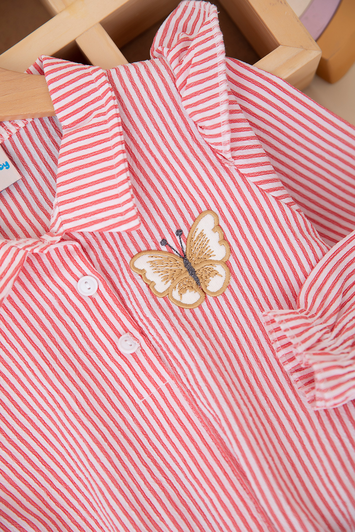 Kız Çocuk Kelebek Nakışlı Çizgili Dokuma Takım - 24029 (3-6 Yaş)
