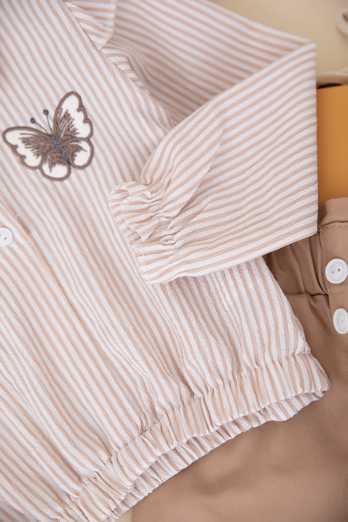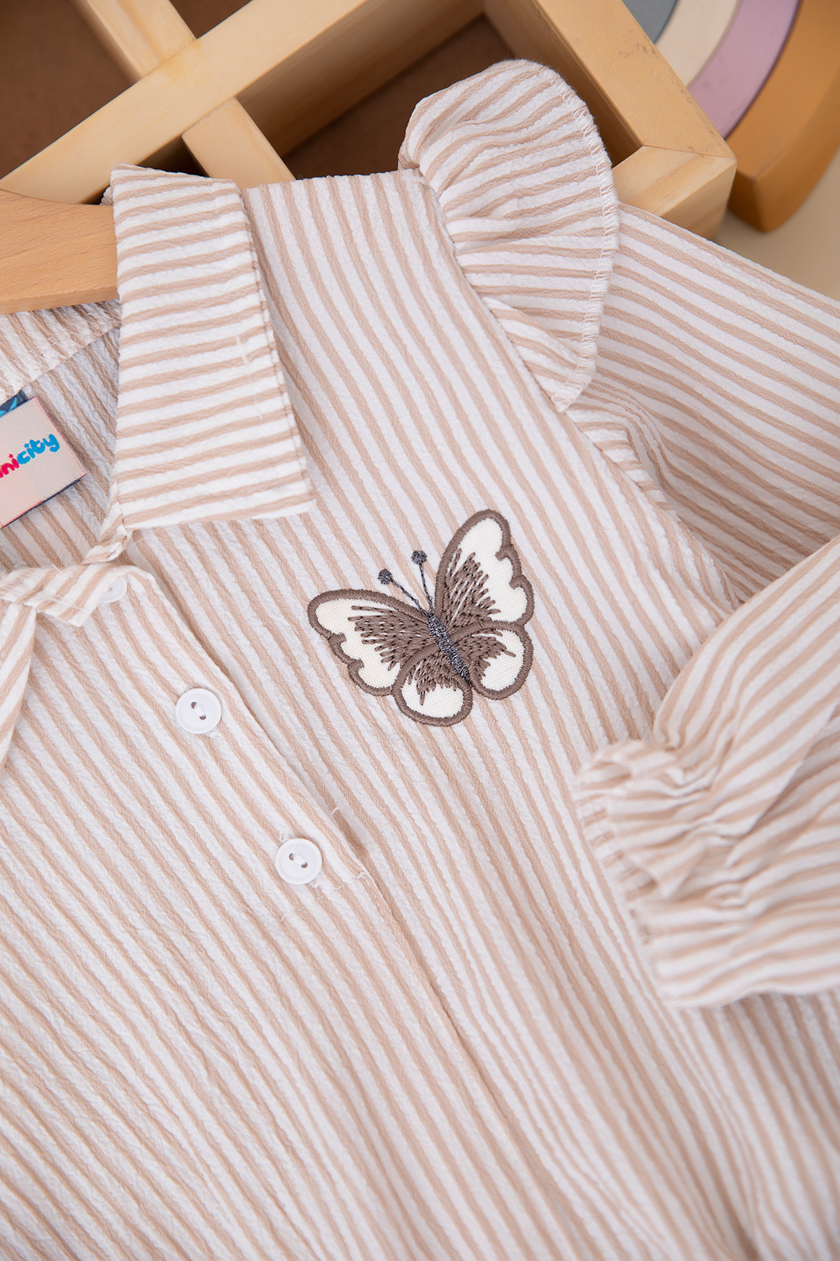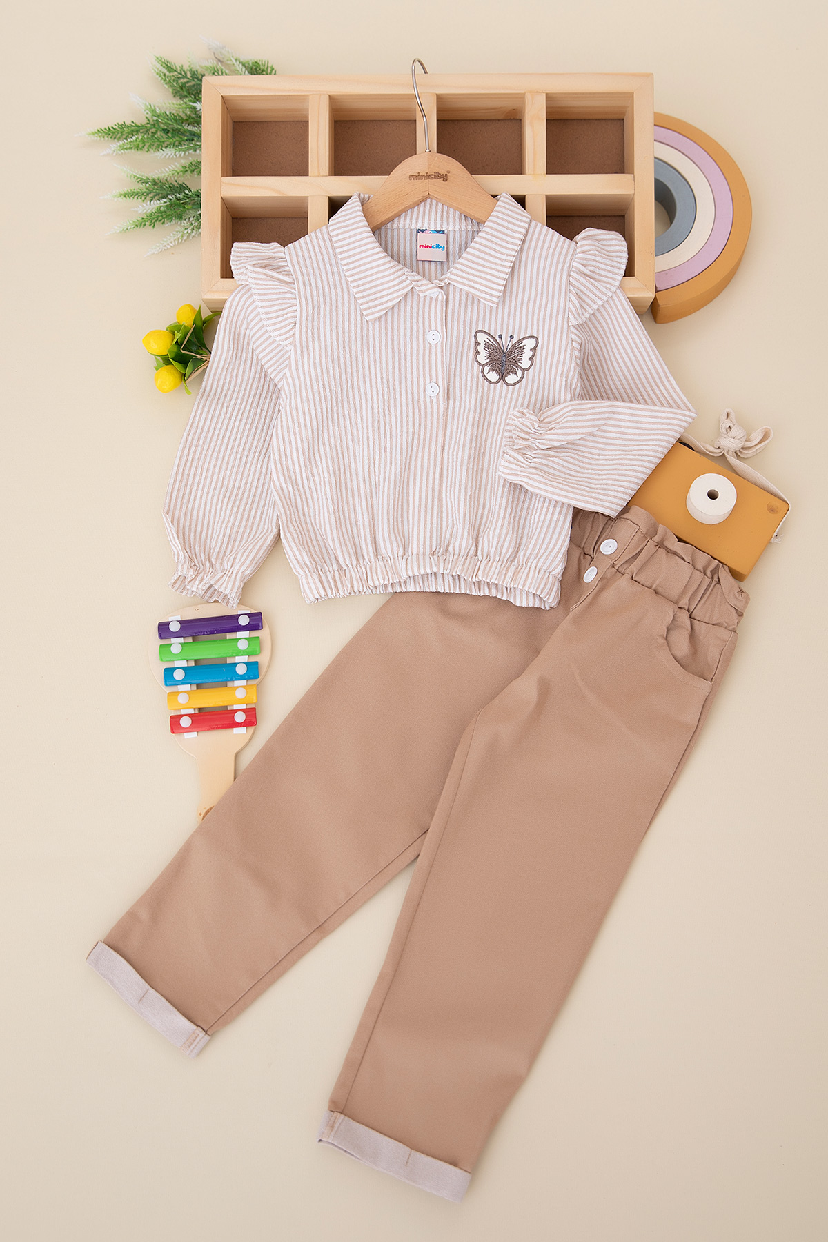 Kız Çocuk Kelebek Nakışlı Çizgili Dokuma Takım - 24029 (3-6 Yaş)
