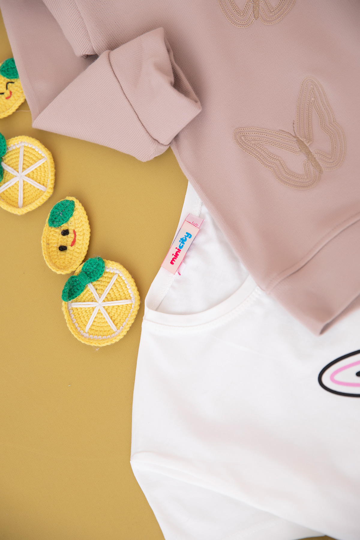 Kız Çocuk Kelebek Nakışlı Hırkalı Takım - 70610 (5-12 Yaş)