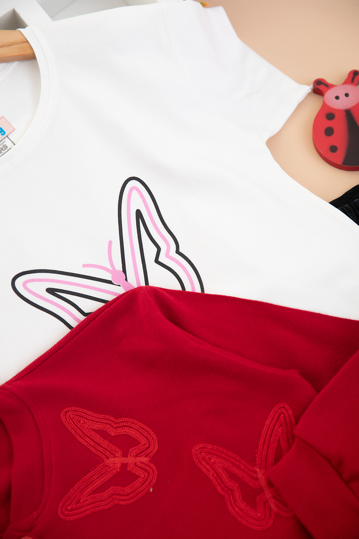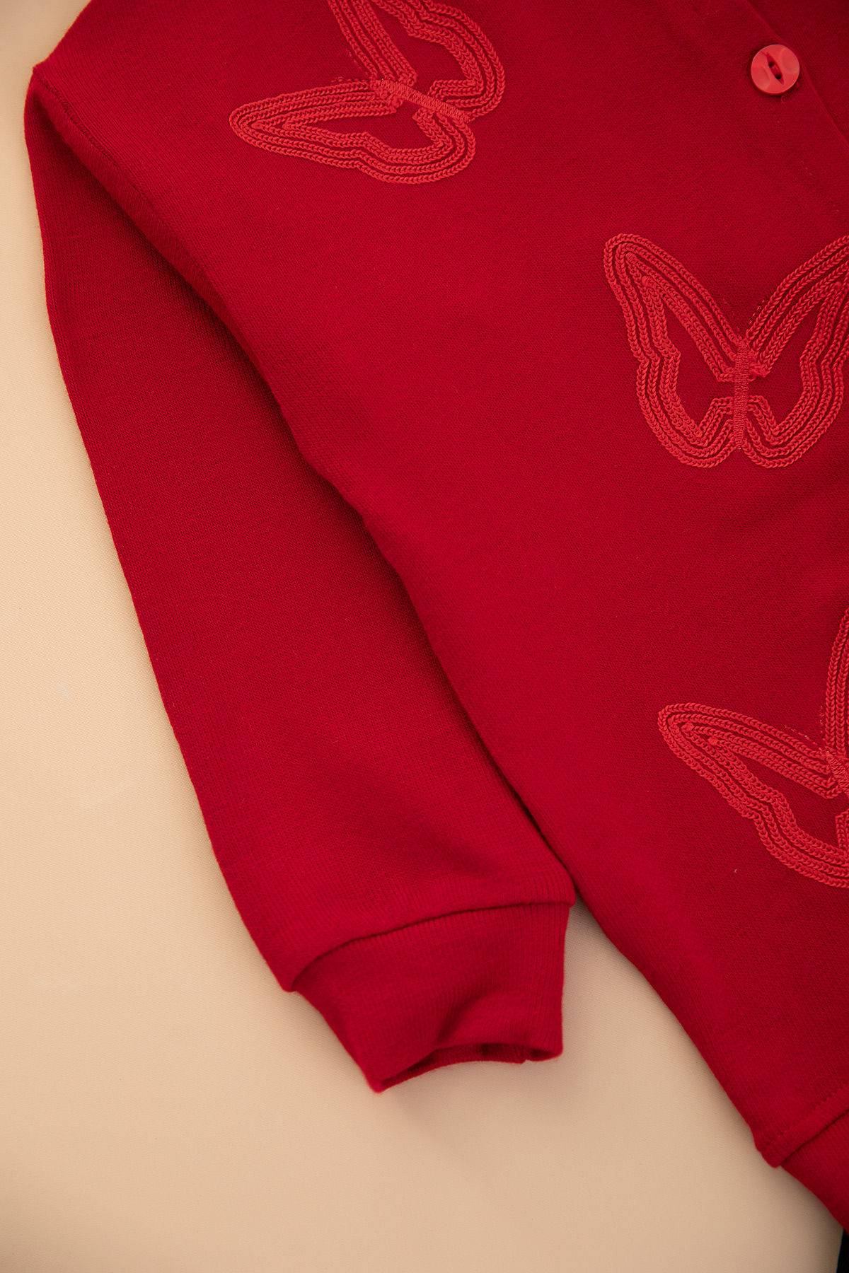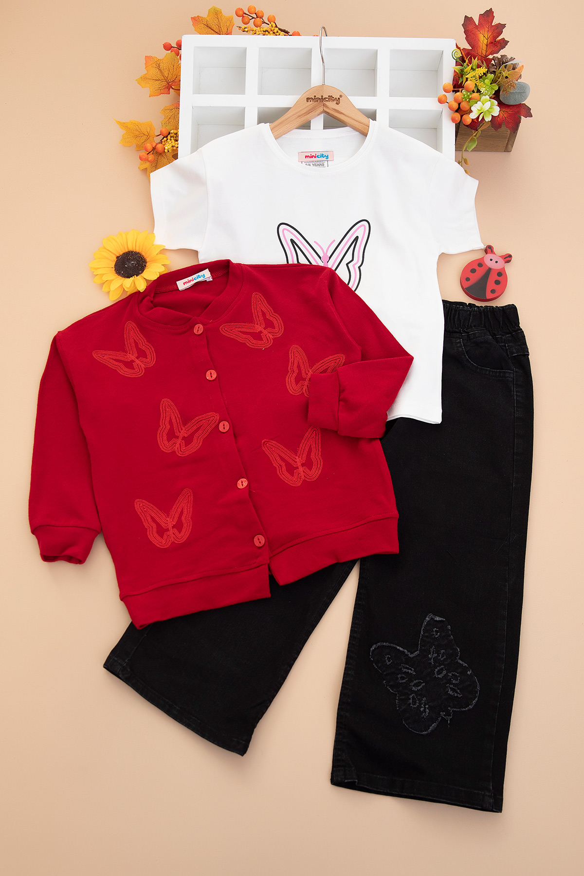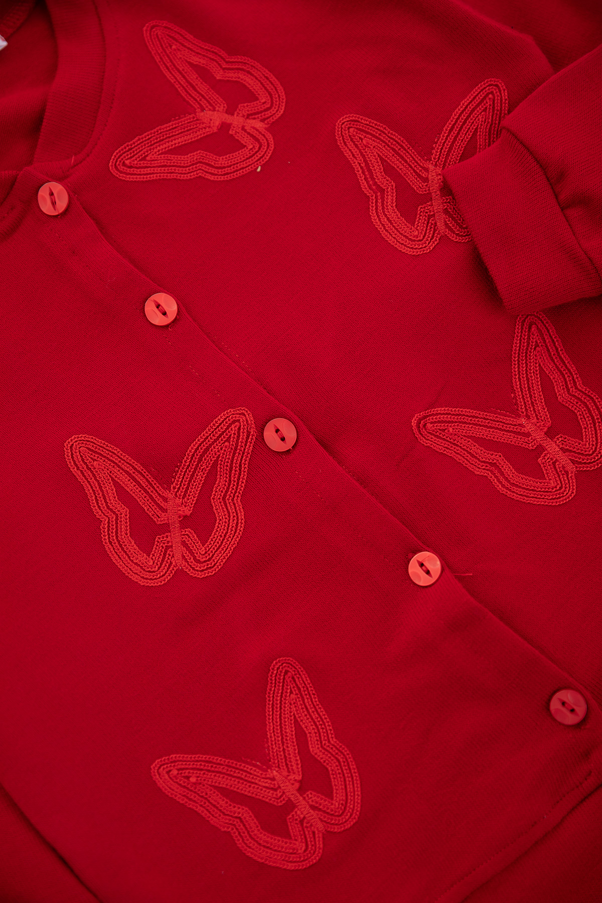 Kız Çocuk Kelebek Nakışlı Hırkalı Takım - 70610 (5-12 Yaş)