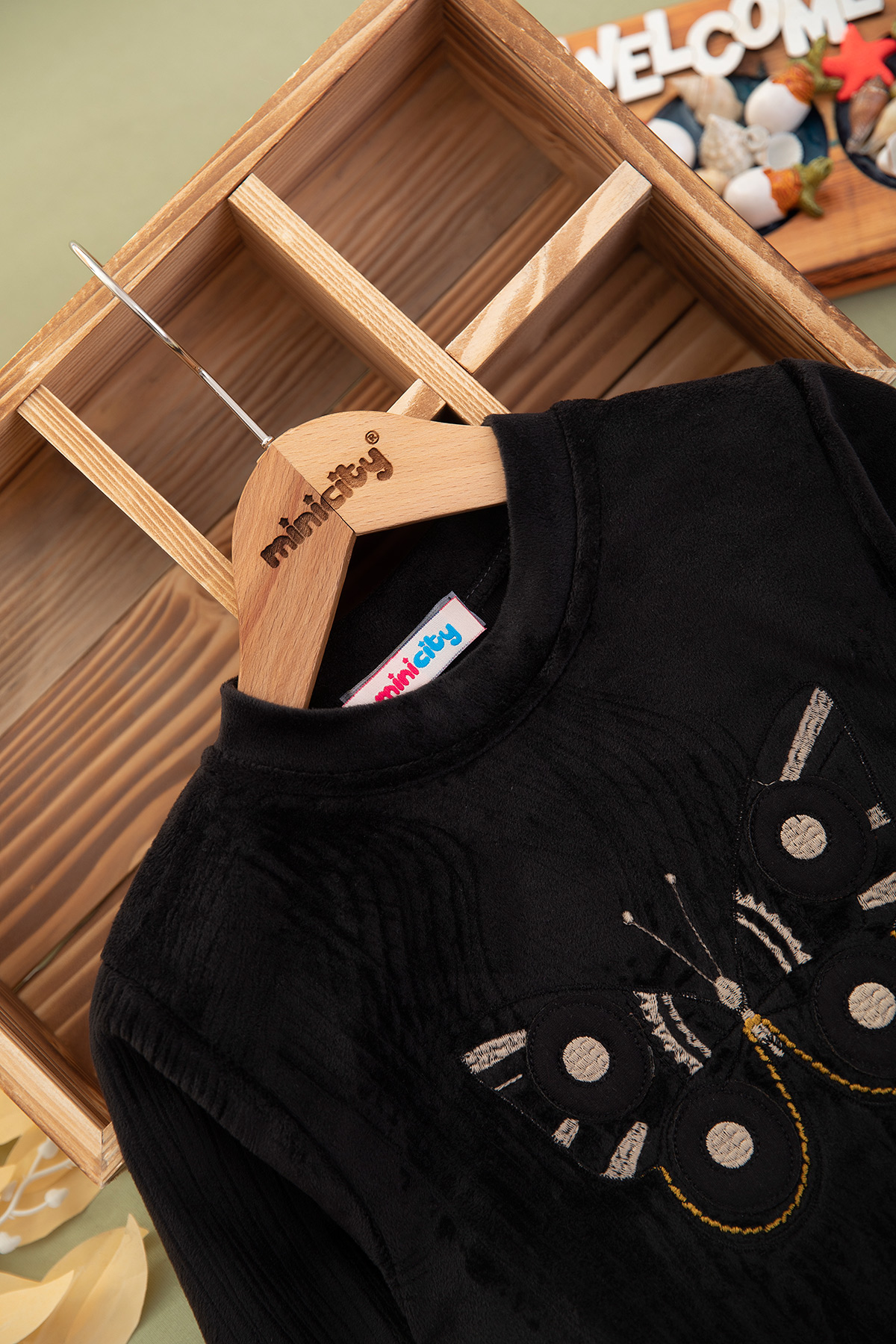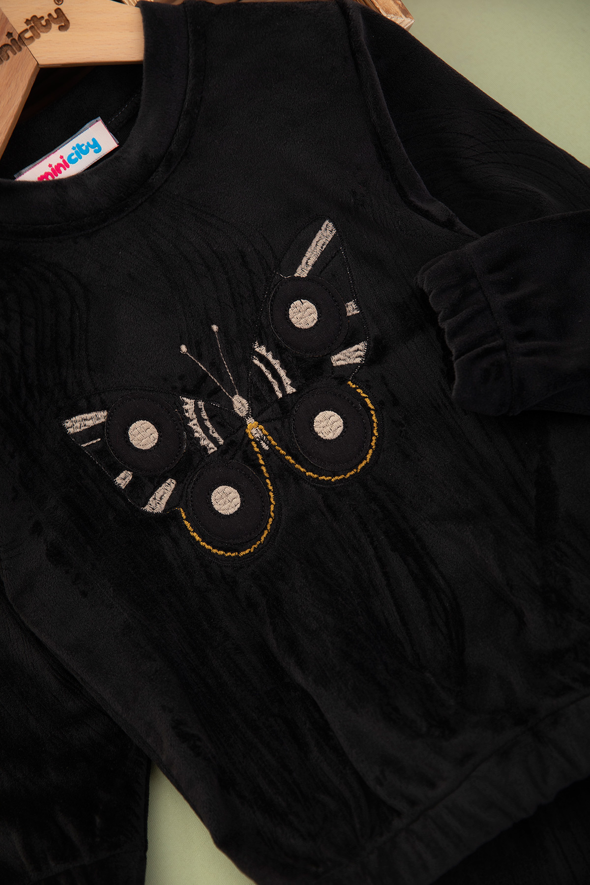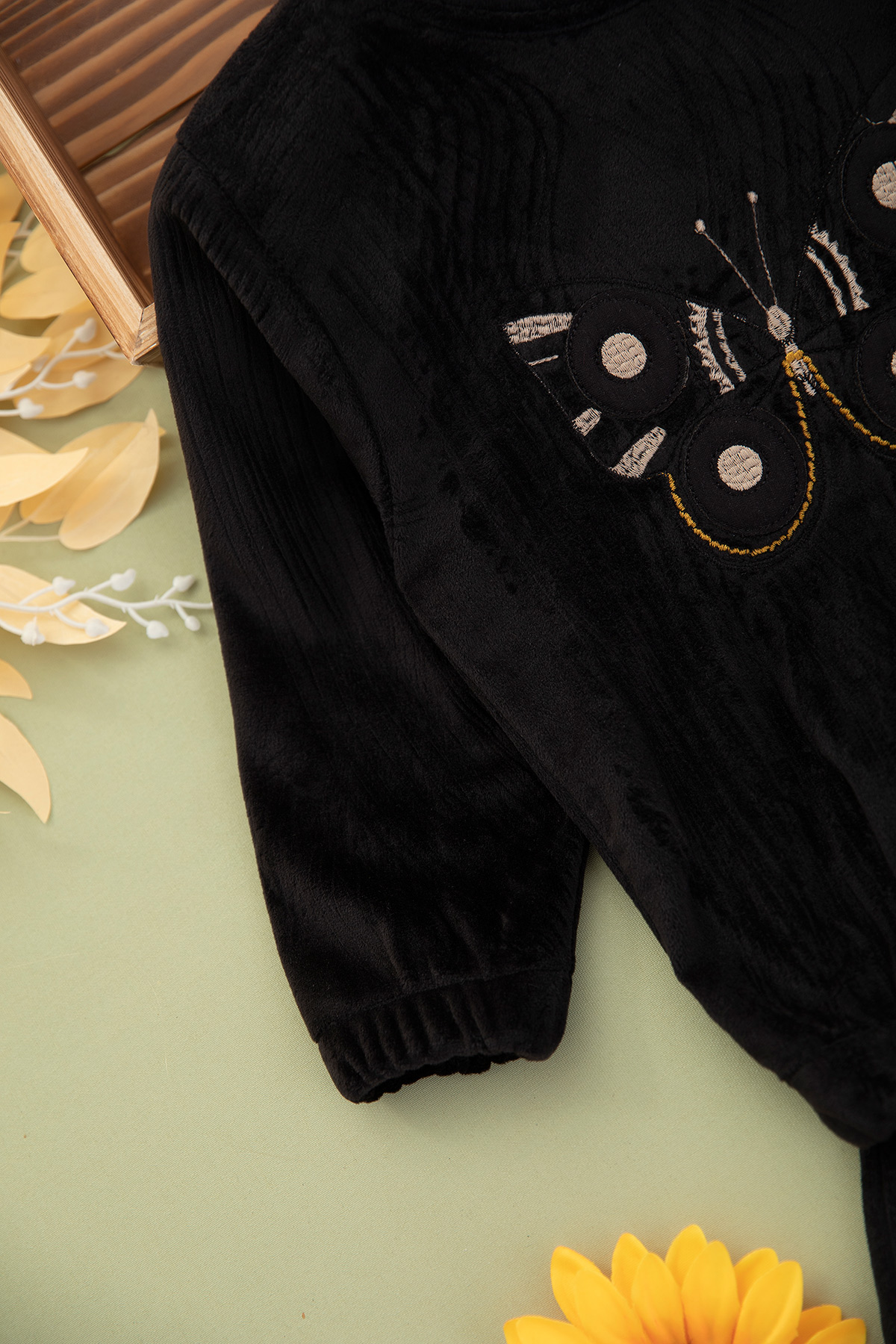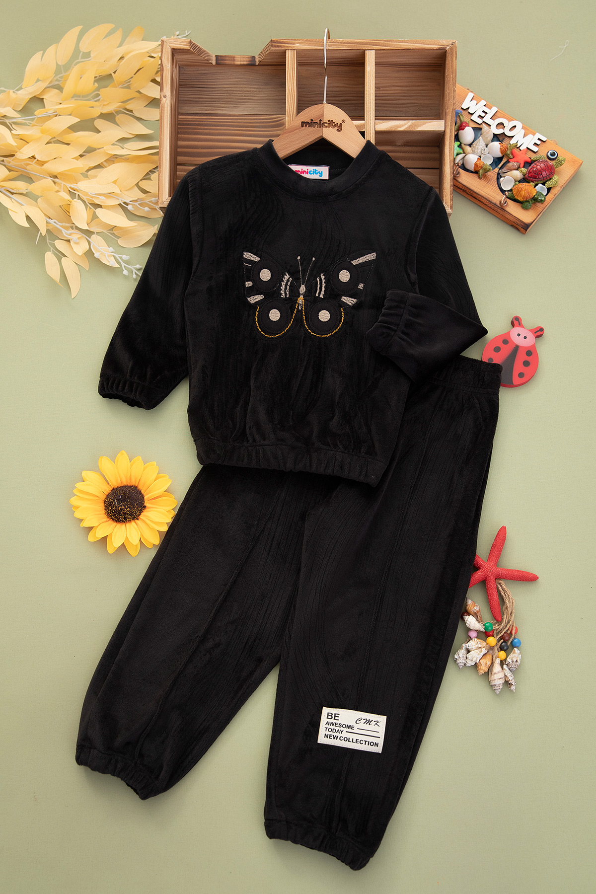 Kız Çocuk Kelebek Nakışlı Kadife Takım - 190525 (4-11 Yaş)