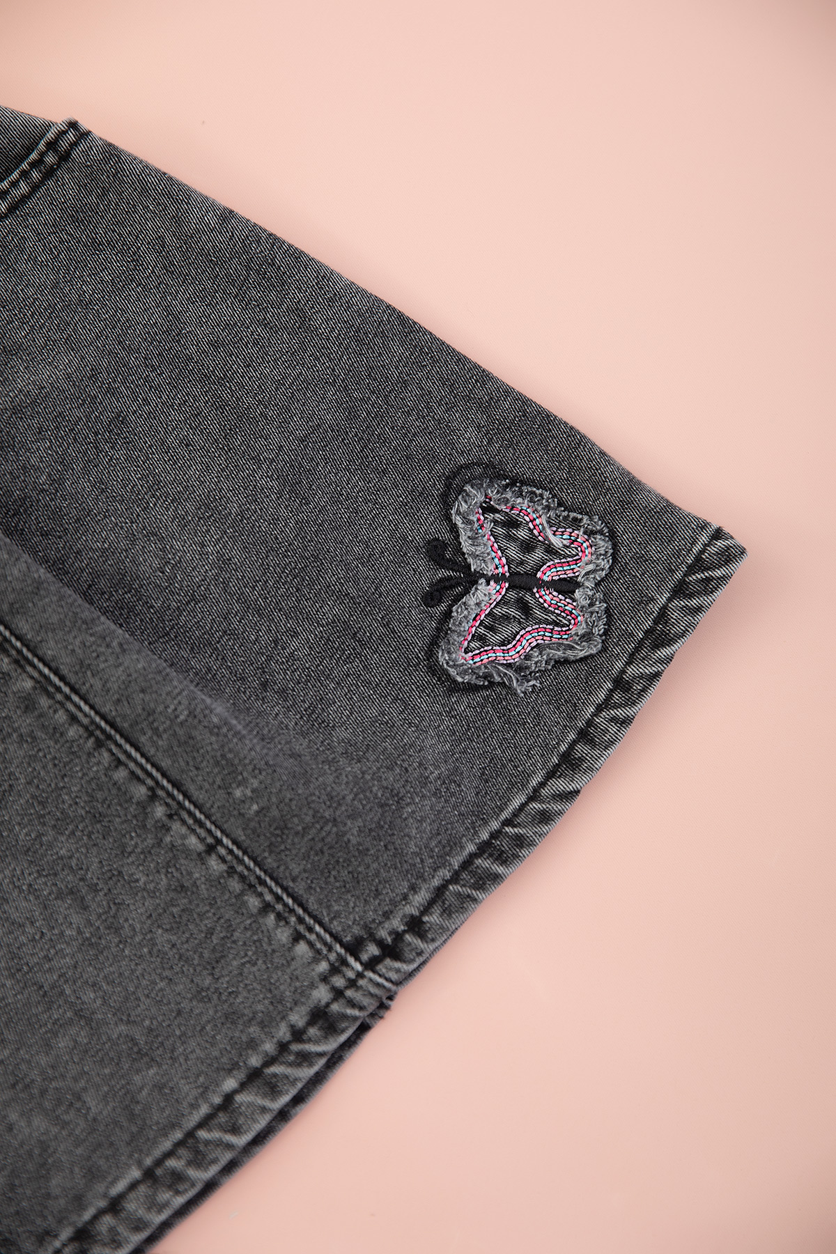 Kız Çocuk Kelebek Nakışlı Kot Etekli Takım - 2687 (3-7 Yaş)