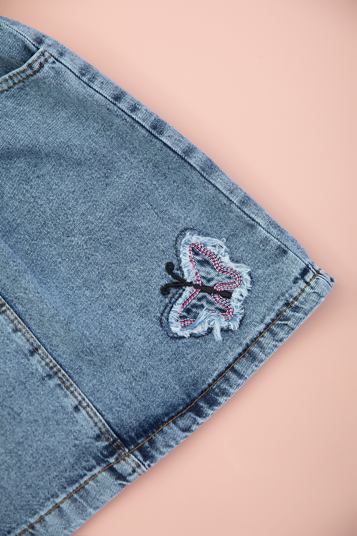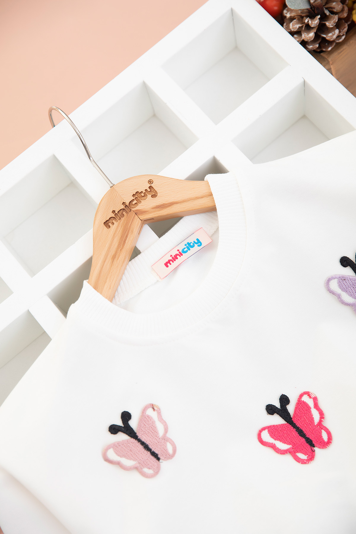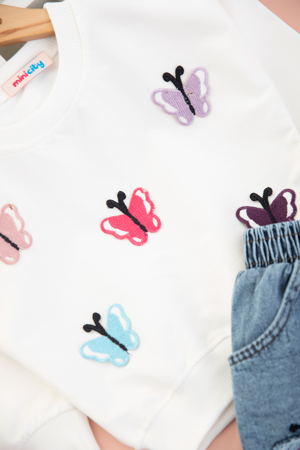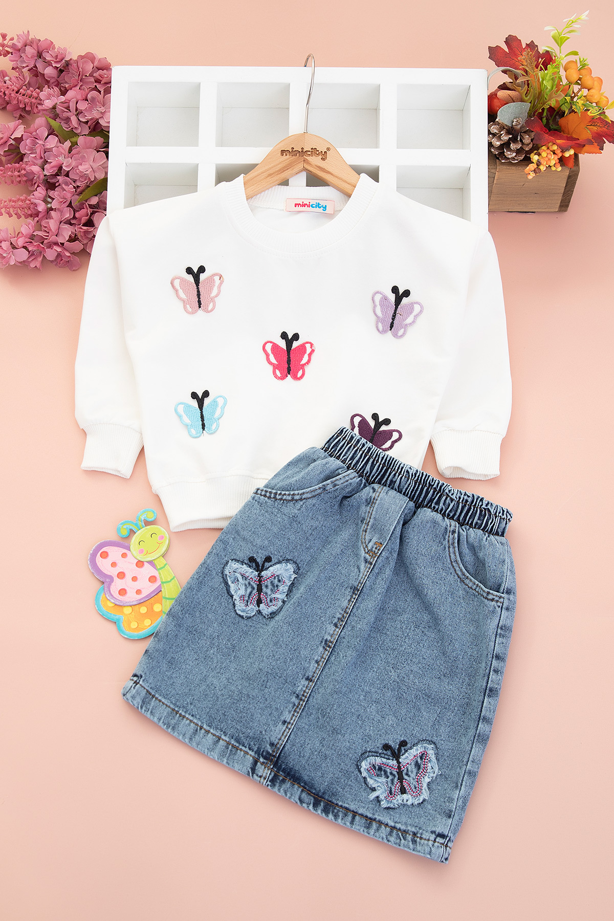 Kız Çocuk Kelebek Nakışlı Kot Etekli Takım - 2687 (3-7 Yaş)