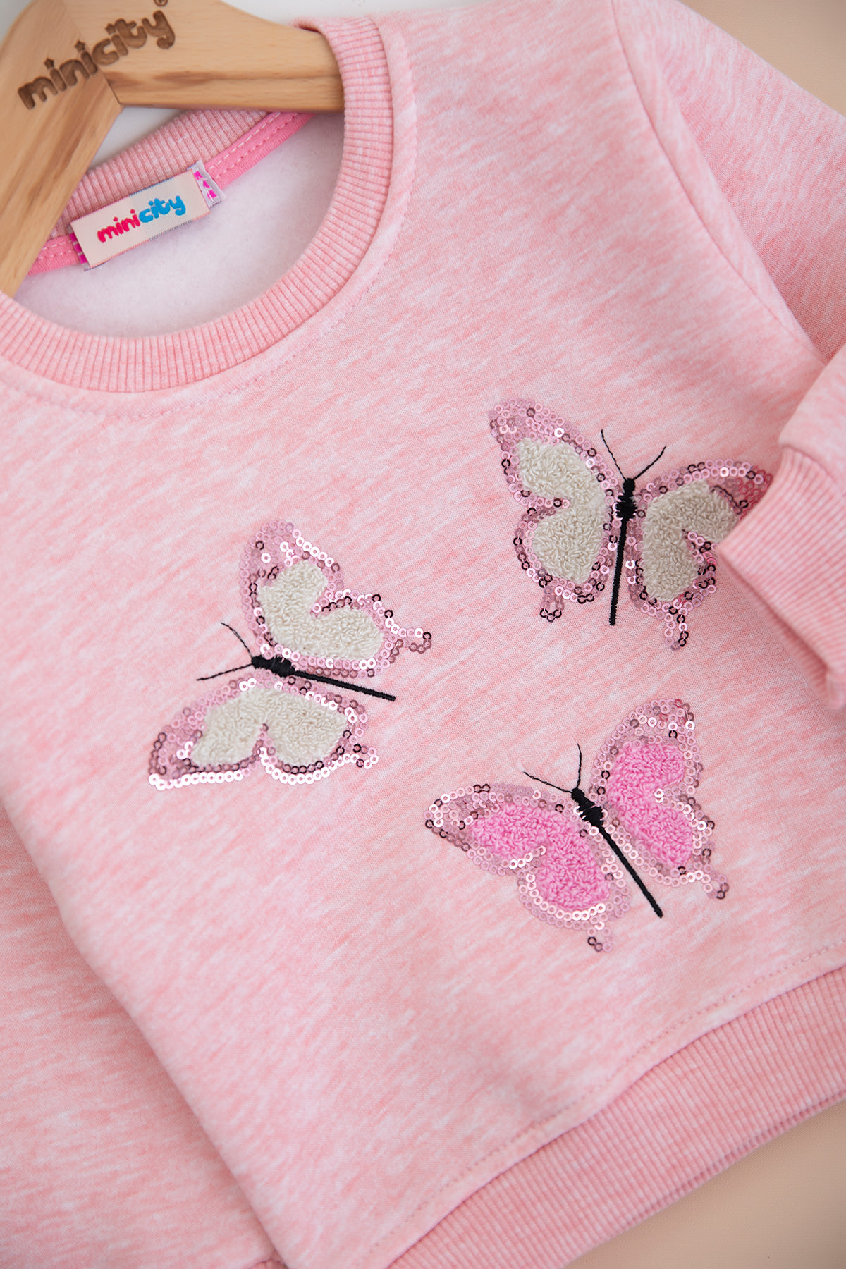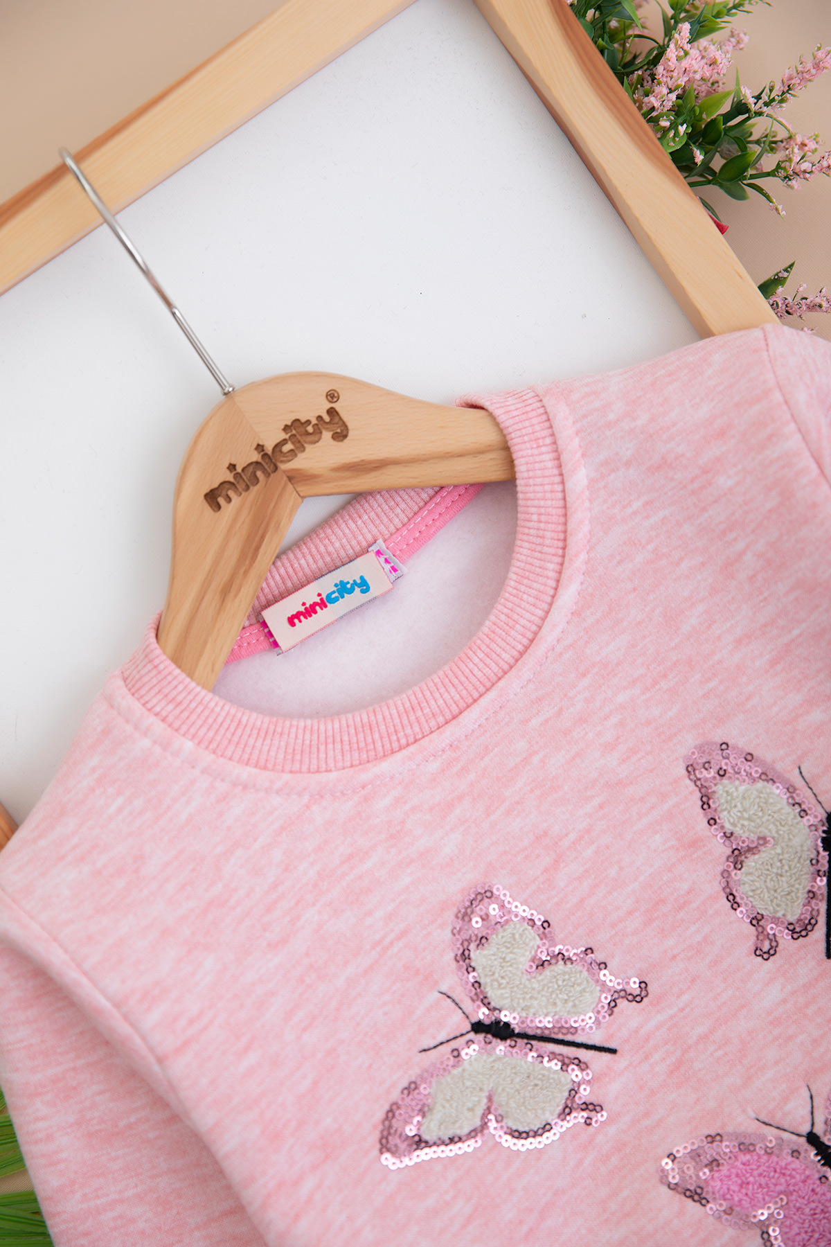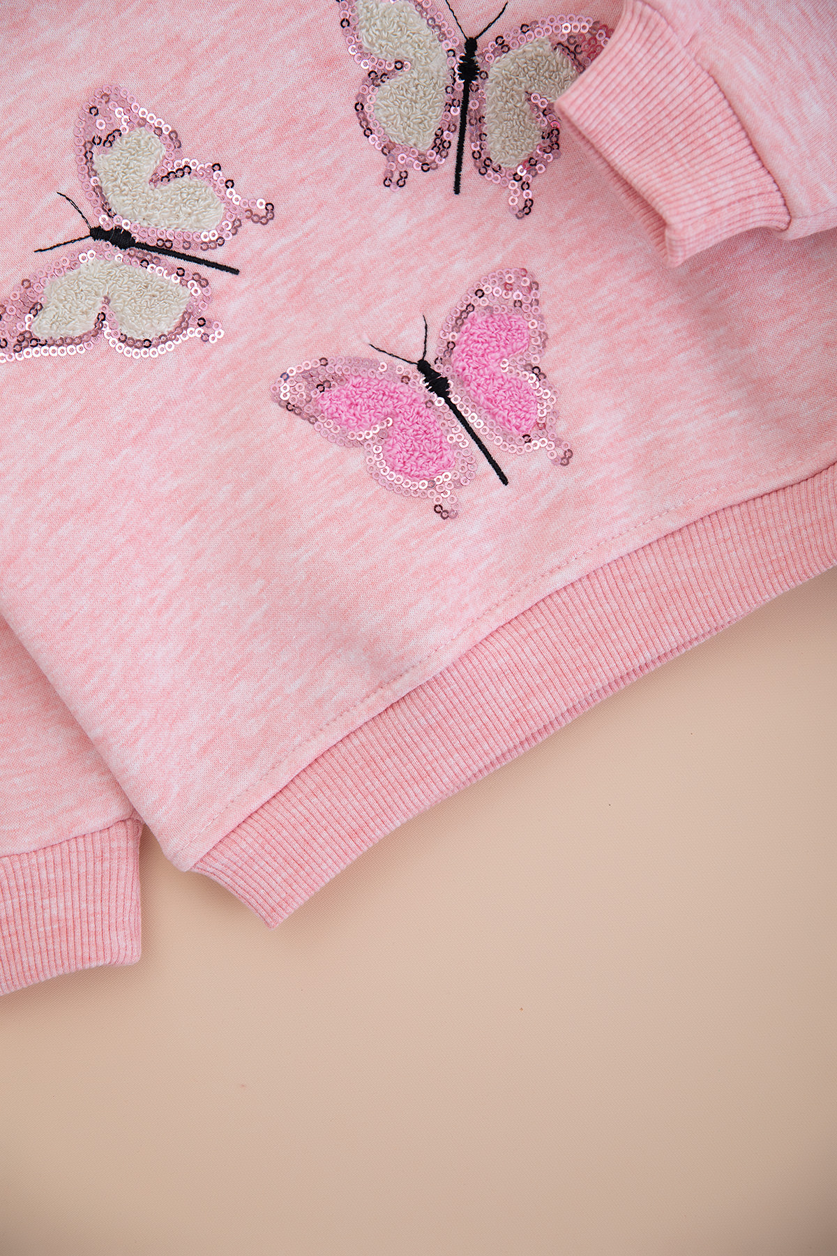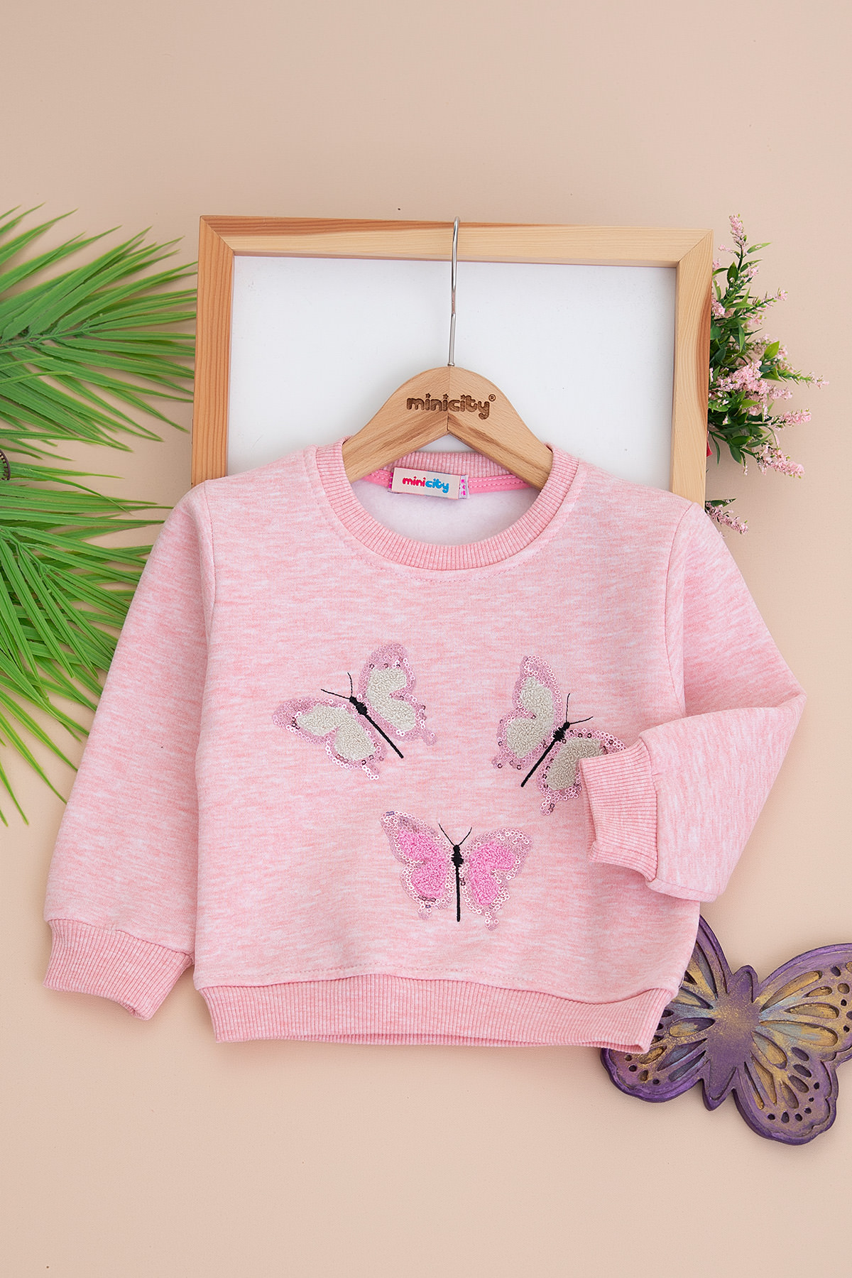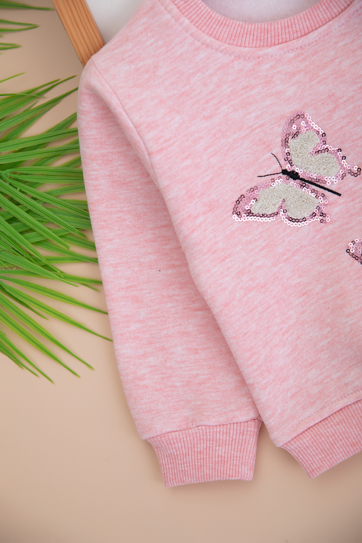 Kız Çocuk Kelebek Nakışlı Şardonlu Sweat (8-12 Yaş)