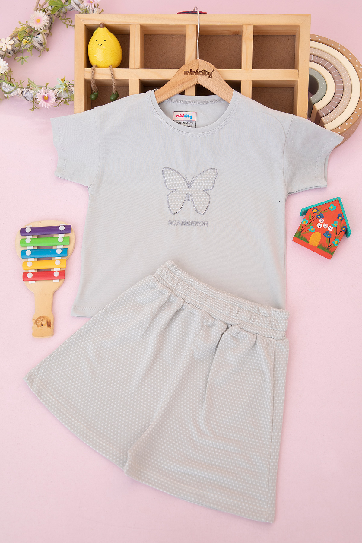 Kız Çocuk Kelebek Nakışlı Şortlu Takım - 30765 (5-12 Yaş)