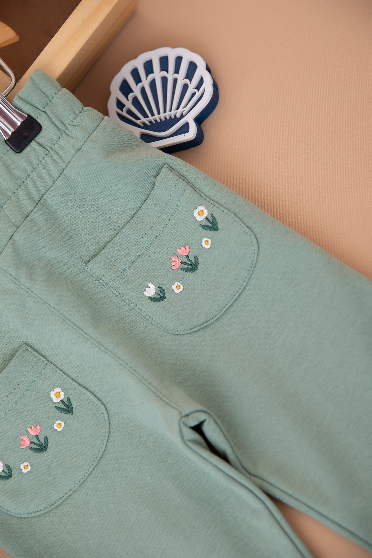 Kız Çocuk Kemer Ortası Nakışlı Tek Alt - 7529 (1-4 Yaş)