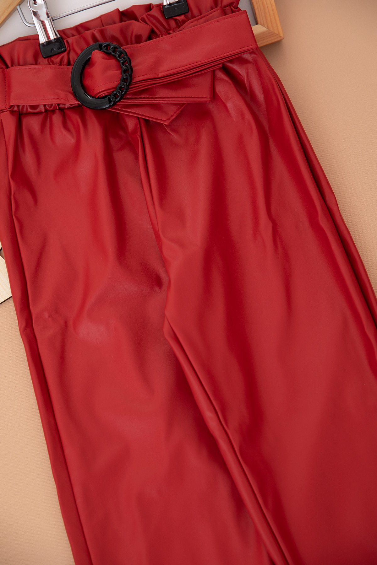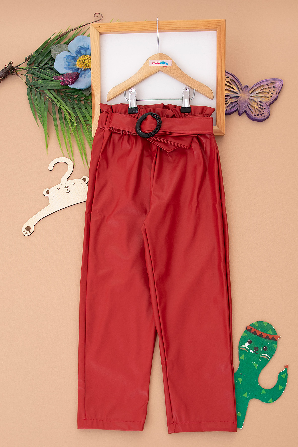 Kız Çocuk Kemerli Deri Pantolon (6-12 Yaş)