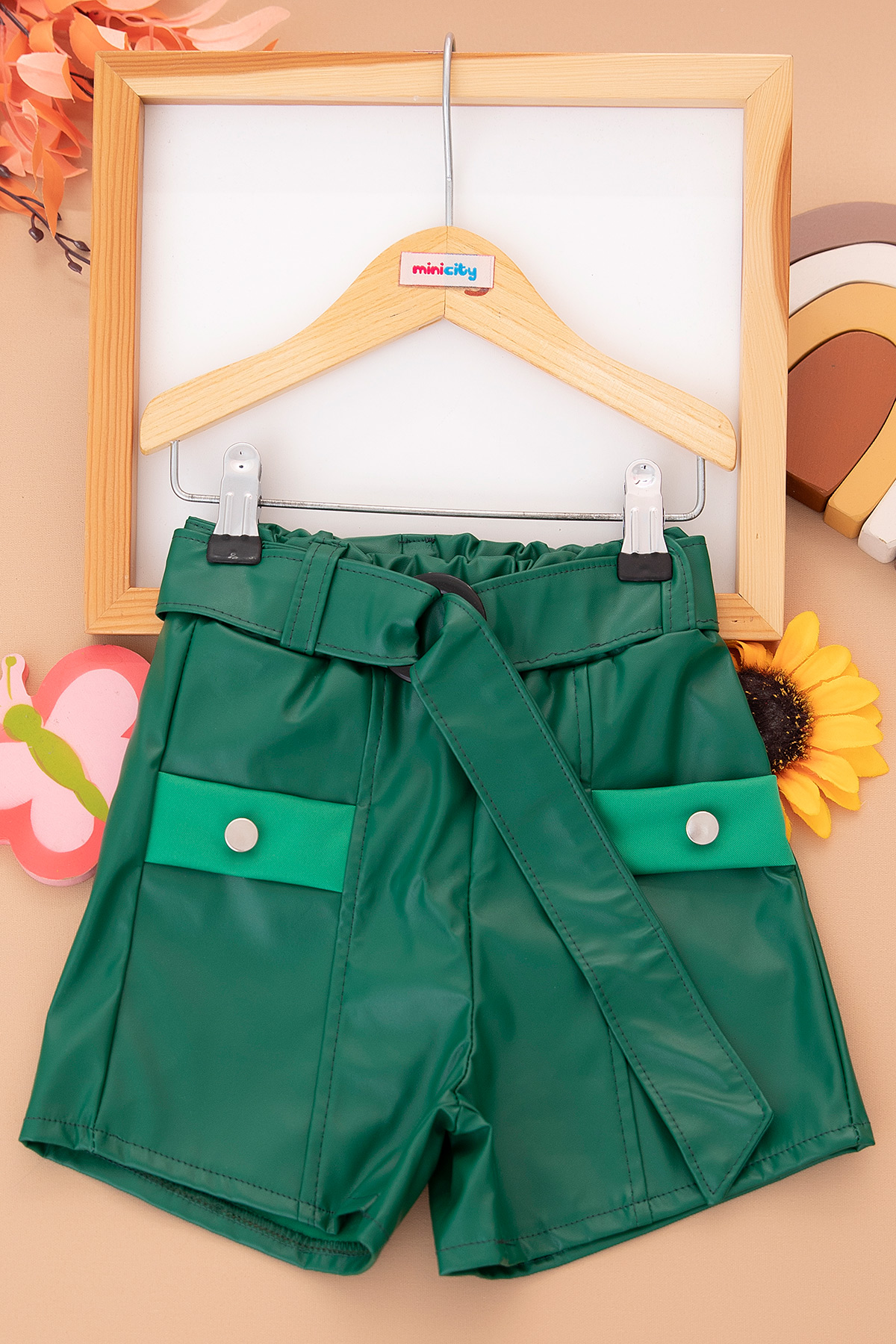 Kız Çocuk Kemerli Deri Şort (3-8 Yaş)