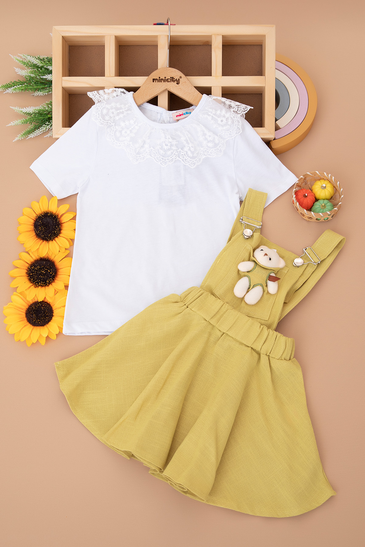 Kız Çocuk Keten Ayıcıklı Tişörtlü Takım - 10360 (3-7 Yaş)