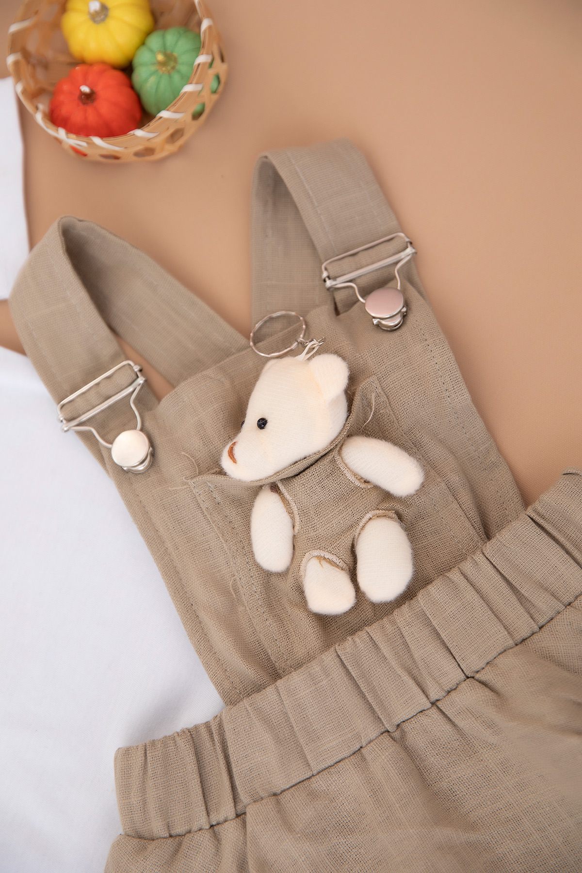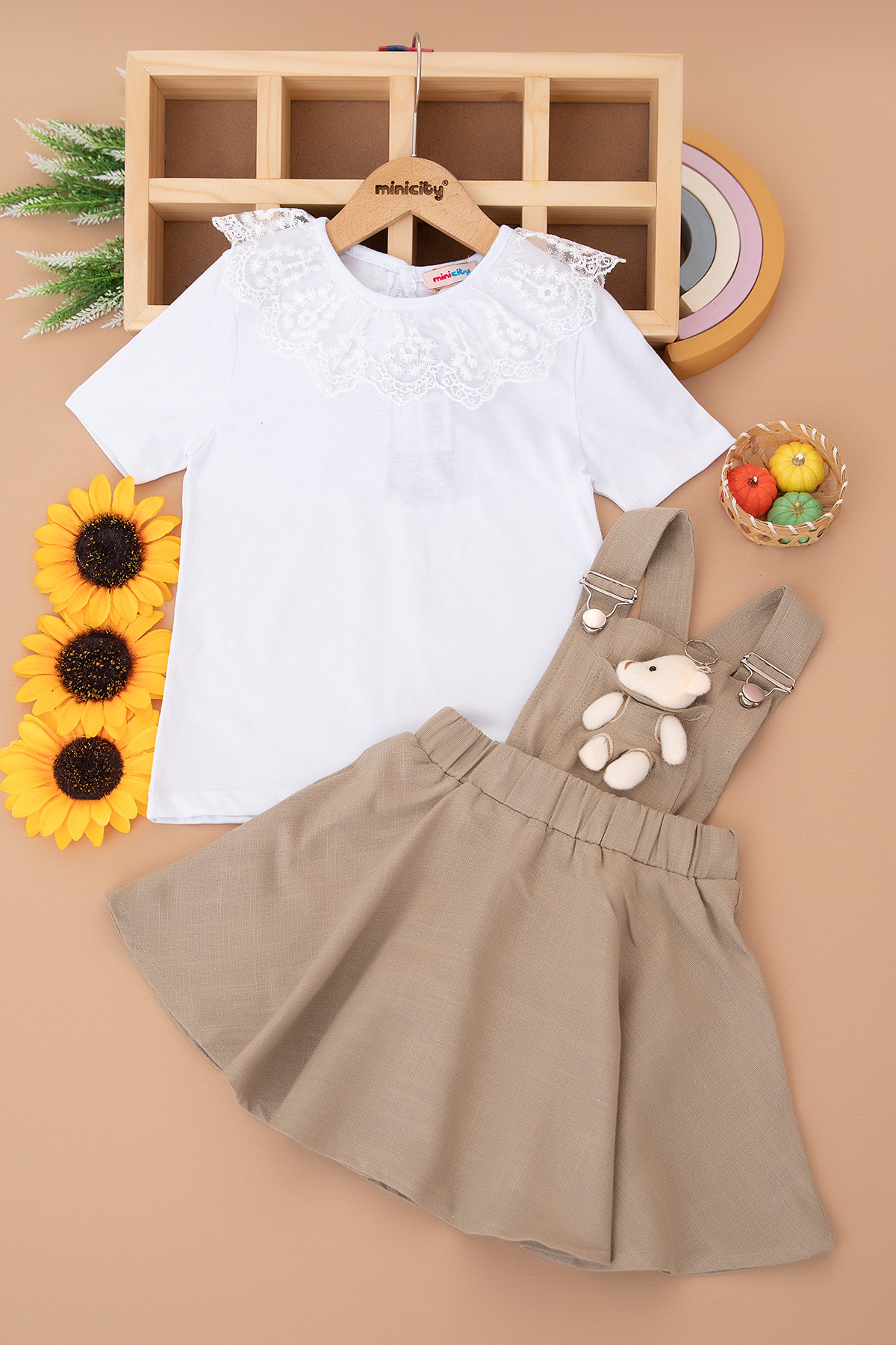 Kız Çocuk Keten Ayıcıklı Tişörtlü Takım - 10360 (3-7 Yaş)