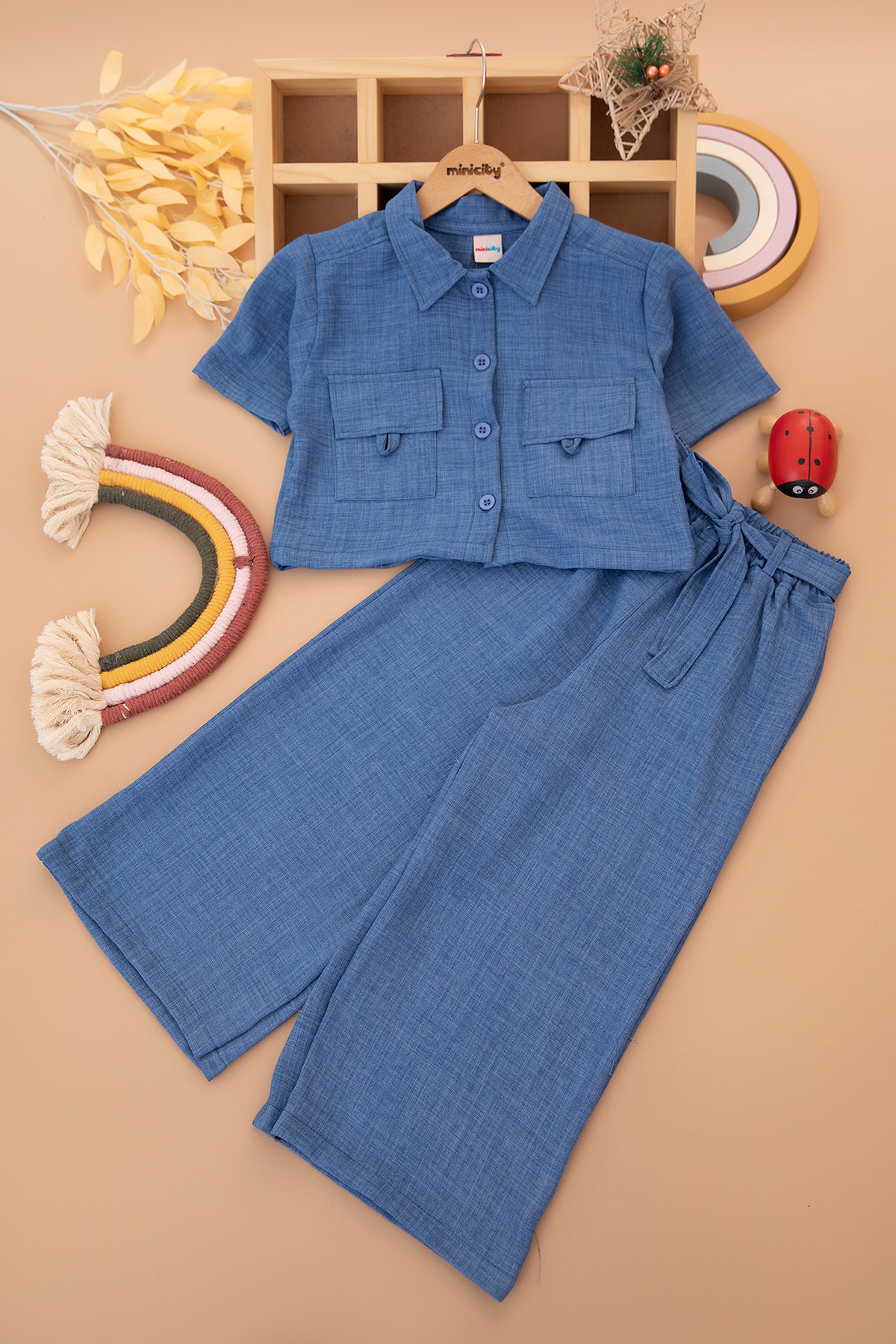 Kız Çocuk Keten Crop Takım - 10104 (8-12 Yaş)