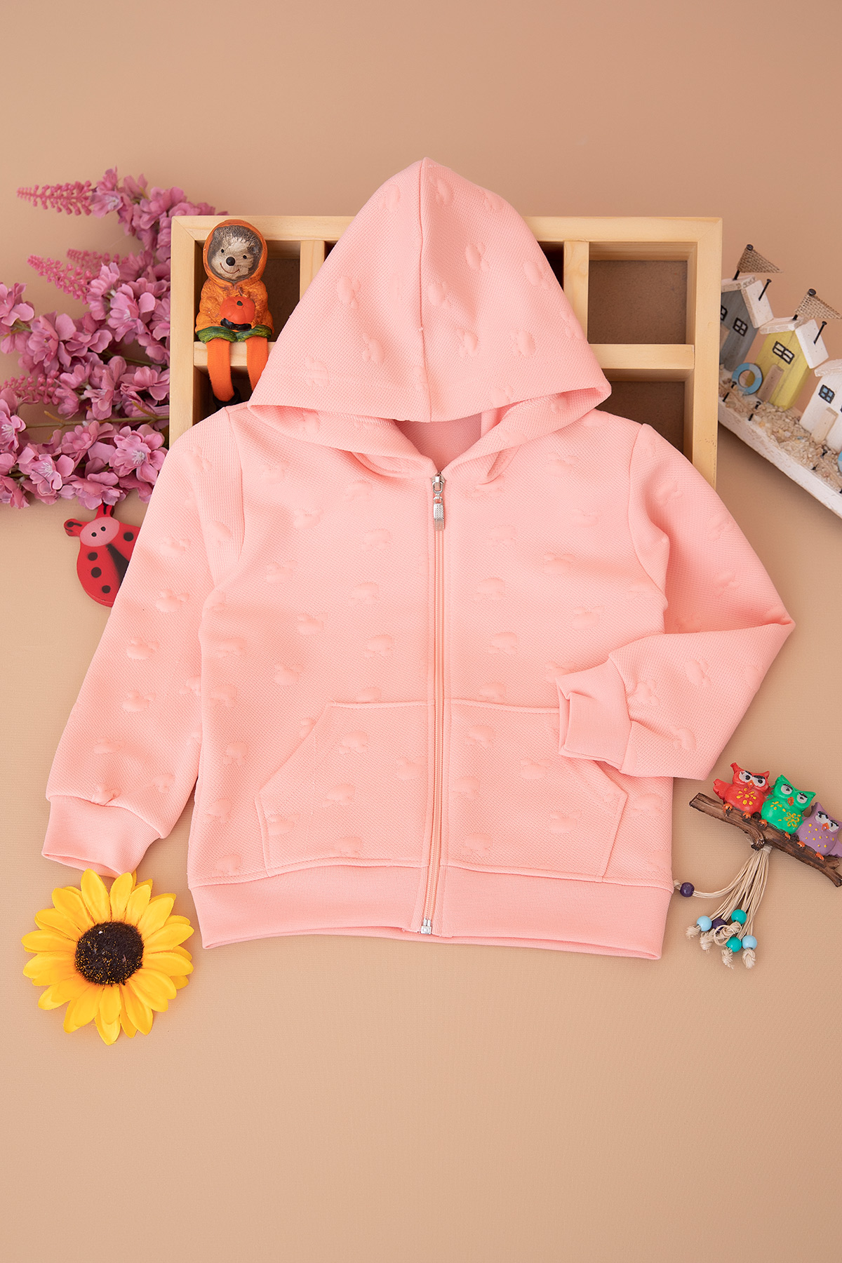 Kız Çocuk Kiraz Kabartmalı Hırka - 60025 (3-12 Yaş)
