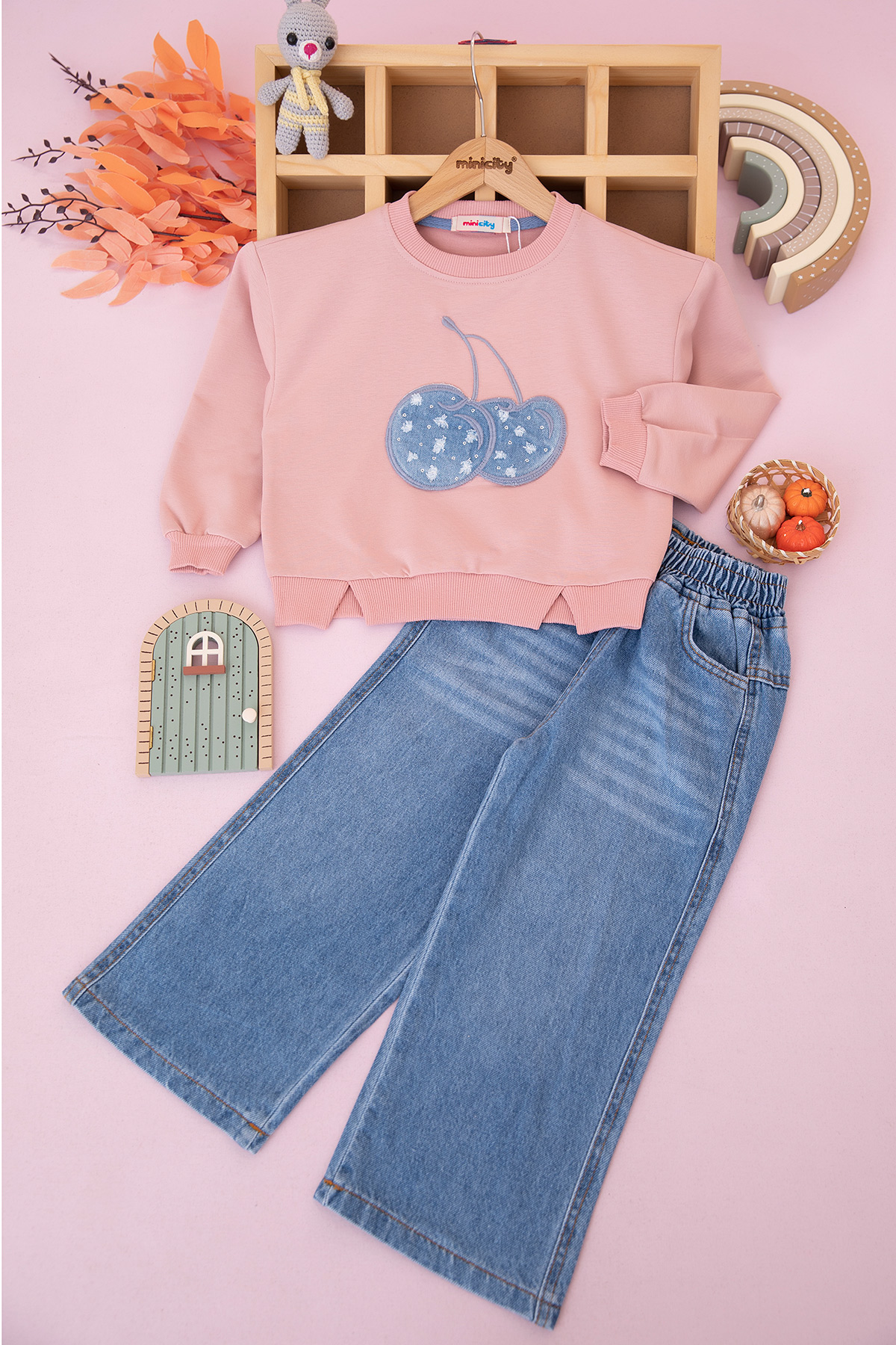 Kız Çocuk Kiraz Nakış Sweat Takım - 1770 (5-8 Yaş)